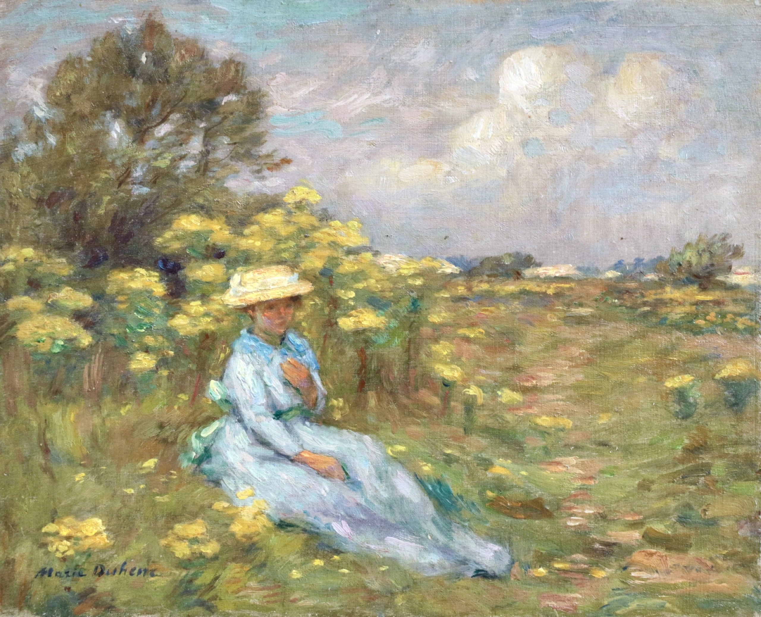 Marie Duhem's parents ran a lace factory. From her childhood, she became familiar with the work of model designers. She becomes the student of the painter Adrien Demont, husband of the painter Virginie Demont-Breton. It was in their Wissant workshop that she met, in 1889, Henri Duhem. Eleven years older than her a passionate advocate of painting. They were married in 1890 and, the following year, she gave birth to a boy, Rémy (1891-1915). It was at this time they formed the group of Wissant (still called School of Wissant) centering around the Demont-Breton, each summer for several years, the Duhems, installed in their country house in Camiers worked with a whole group of friends in the countryside of Boulogne and the coastline of the Opal Coast. Among the most assiduous are Georges Maroniez, Francis Tattegrain, Fernand Stievenart or Felix Planquette.