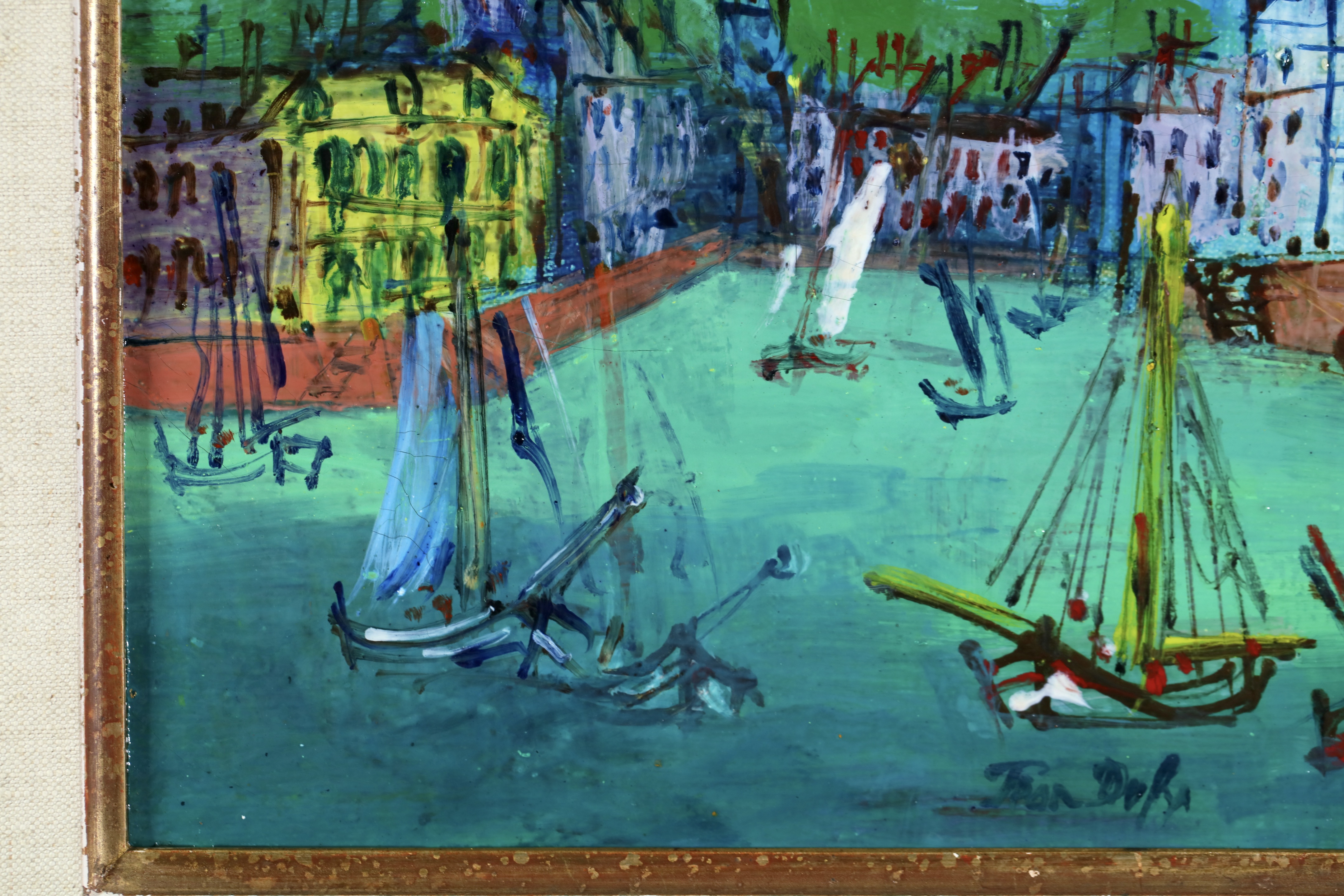 Jean Dufy came from a family of nine children brought up in an artistic and, especially, musical environment. By the age of 14, Dufy was painting stage sets for family plays; his talents were recognised and nurtured by his older brother Raoul and the latter's friend Othon Friesz. He enrolled at the college of fine arts in Le Havre, where Raoul, Friesz and Georges Braque had also studied, but he abandoned his studies early on and moved to Paris to be with his brother who ultimately proved to be his mentor. He travelled extensively in Western Europe and North Africa. He served in a cavalry regiment during World War I, but by 1920 he was back in Paris, where he exhibited examples of his painting at the Salon d'Automne, of which he was already a member. He produced designs for the silk factories in Lyons and for the porcelain works in Limoges.