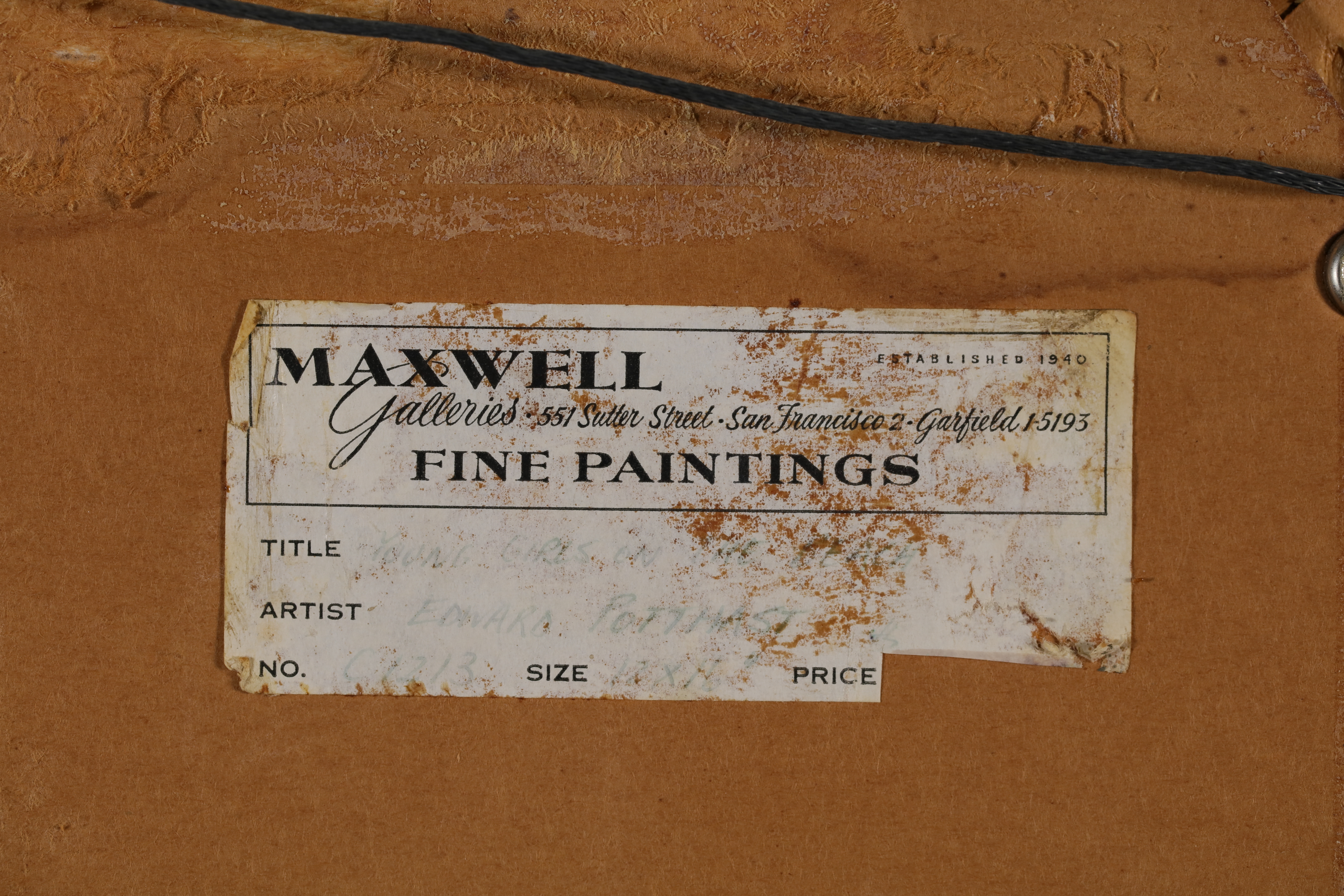 Provenance: Maxwell Galleries - San Francisco c. 1990 (original labels verso)