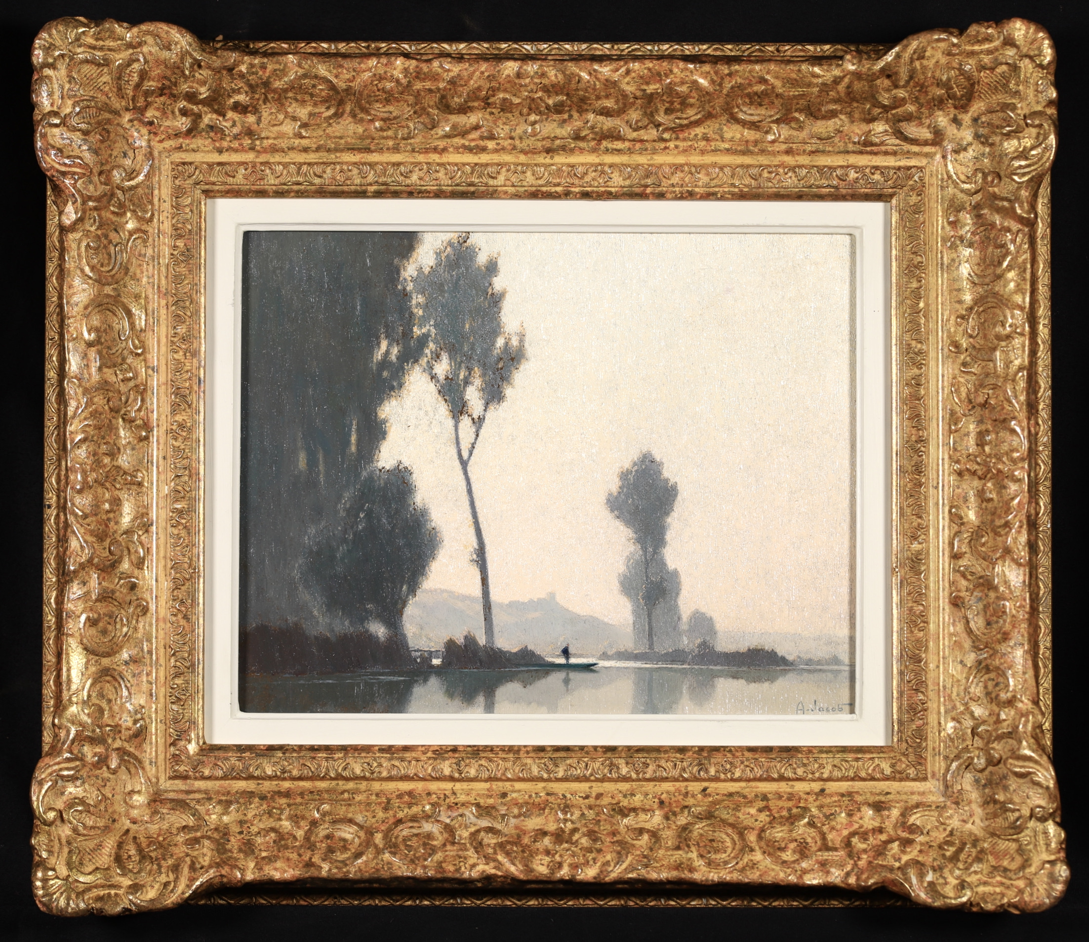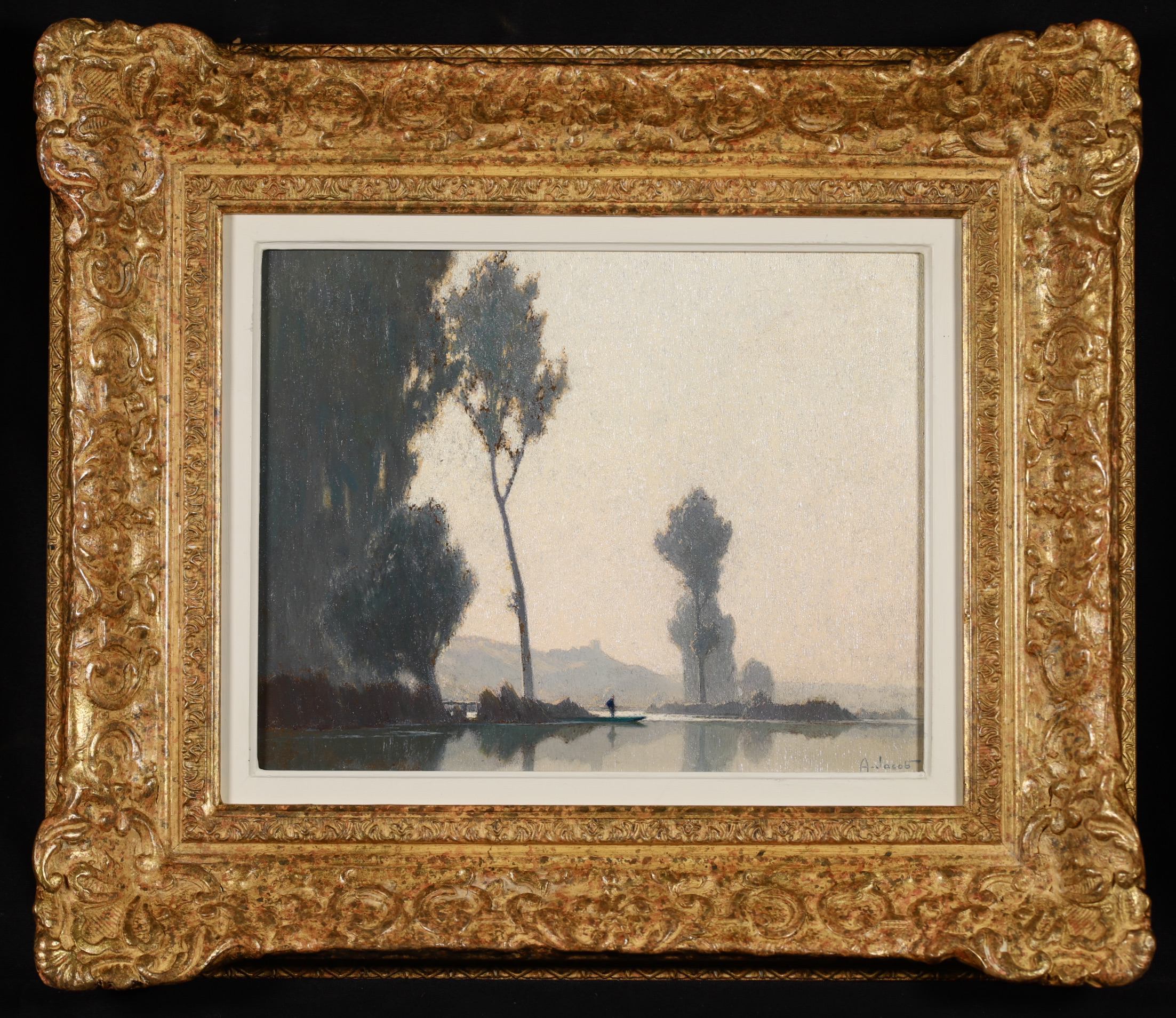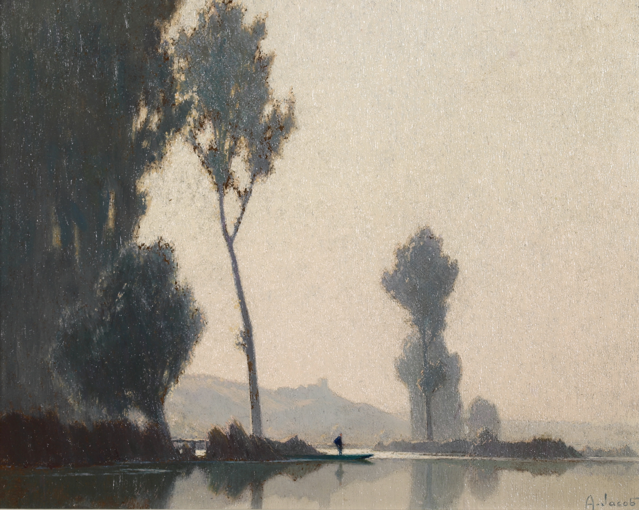 Jacob was a pupil of Eugène Claude. He was noted for his effects evoking the light of dawn and dusk. From 1899, he exhibited in Paris at the Salon des Artistes Français, of which he became a member in 1902. He received an honourable mention in 1908, a gold medal hors concours in 1914 and a gold medal at the Exposition Internationale in 1937. He exhibited there until 1950. He also showed at the Salon d'Hiver, the Salon des Aquarellistes, as well as in private galleries.