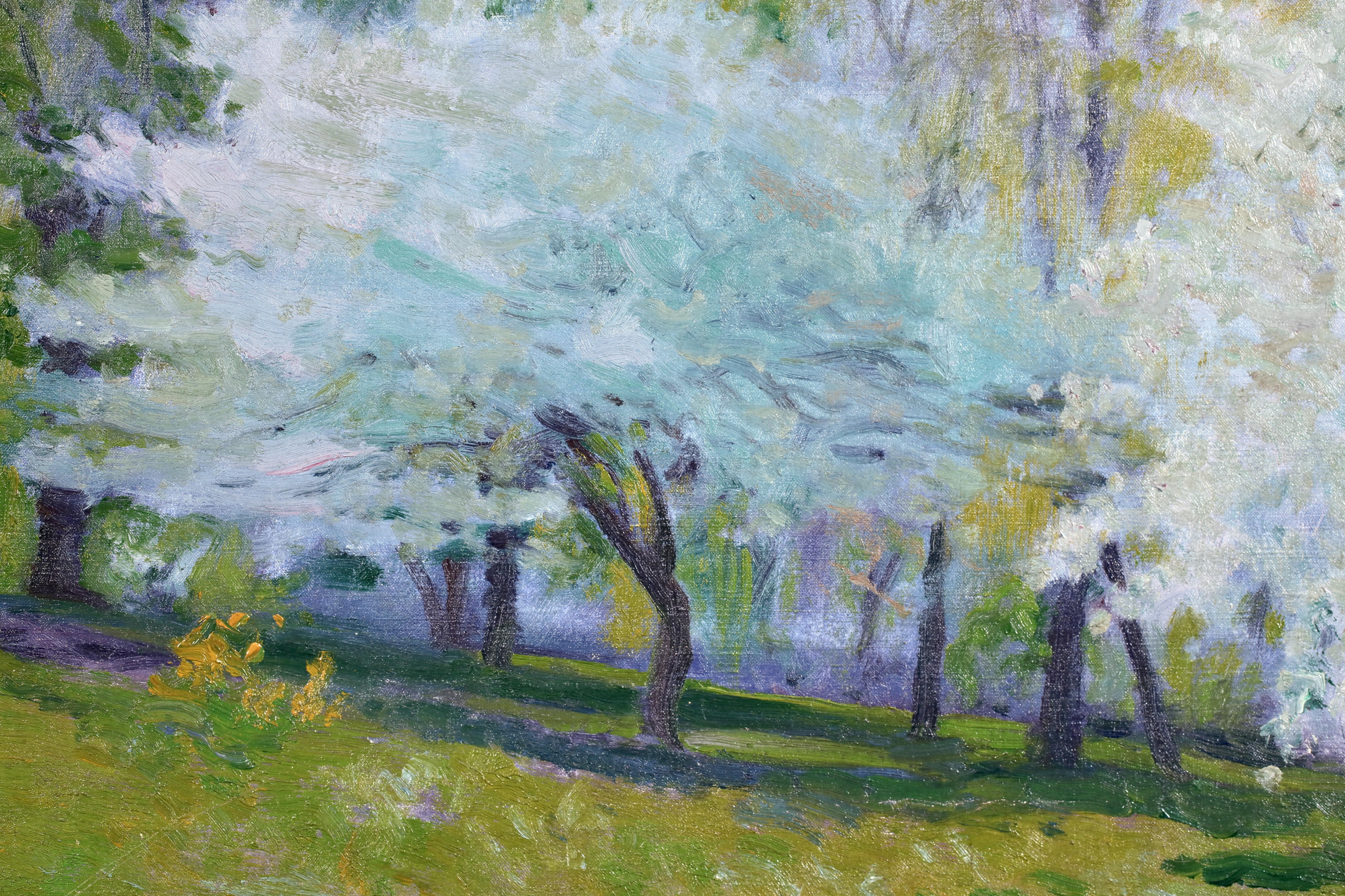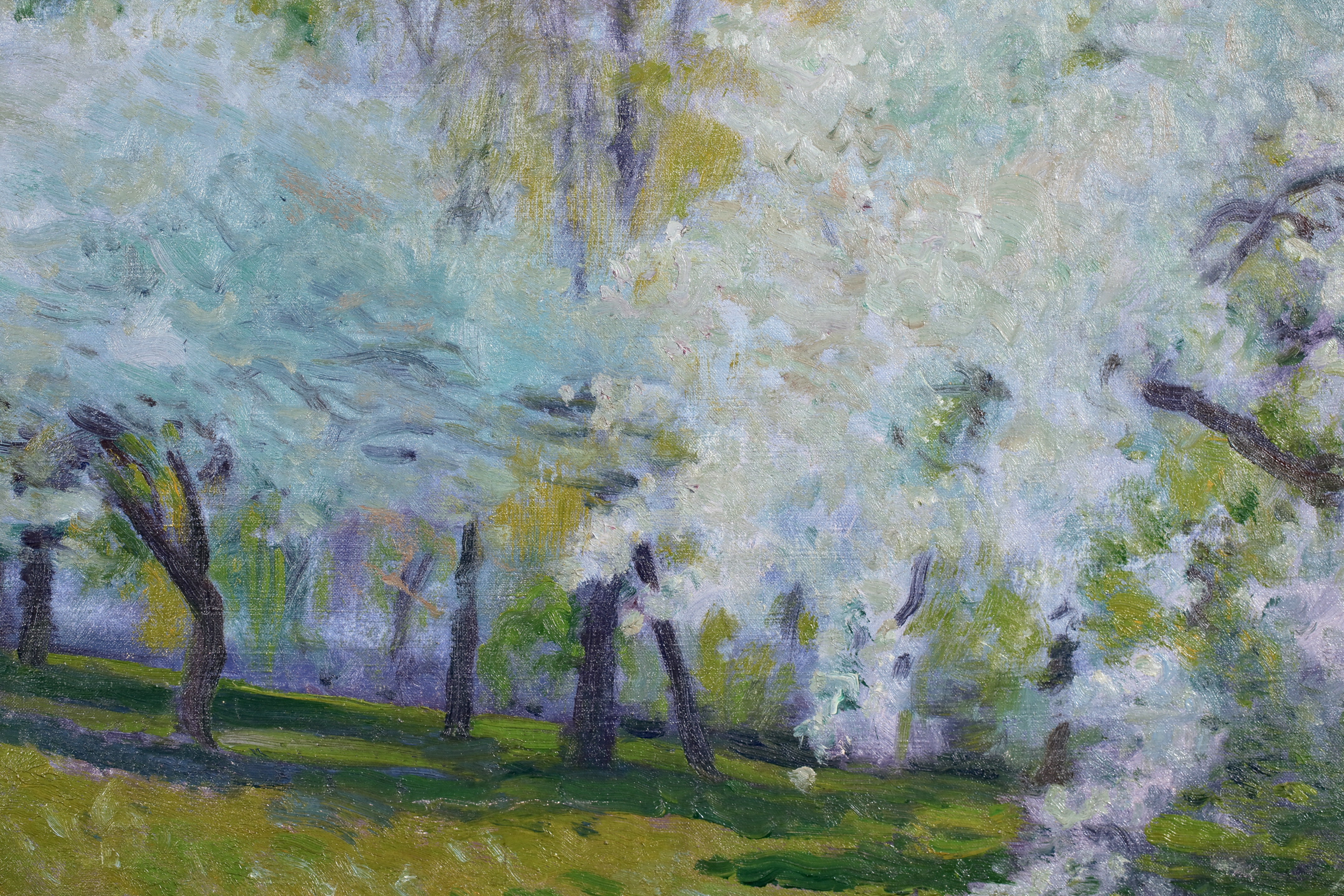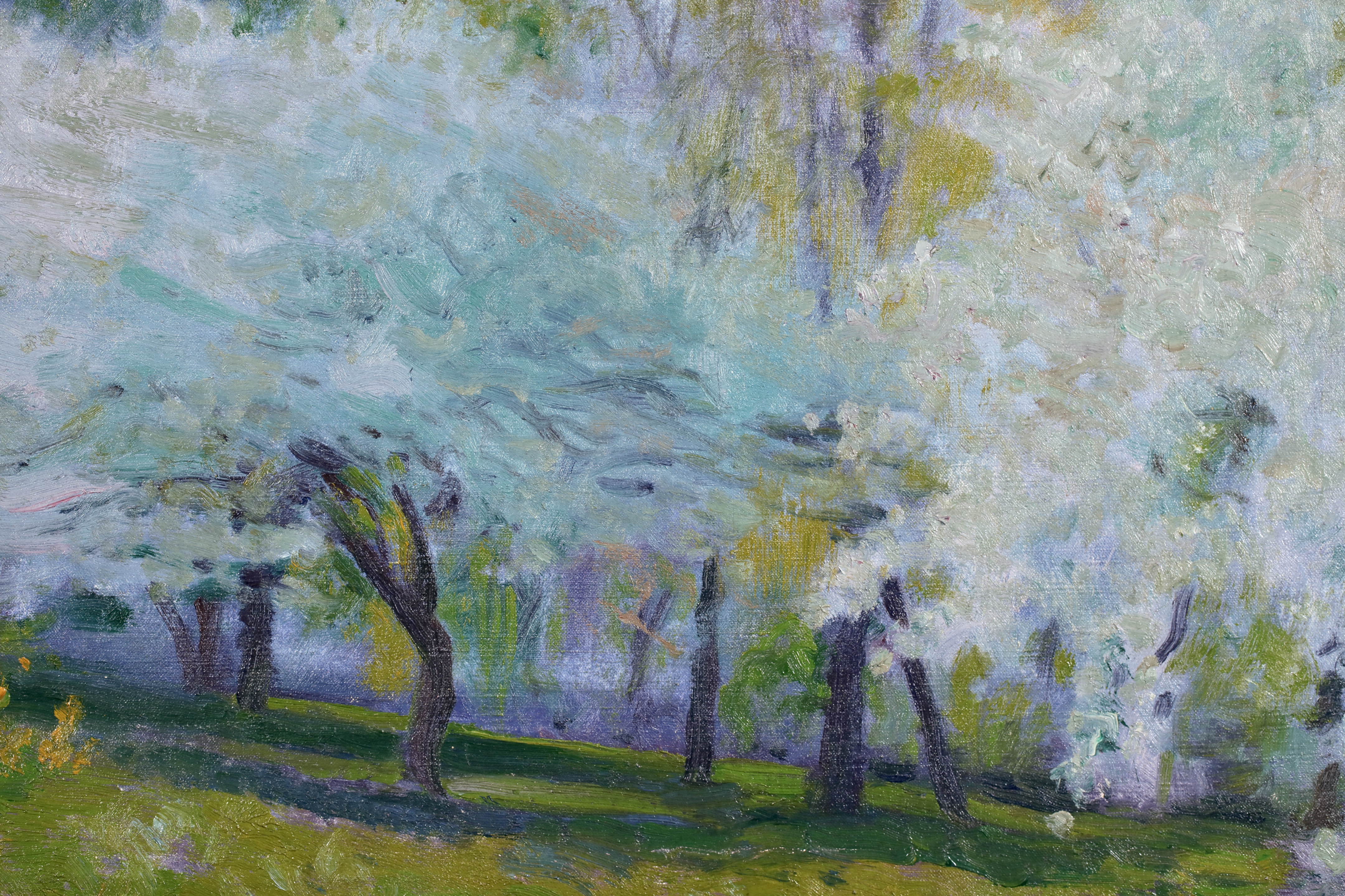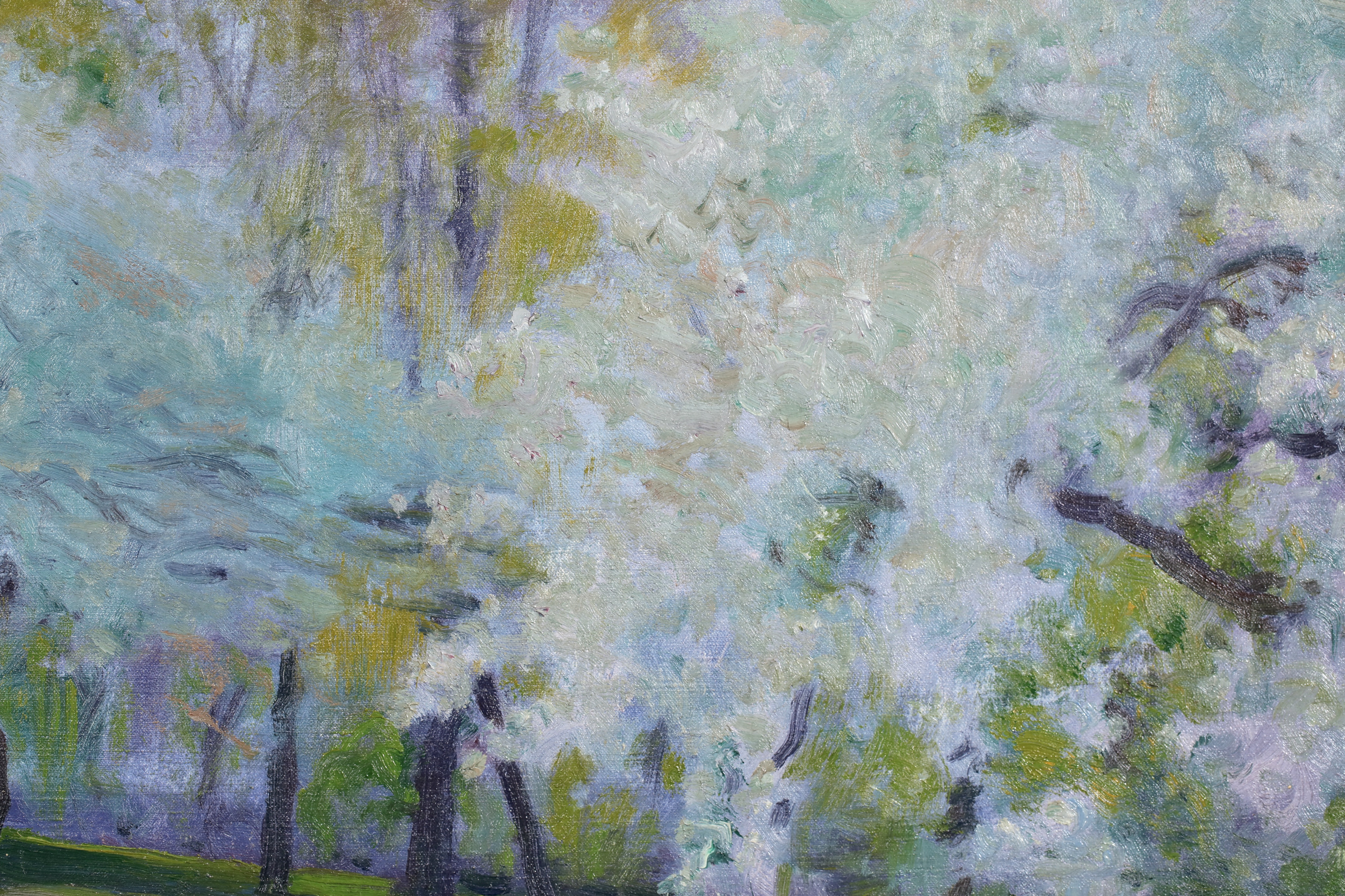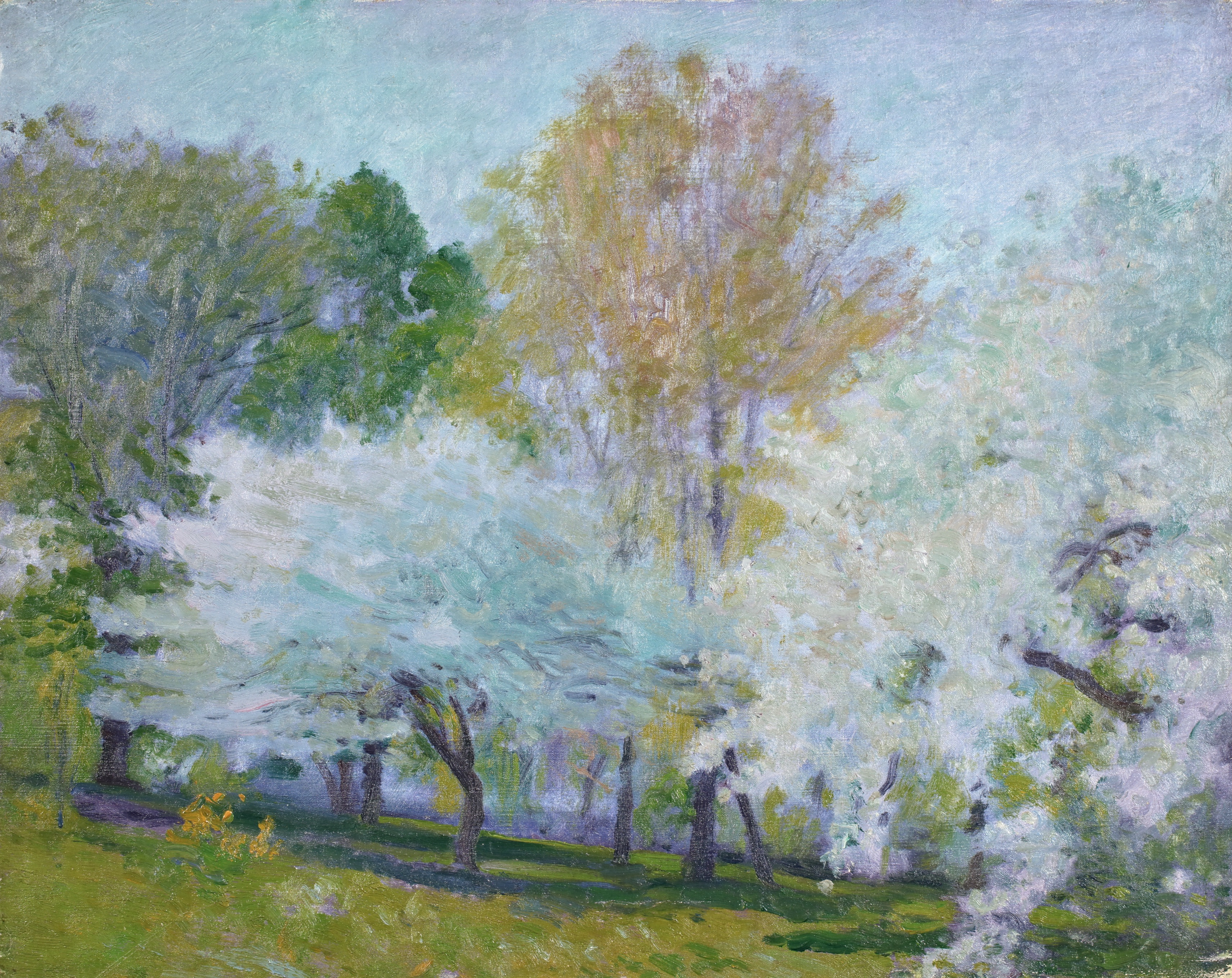 Robert William Vonnoh studied at the Massachusetts Normal Art Club in Boston and, from 1880 onward, in Paris with Gustave Boulanger and Jules Lefebvre at the Académie Julian. He returned to Boston in 1883, began teaching at the Museum of Fine Arts School in Boston in 1885, and at the Pennsylvania Academy of the Fine Arts, Philadelphia, in 1891. In 1887, he began visiting Grèz-sur-Loing (France) frequently, sometimes for prolonged periods. Vonnoh painted flower beds, figures and landscapes with a highly colourful palette. He emphasized Impressionism in his teaching, and Robert Henri and William Glackens were among his students.