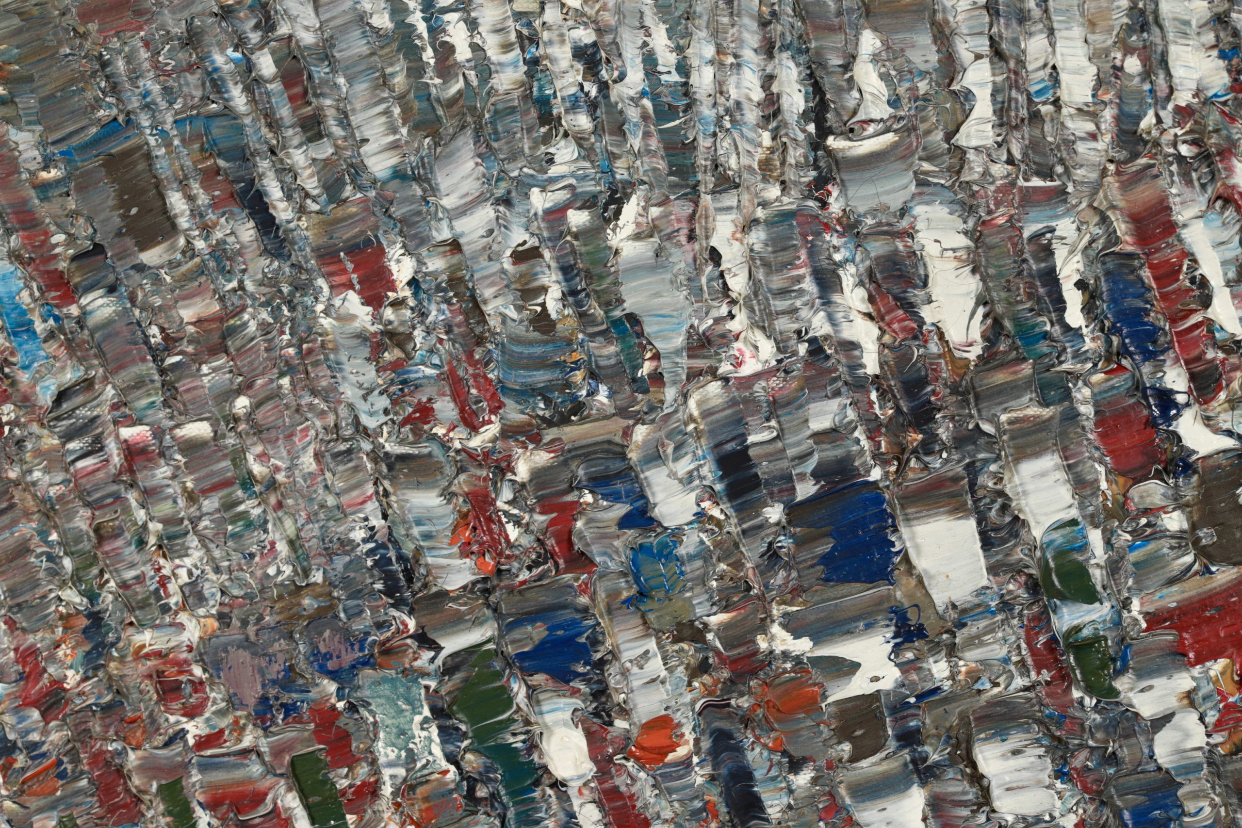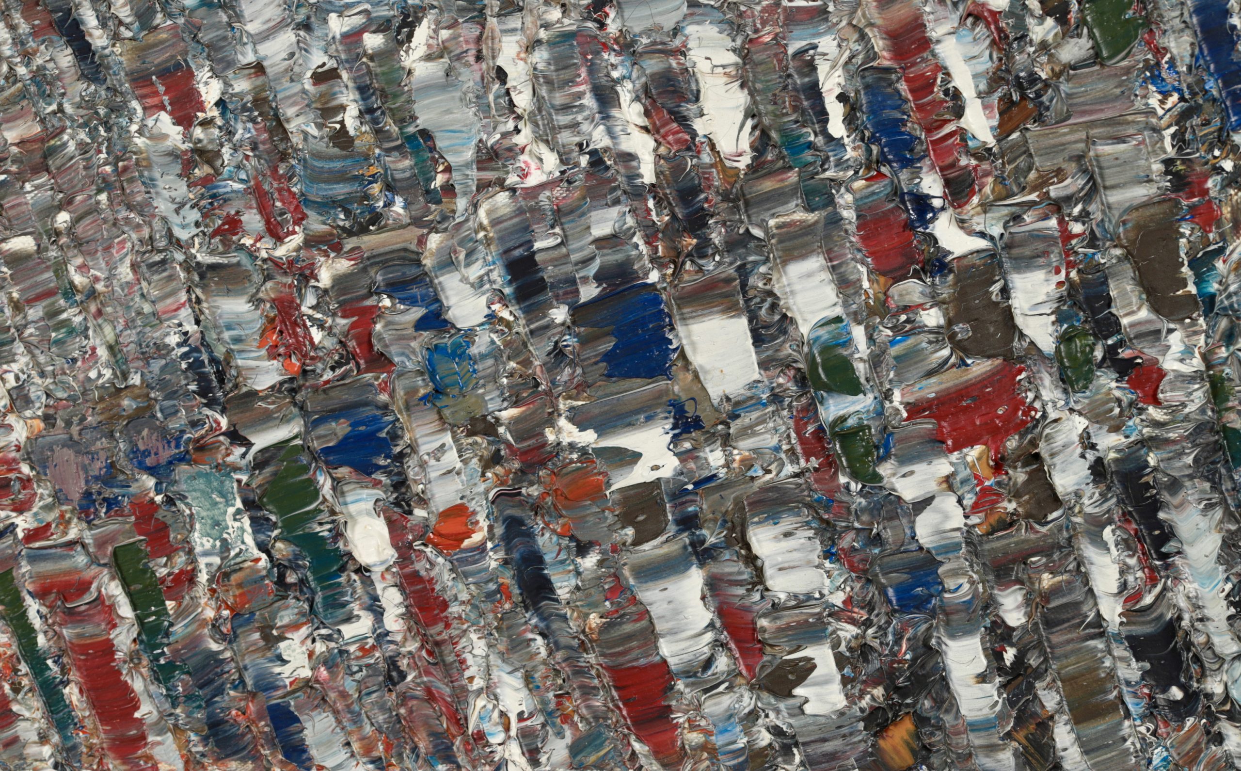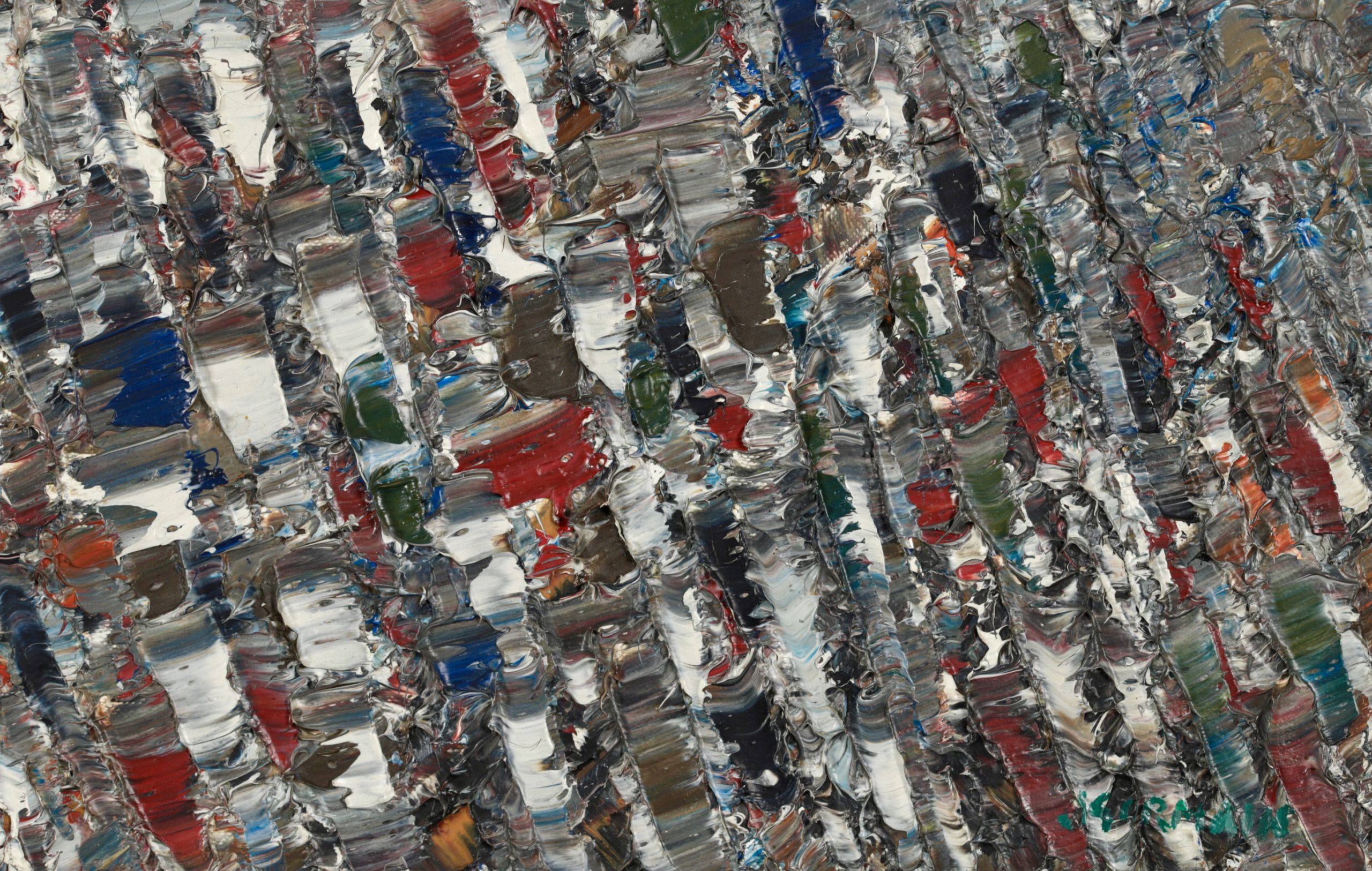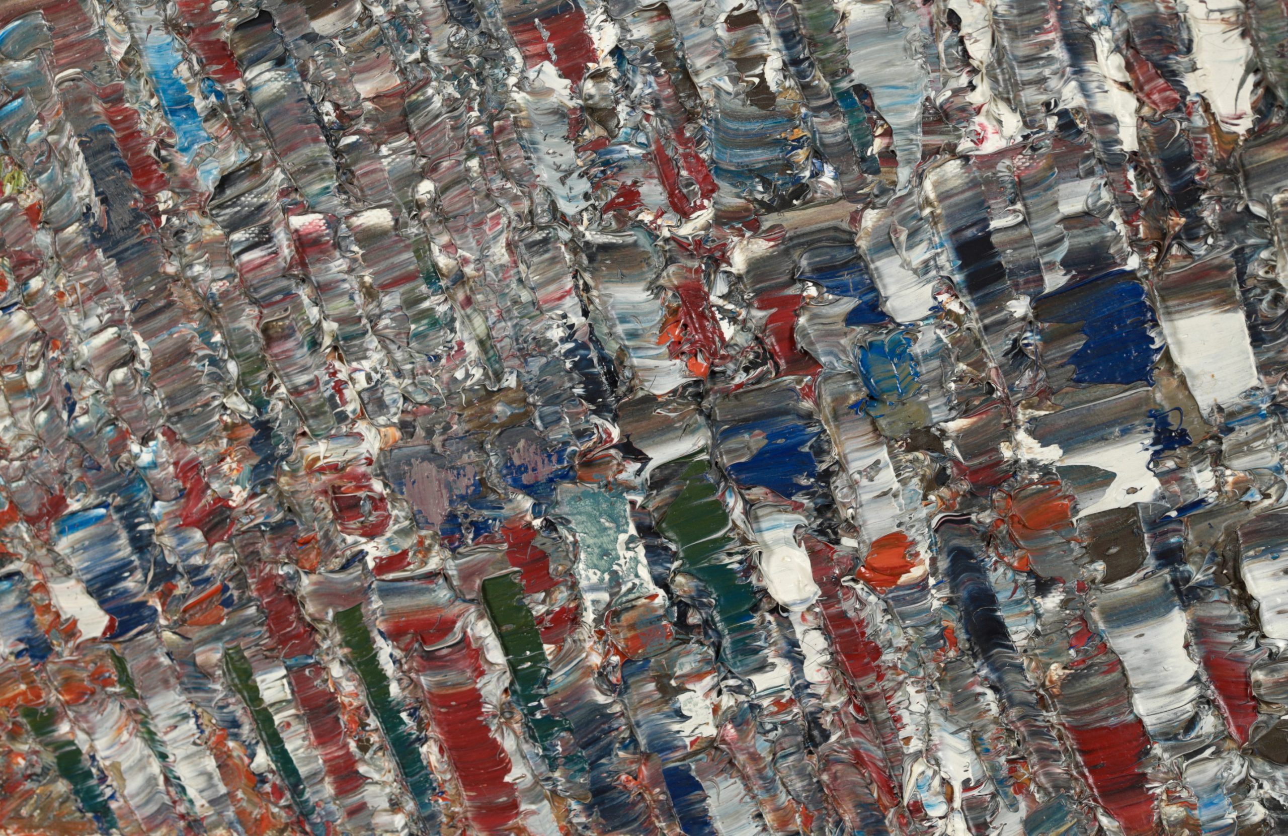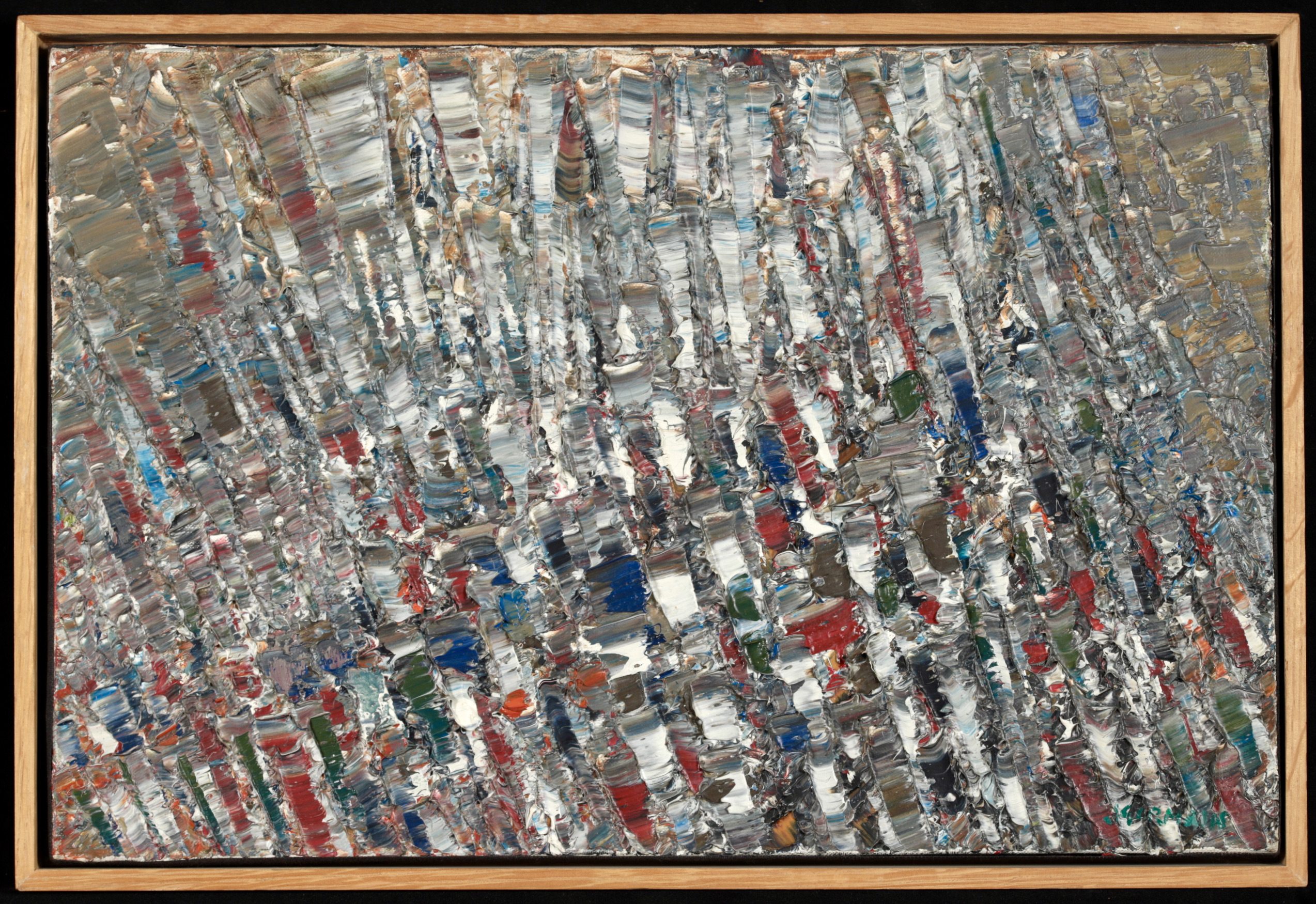 Since painters usually go through a period of apprenticeship, and abstract painters begin as figurative painters, it is surprising, though perhaps the result of his early training at the Bauhaus, that Jacques Germain was an abstract painter from the start and early on had control of what was to be his final style. He was particularly successful in mastering loud or subdued chords of colour that resonated along oblique rhythms like notes in a cantata or a fugue by Bach. In an approach reminiscent of Monet's water lilies period he used his immense technical resources, subtle colour sense and a sensual appreciation of intertwined paint textures applied with a knife to exteriorise, express and communicate all the movements of his spirit in the domain of non-figurative painting.