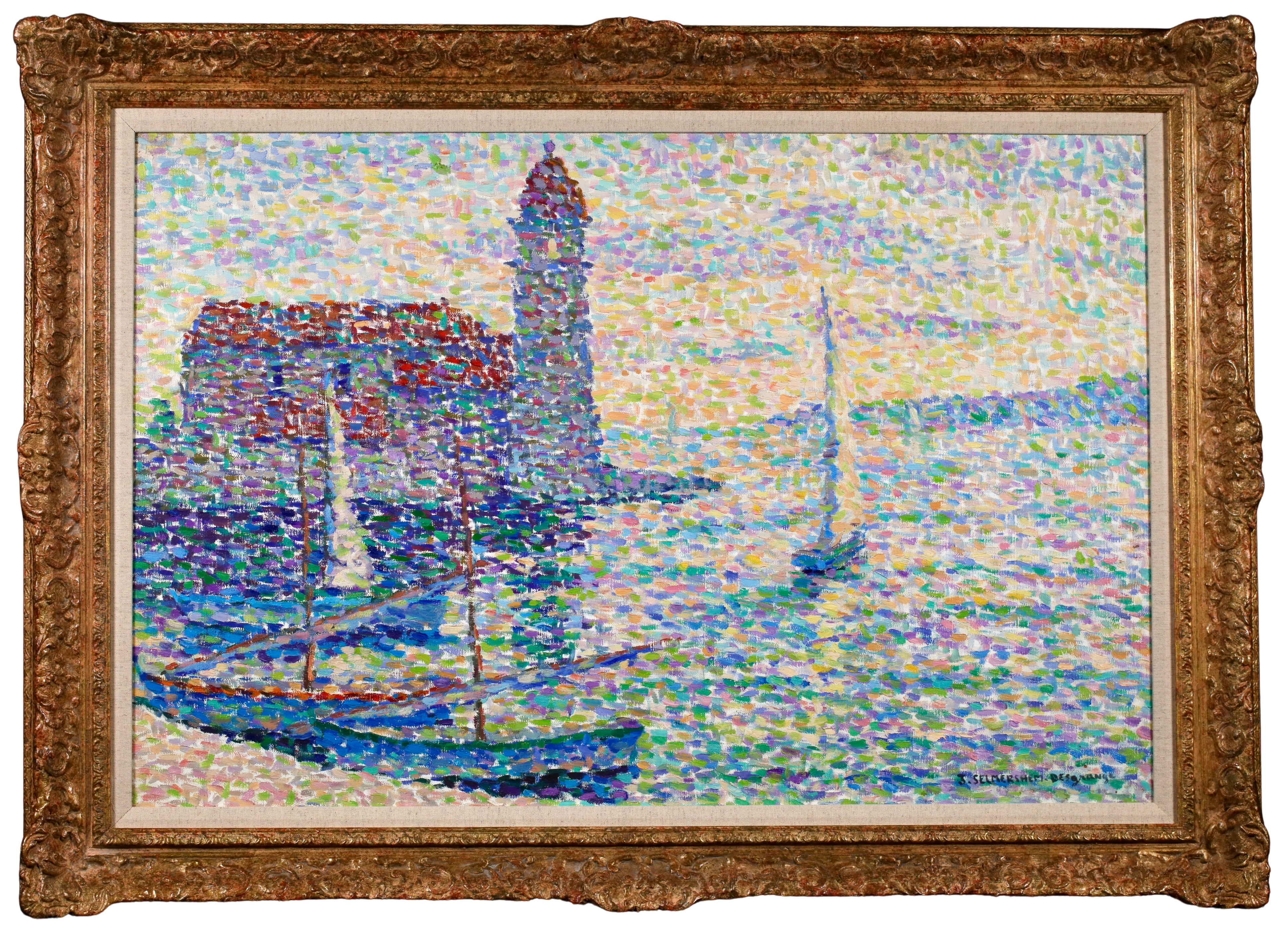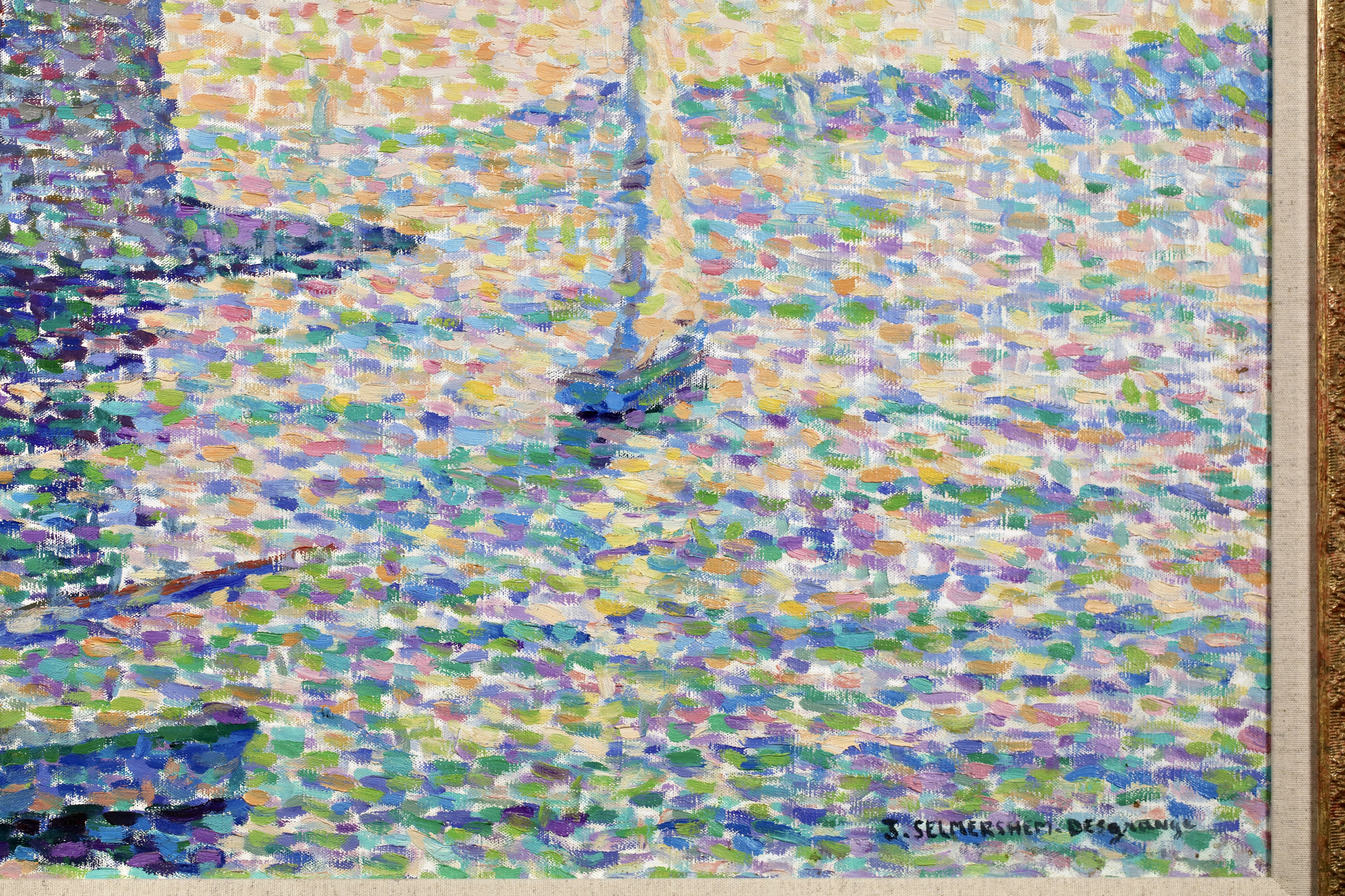 Selmersheim-Desgranges, raised in a family of artists and architects, became an art student of Paul Signac and later, in 1910, his companion. At the time, Signac was married to Bertha (Robles), and Selmersheim-Desgranges was married to Pierre Desgrange with whom she had three children. In September 1912, Signac and Selmersheim-Desgranges moved to a rented villa in Cap d’Antibes, France and in October 1912 she gave birth to their daughter Ginnette Laurie Anaiis.