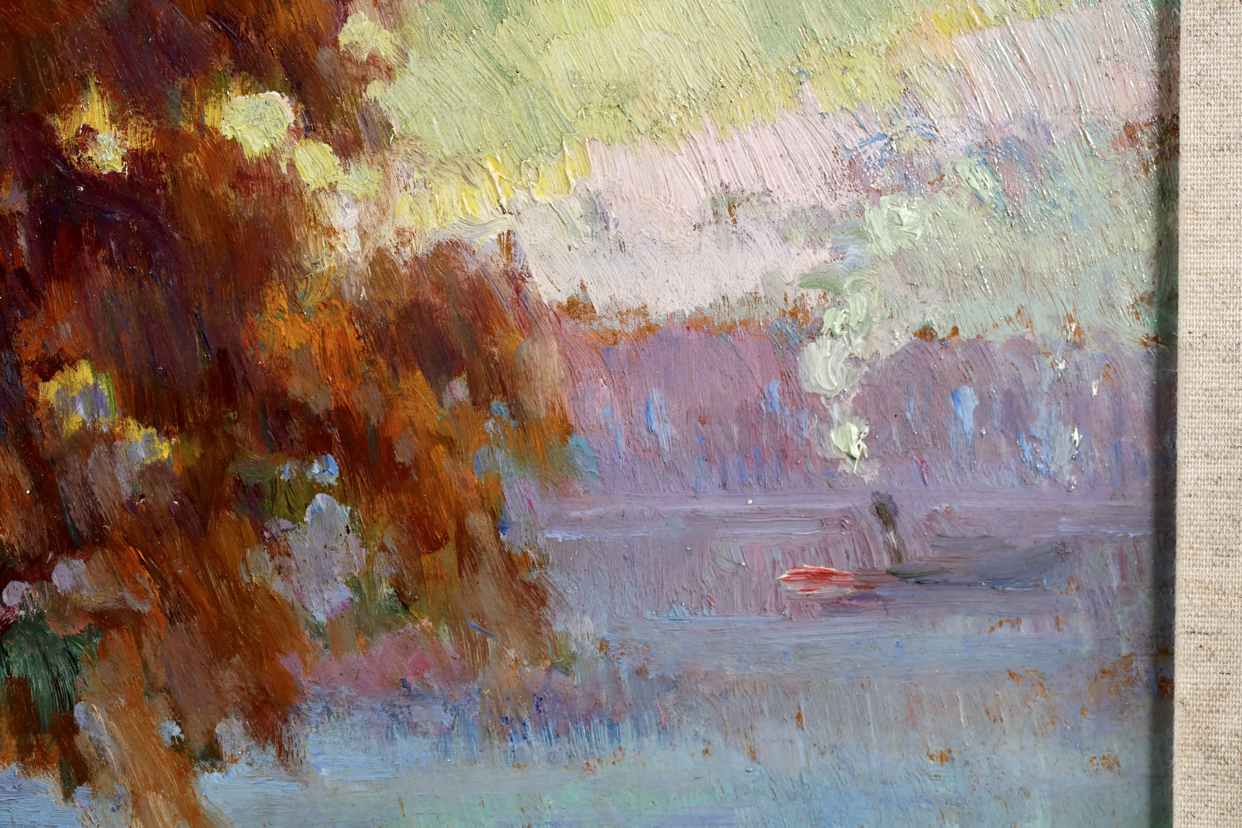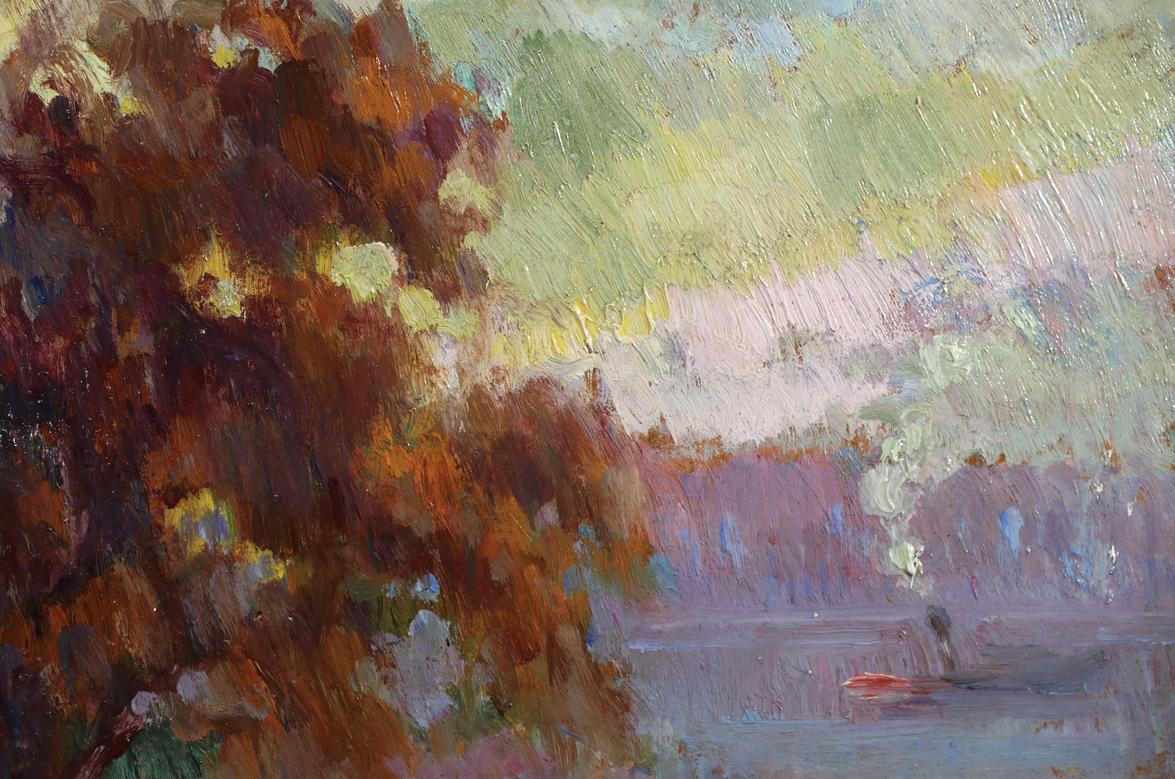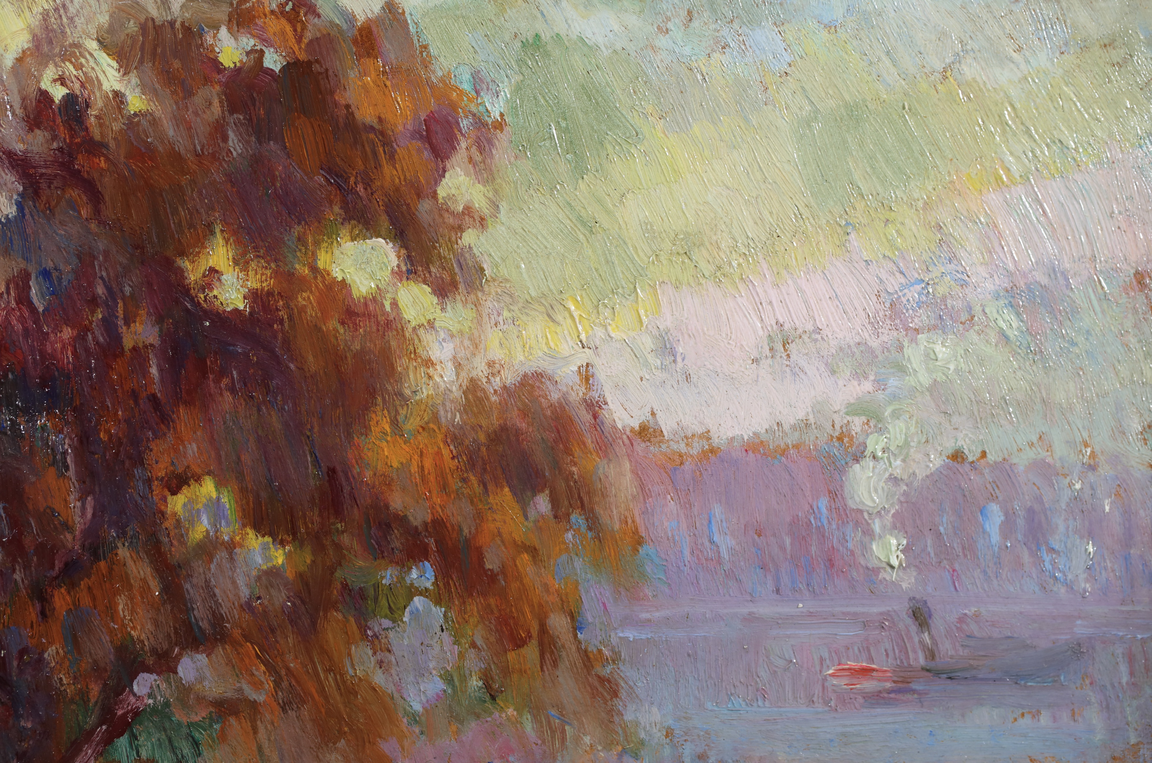 Along with Dumont and Guilbert, Robert Pinchon is one of the Rouen artists who understood Monet's teachings best. Monet himself noticed Pinchon's 'eye' when he met him for the first time. On a technical level, he used pure colours, just as they came out of the tube. His poetical art perfectly rendered not only the misty lights of the port of Rouen, but also scenes of daily life, whether of a young woman sitting in a garden or children playing with a ball. Noteworthy are: Embankment in Rouen; Rouen in the Snow; Banks of the Seine; Suspension Bridge at Elbeuf.