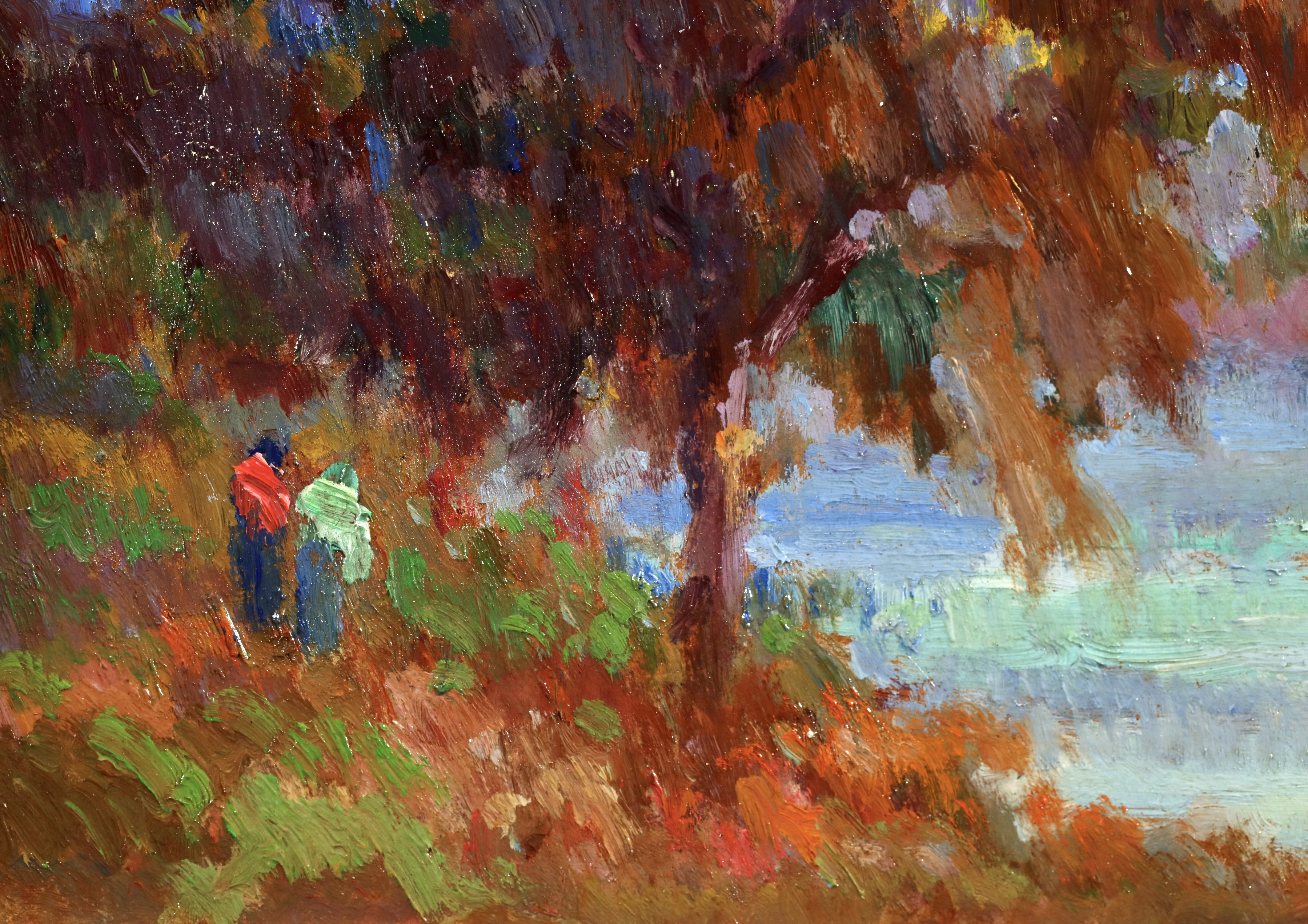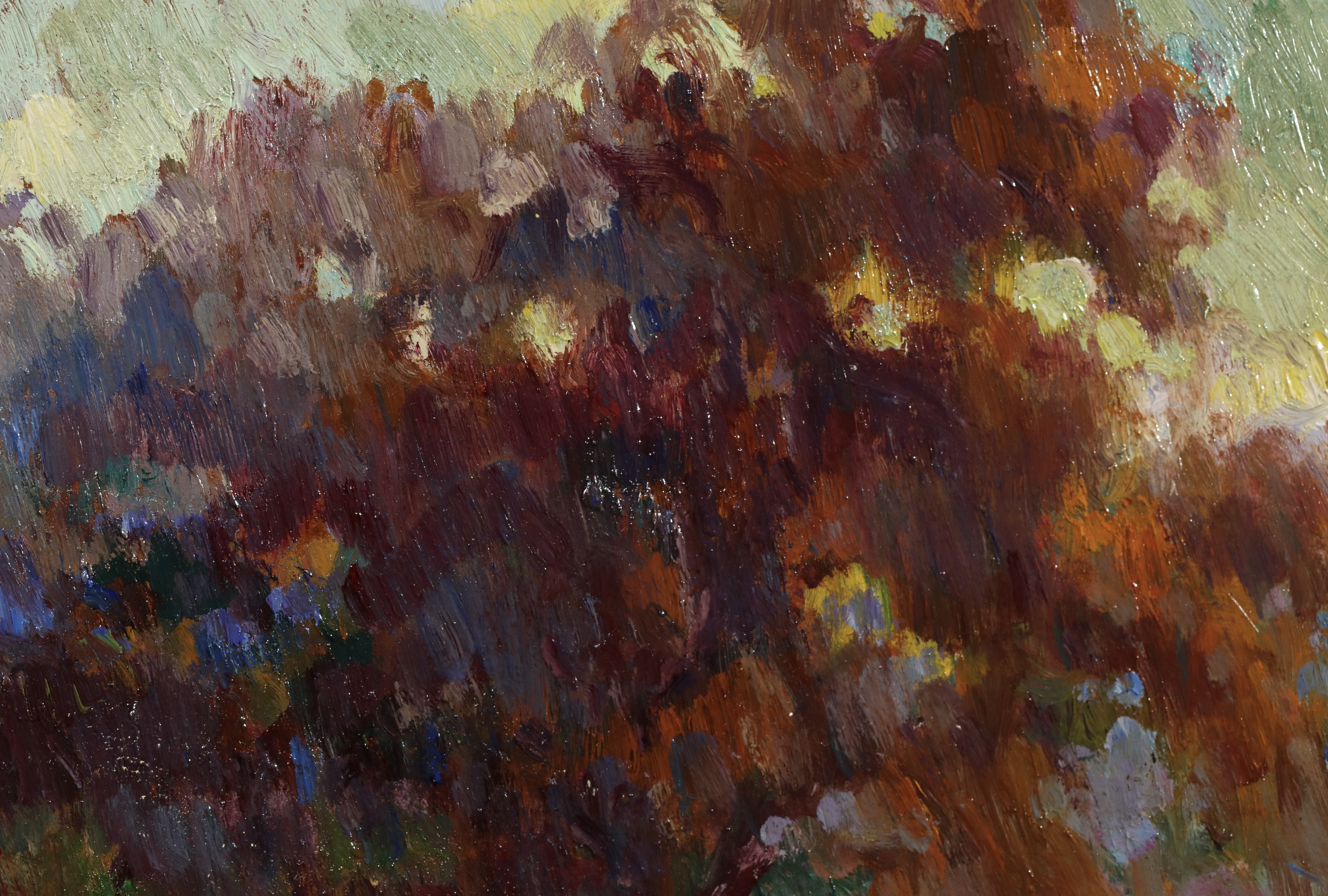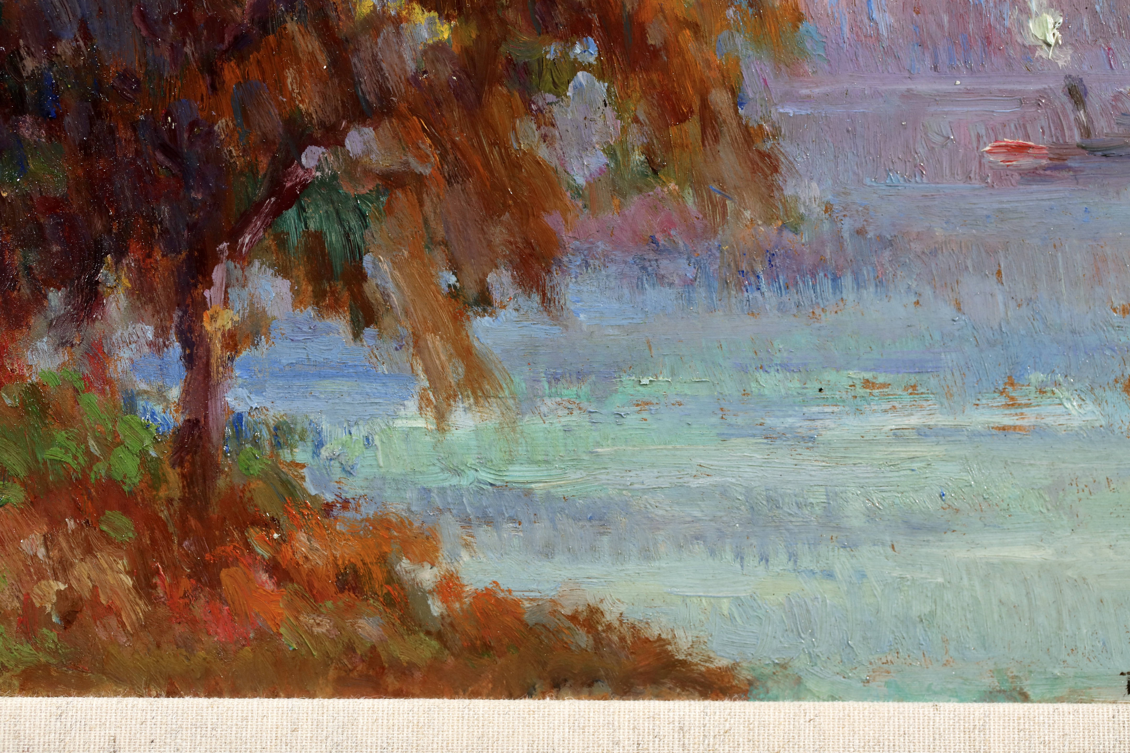 Along with Dumont and Guilbert, Robert Pinchon is one of the Rouen artists who understood Monet's teachings best. Monet himself noticed Pinchon's 'eye' when he met him for the first time. On a technical level, he used pure colours, just as they came out of the tube. His poetical art perfectly rendered not only the misty lights of the port of Rouen, but also scenes of daily life, whether of a young woman sitting in a garden or children playing with a ball. Noteworthy are: Embankment in Rouen; Rouen in the Snow; Banks of the Seine; Suspension Bridge at Elbeuf.