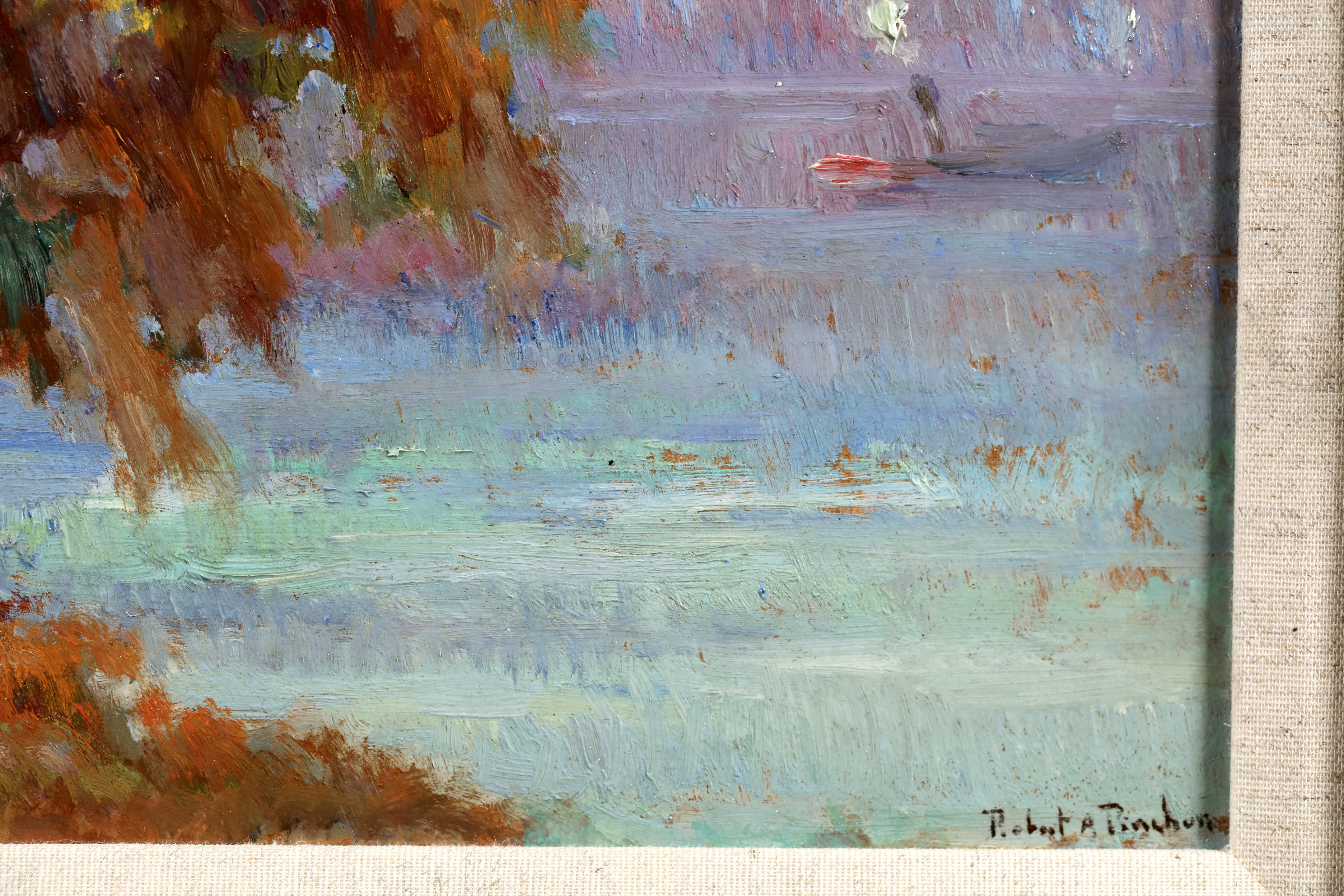 Robert Pinchon was a student of Zacharie at the École des Beaux-Arts in Rouen, and also attended Joseph Delattre's Académie Libre there. Fréchon and Lebourg were his teachers and also his friends. He lived and worked in Rouen, where he founded the Société Normande de Peinture Normande with Dumont, Hodé and Tirvert.