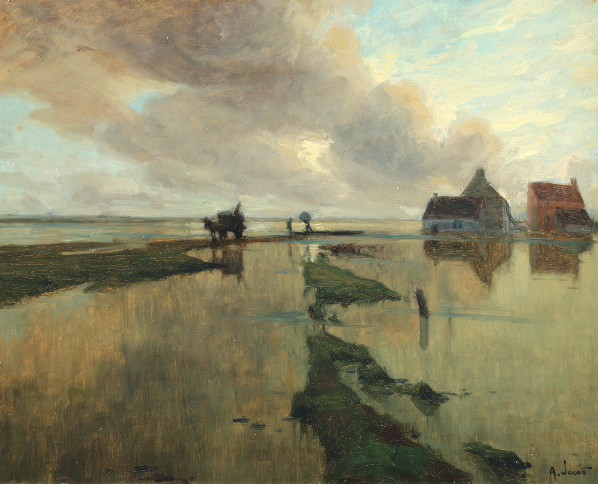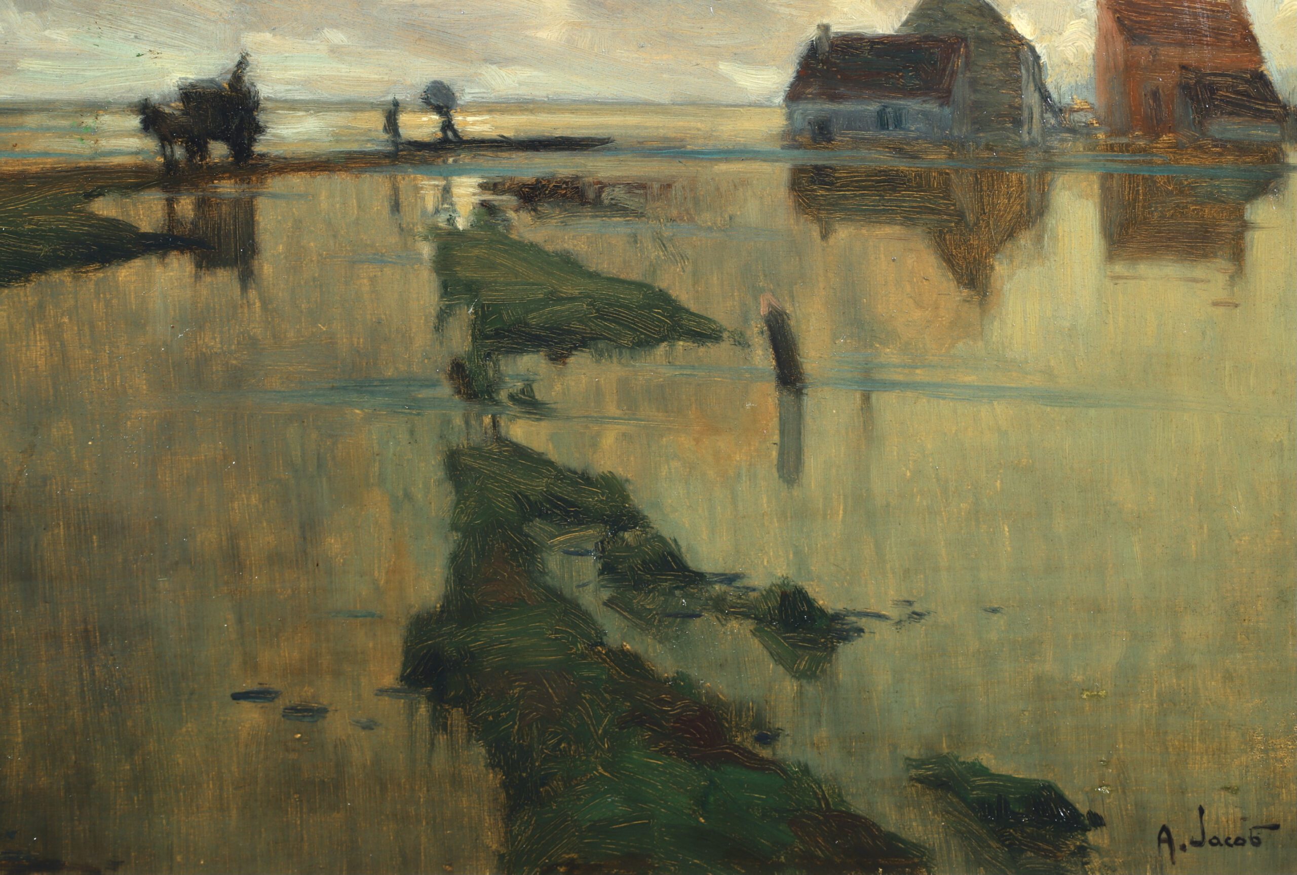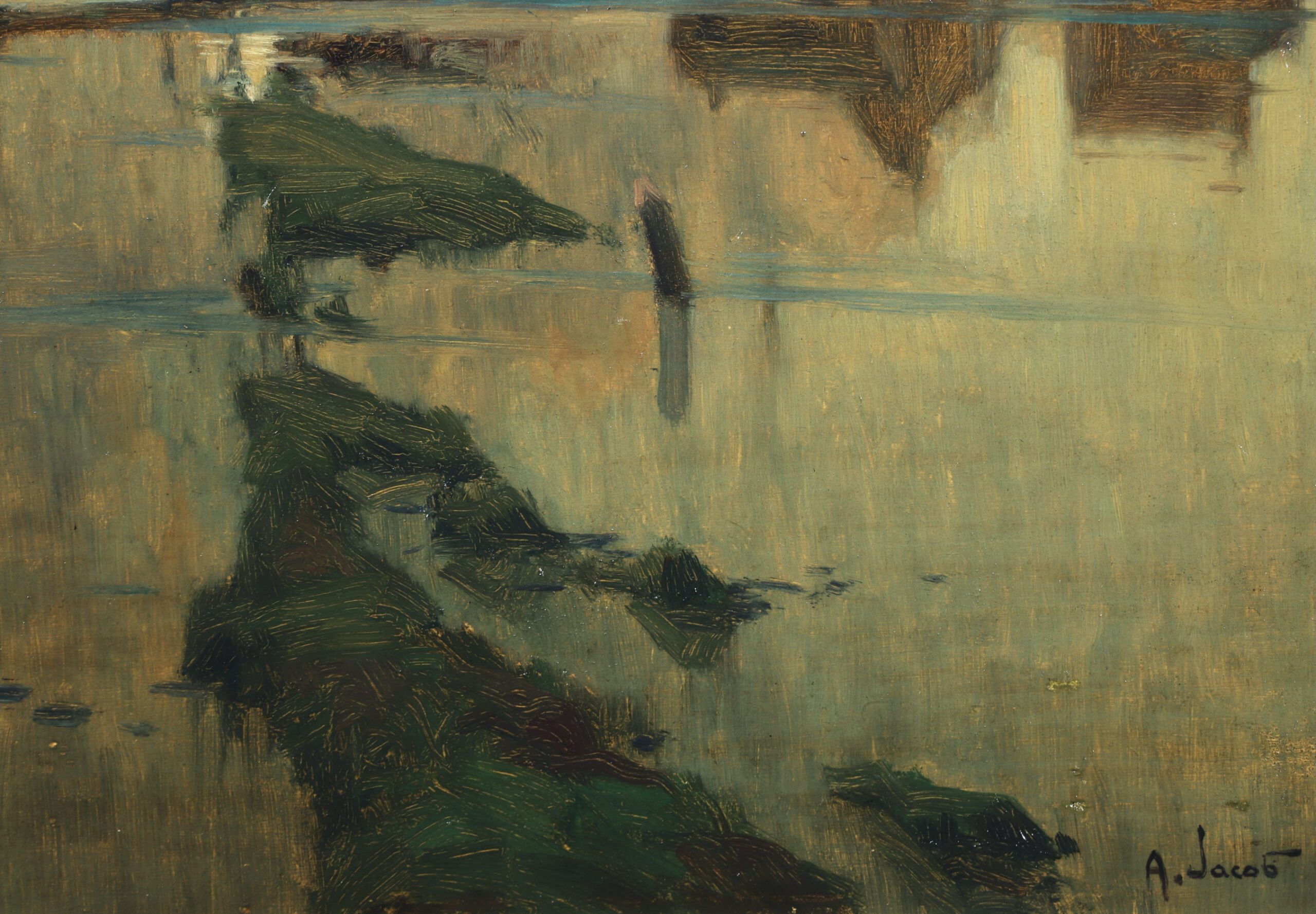 Jacob was a pupil of Eugène Claude. He was noted for his effects evoking the light of dawn and dusk. From 1899, he exhibited in Paris at the Salon des Artistes Français, of which he became a member in 1902. He received an honourable mention in 1908, a gold medal hors concours in 1914 and a gold medal at the Exposition Internationale in 1937. He exhibited there until 1950. He also showed at the Salon d'Hiver, the Salon des Aquarellistes, as well as in private galleries.