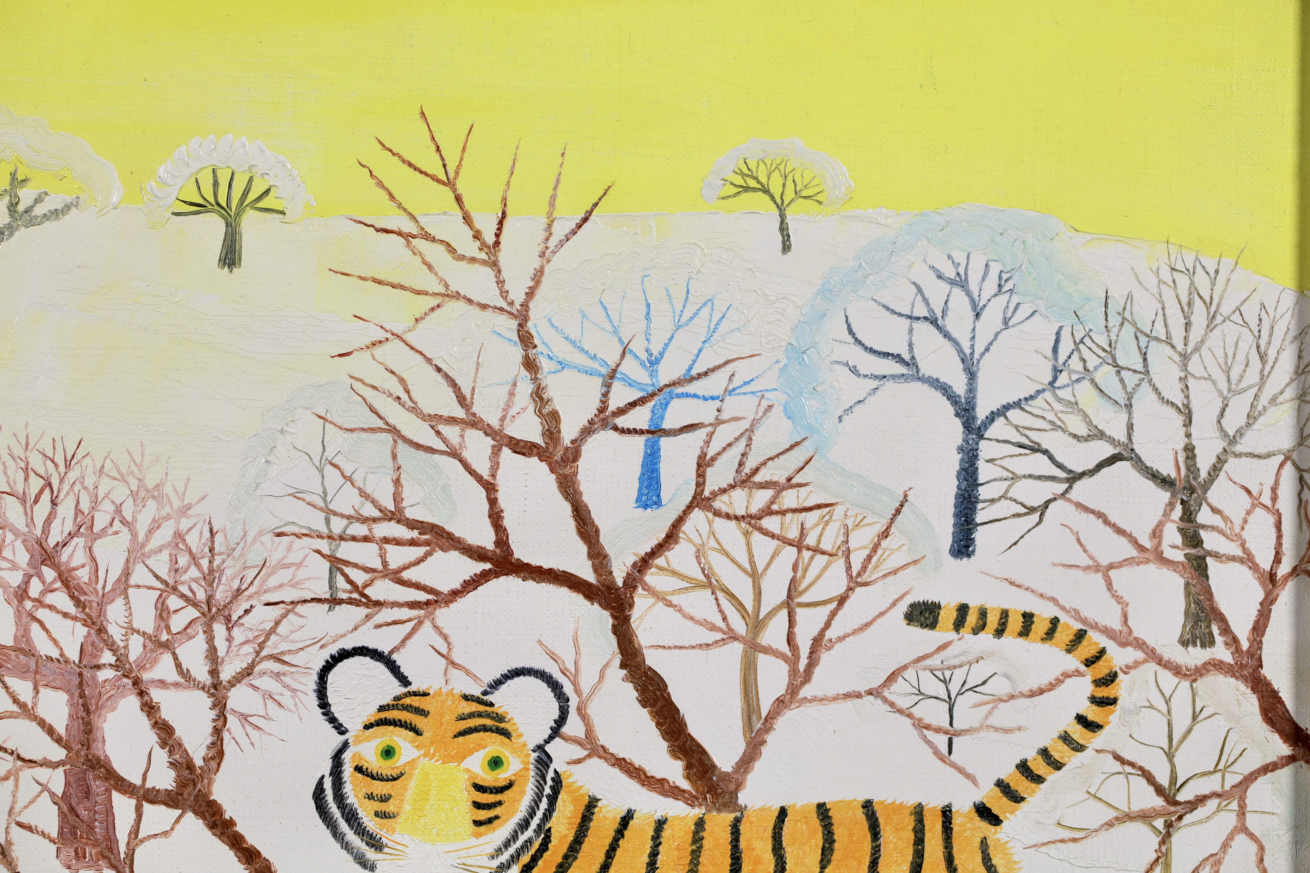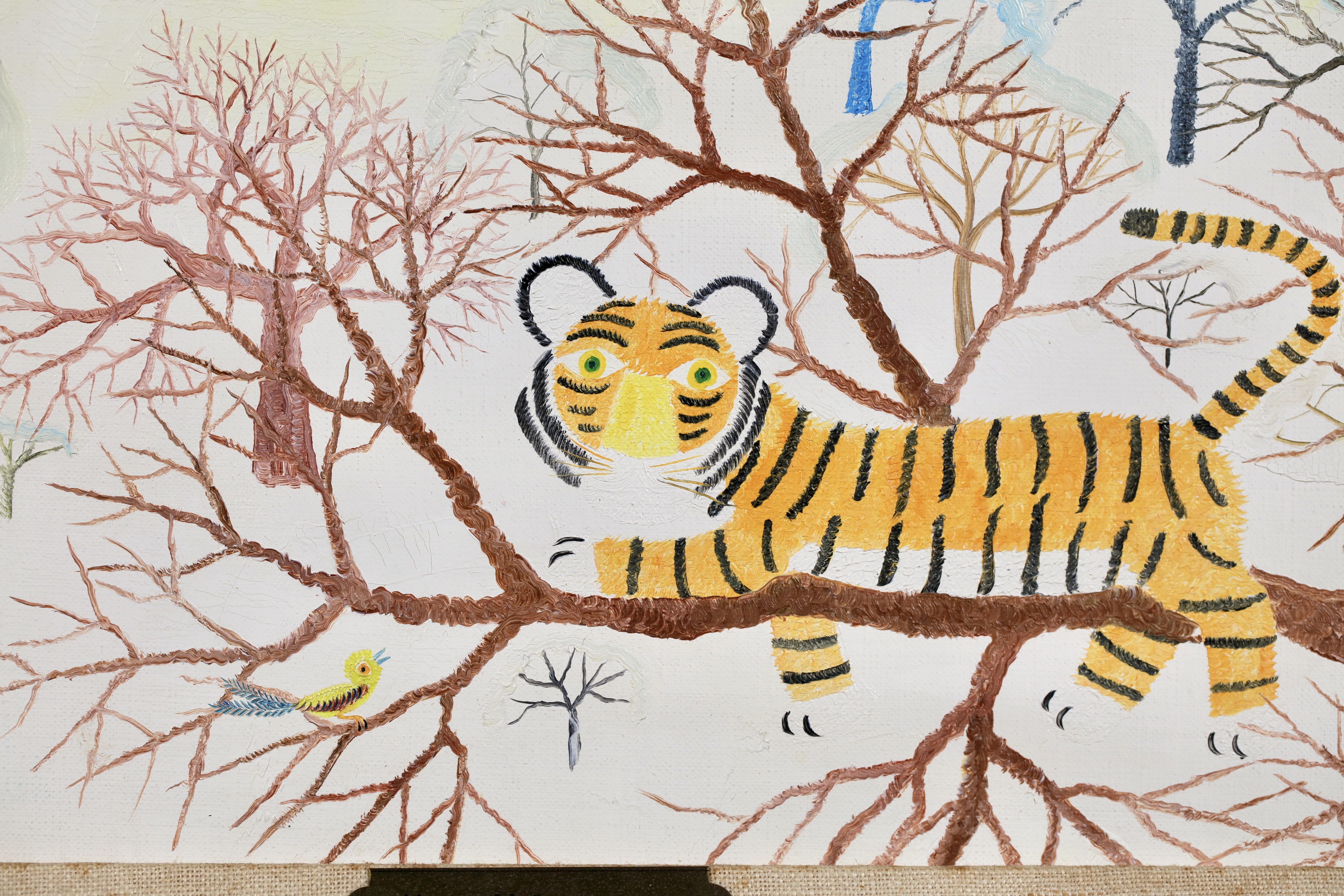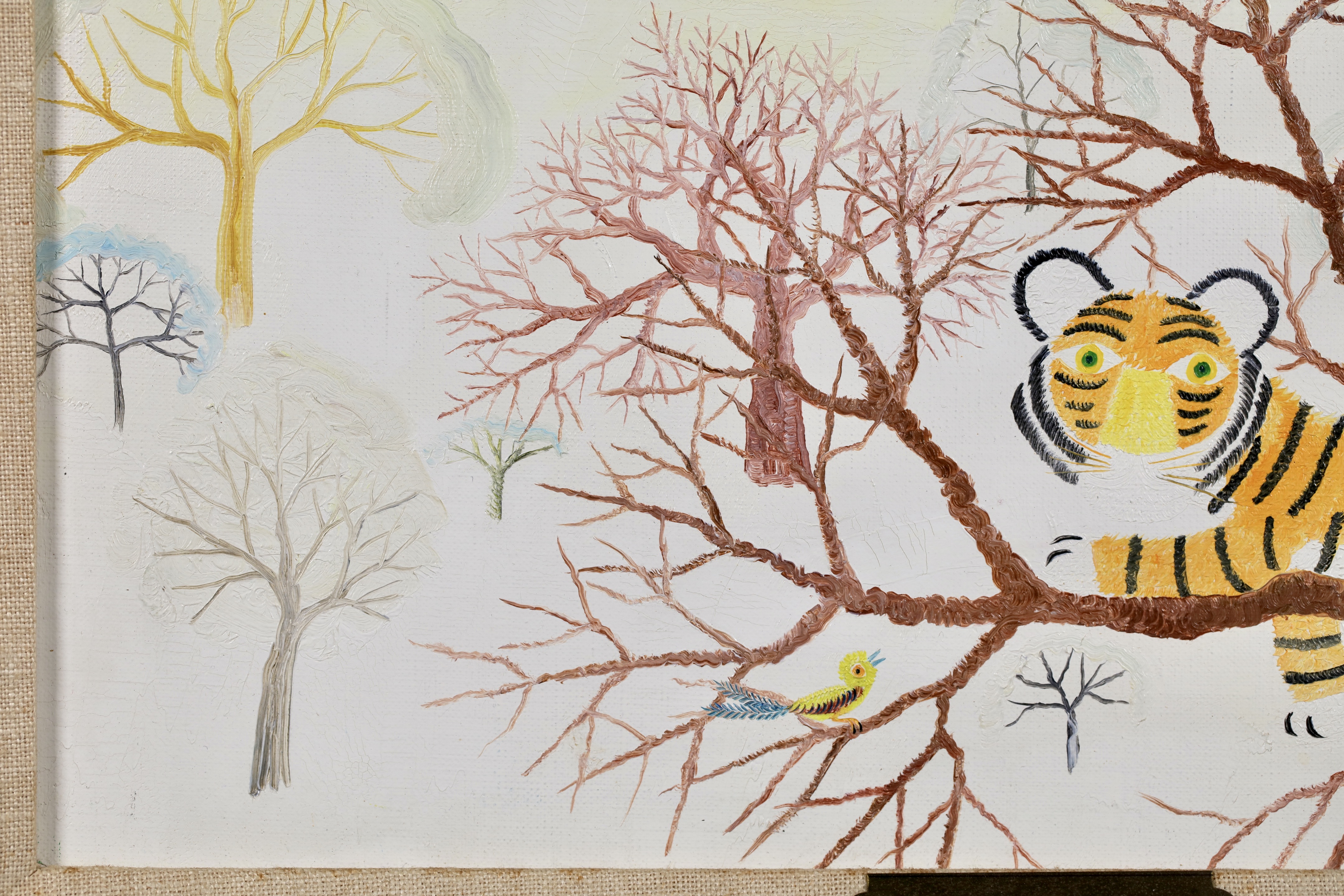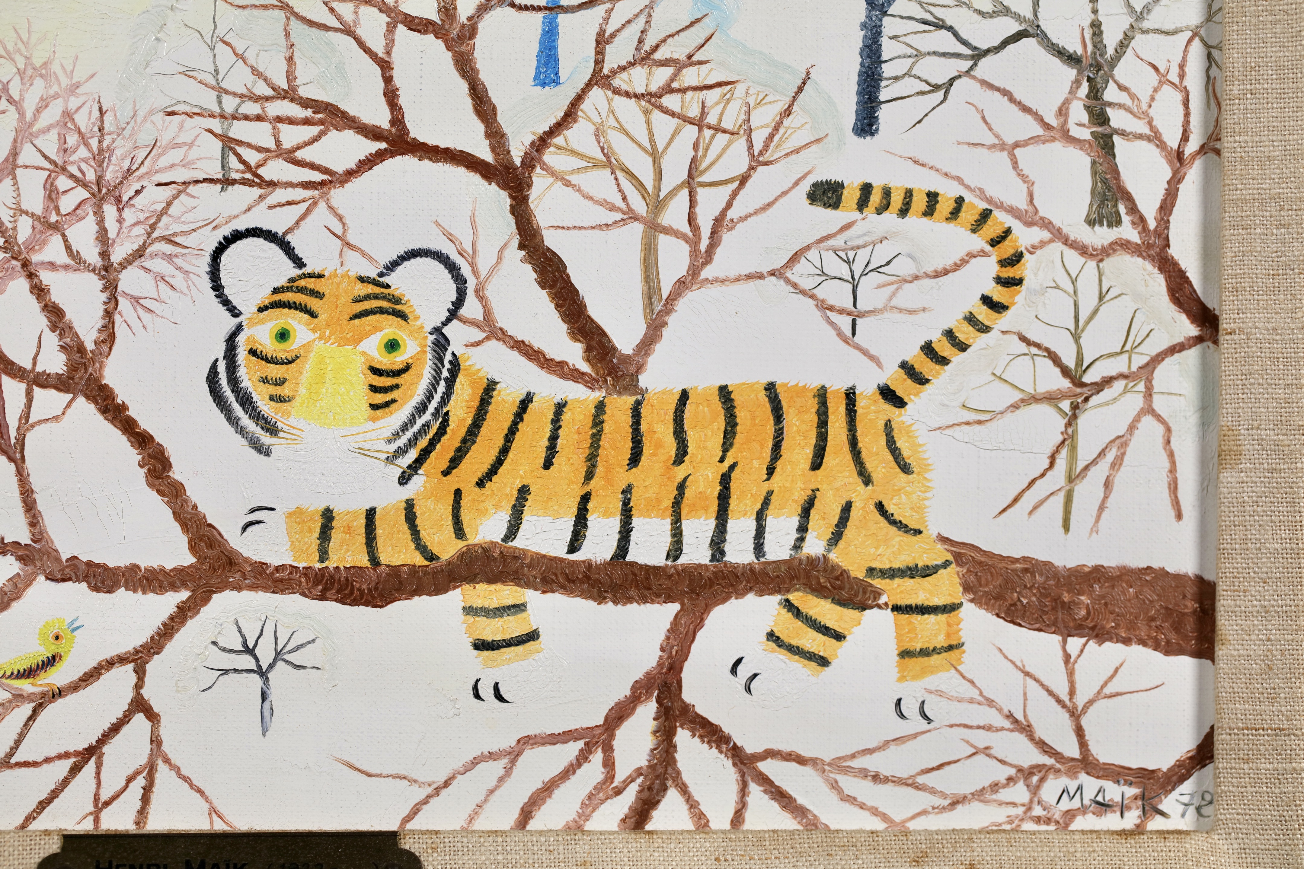 Henri Maik was born in Paris on March 27, 1922 the son of the illustrator and engraver, Joseph Hecht. Maik designates himself as a Primitive painter, not a naïf painter. In many ways, the paintings of Henri Maik are paradoxical, at once familiar and strange, childlike and sophisticated, quiet and vocal with color. They are dreamscapes; their terrain lush with fields of simple flowers, exotic trees, rare birds and the beasts of the jungle. In a Maik painting, you enter a community of creatures, at rest and at play, dwelling in perfect harmony, who seem to look out at us, as if to suggest we might do as they are doing.