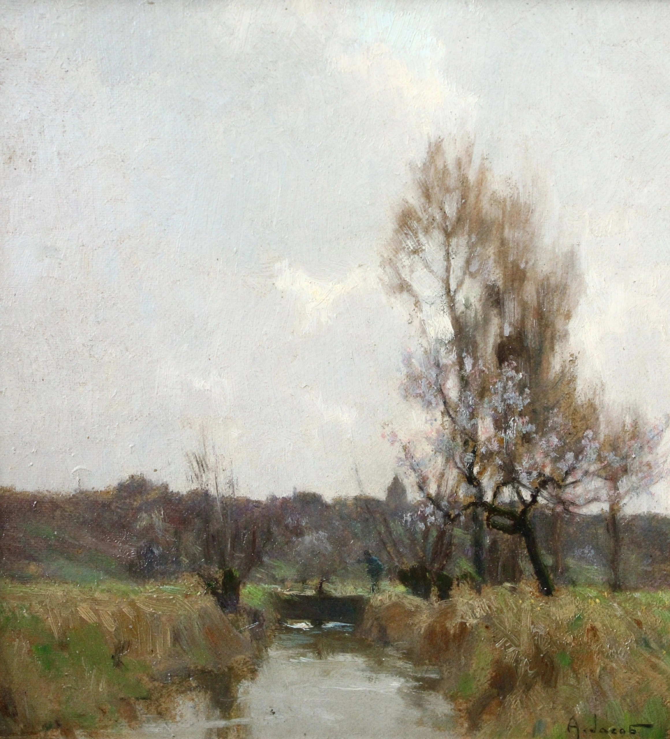 Jacob was a pupil of Eugène Claude. He was noted for his effects evoking the light of dawn and dusk. From 1899, he exhibited in Paris at the Salon des Artistes Français, of which he became a member in 1902. He received an honourable mention in 1908, a gold medal hors concours in 1914 and a gold medal at the Exposition Internationale in 1937. He exhibited there until 1950. He also showed at the Salon d'Hiver, the Salon des Aquarellistes, as well as in private galleries.