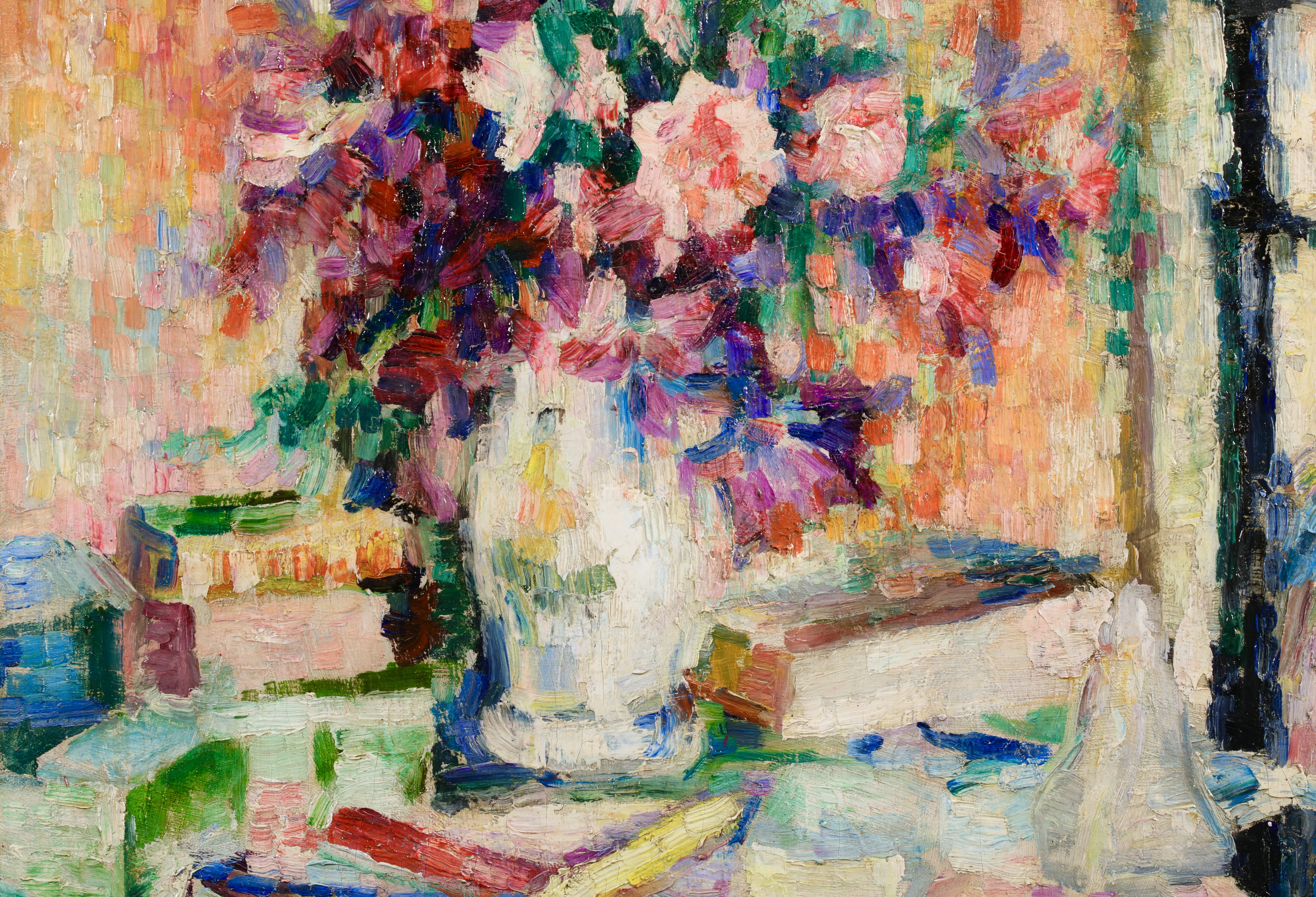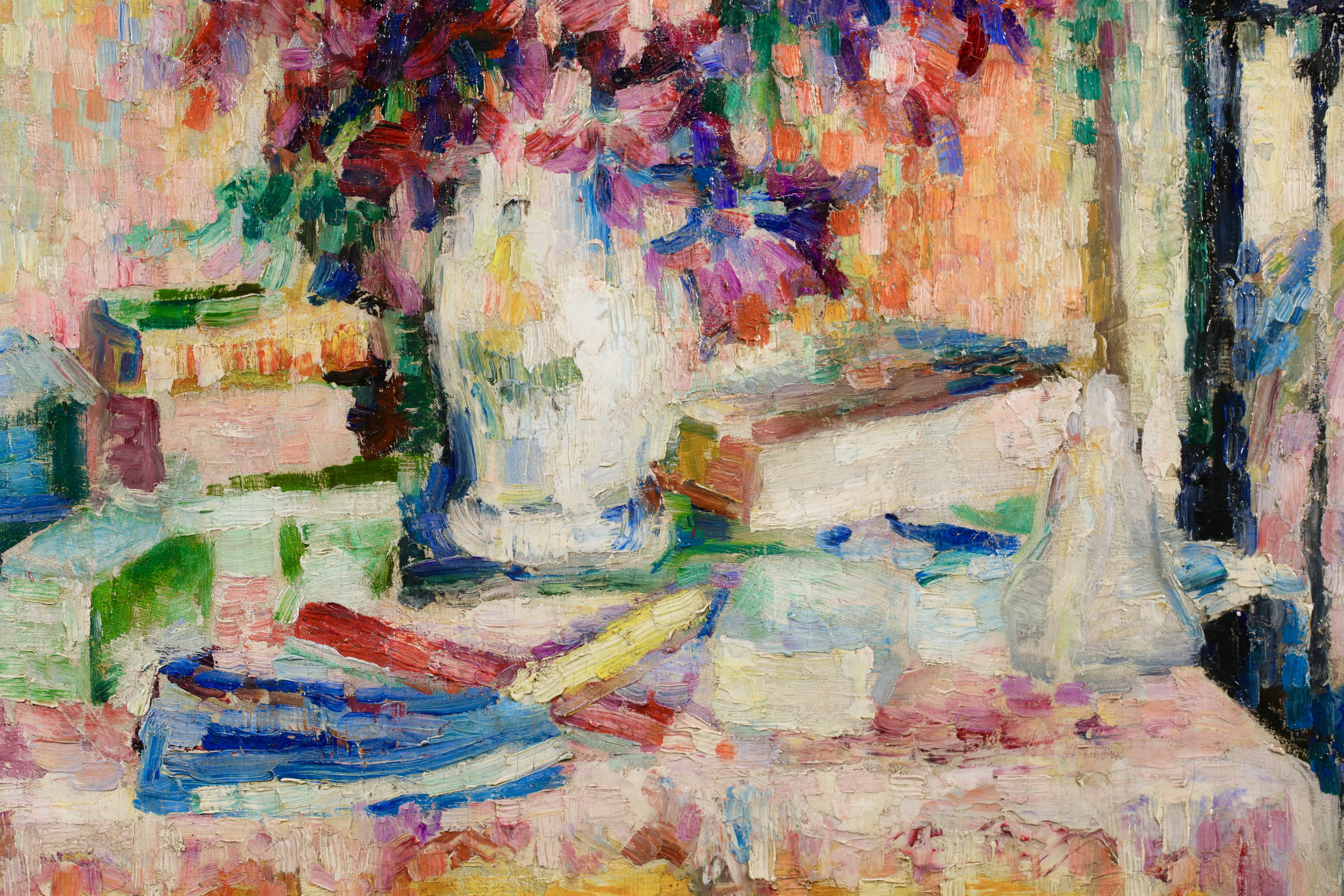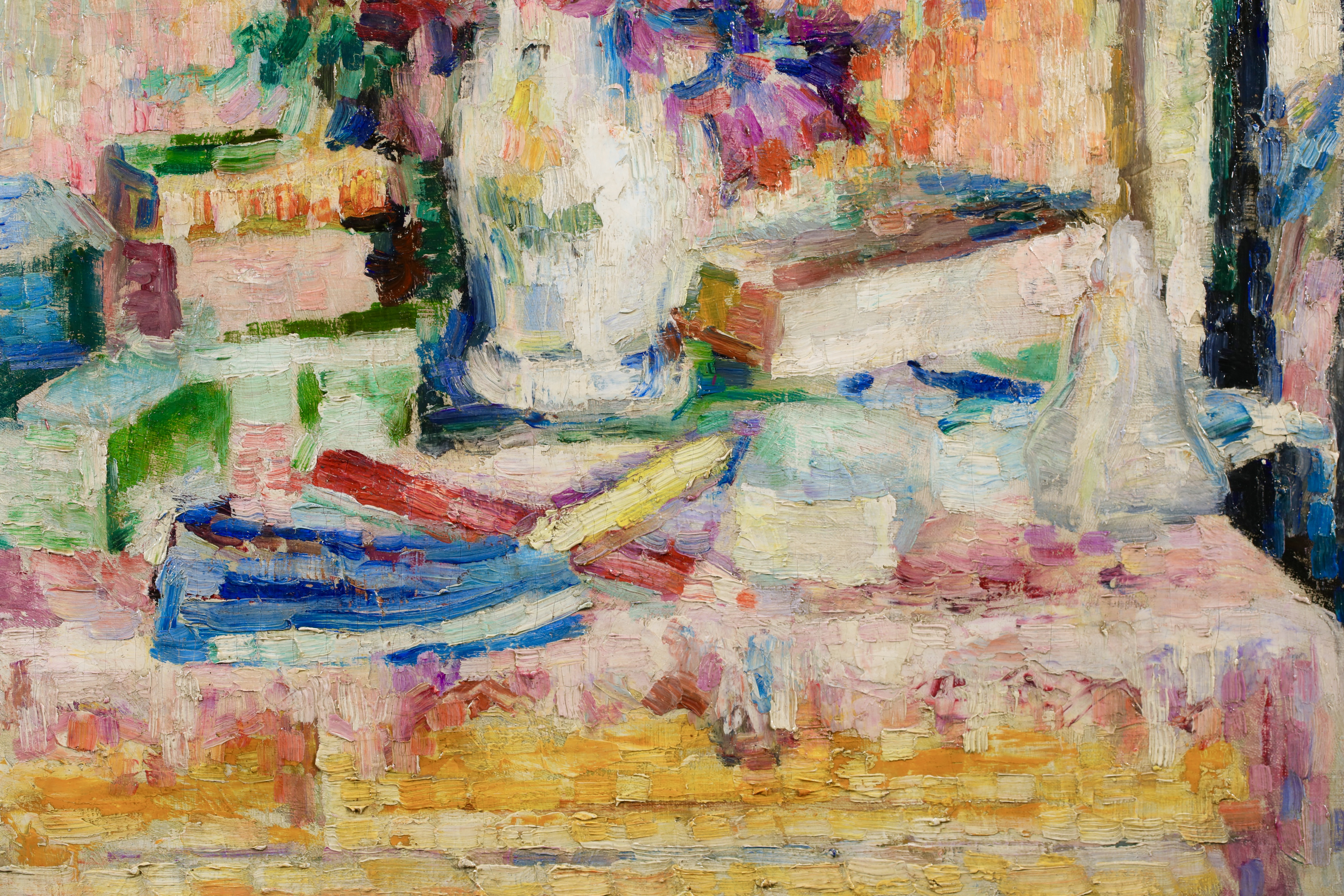 Lucie Cousturier first exhibited at the Salon des Artistes Indépendants in 1901, and was to exhibit three to eight oils there every year until 1920. She exhibited at other exhibitions in Brussels and Berlin, and at the end of 1906 gave her first solo exhibition in Paris. By 1907 she had a perfect mastery of technique and color. In her later paintings, particularly outdoors scenes, her style became increasingly fluid and free, with warm and lively colors. She exhibited with Signac regularly and had a two man show at the Galerie de Bruxelles with Signac in Brussels in 1923. Lucie also had an important writing career by writing articles and monographs about the major members of the emerging Neo-Impressionist movement. She is credited for being the first specialist writer of the movement.