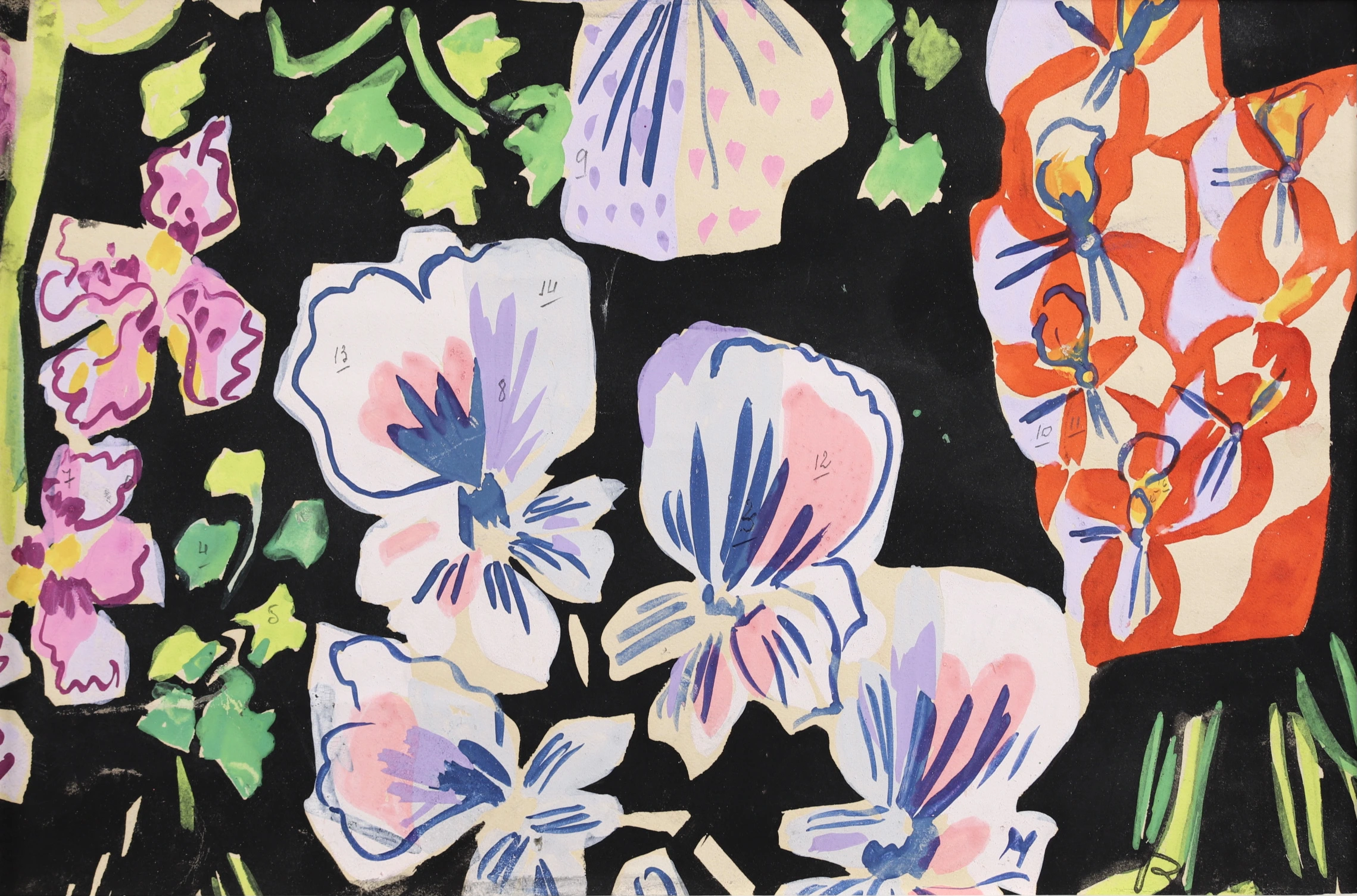Between 1940 and 1950, Dufy went on to develop what would prove to be one of the most important series of all, his Orchestras and Concerts, featuring large orchestras and chamber music trios, quartets and the like. He had assembled from 1930 innumerable sketches of Conservatory musicians, sketched from above during rehearsals when Dufy would typically sit behind the percussion section. Following his move to Perpignan, he painted nudes, clowns, landscapes and, not least, views of wheatfields recorded while staying with Roland Dorgelès in Montsaunes in the Haute-Garonne. He also started work on the extended series entitled Cargots Noirs (1948-1952) which, painted at the end of his career, appears in some respects to be a reprise of his early views of Ste-Adresse. In these Cargots noirs, as elsewhere in his work, Dufy was at pains to 'generate light from black'. In 1943, he painted a rejoinder to Auguste Renoir's Bal du Moulin de la Galette and a Beautiful Sunday (which Dufy himself considered to be his finest work). He designed sets in 1944 for Armand Salacrou's Les Fiancés du Havre (Betrothal in Le Havre), presented at the Comédie Française. In 1946 tapestries designed by Dufy in Madame Cuttoli's studio featured at the Exhibition of French Tapestry and in 1952 he produced stage sets for Jean Anouilh's Ring Around the Moon.