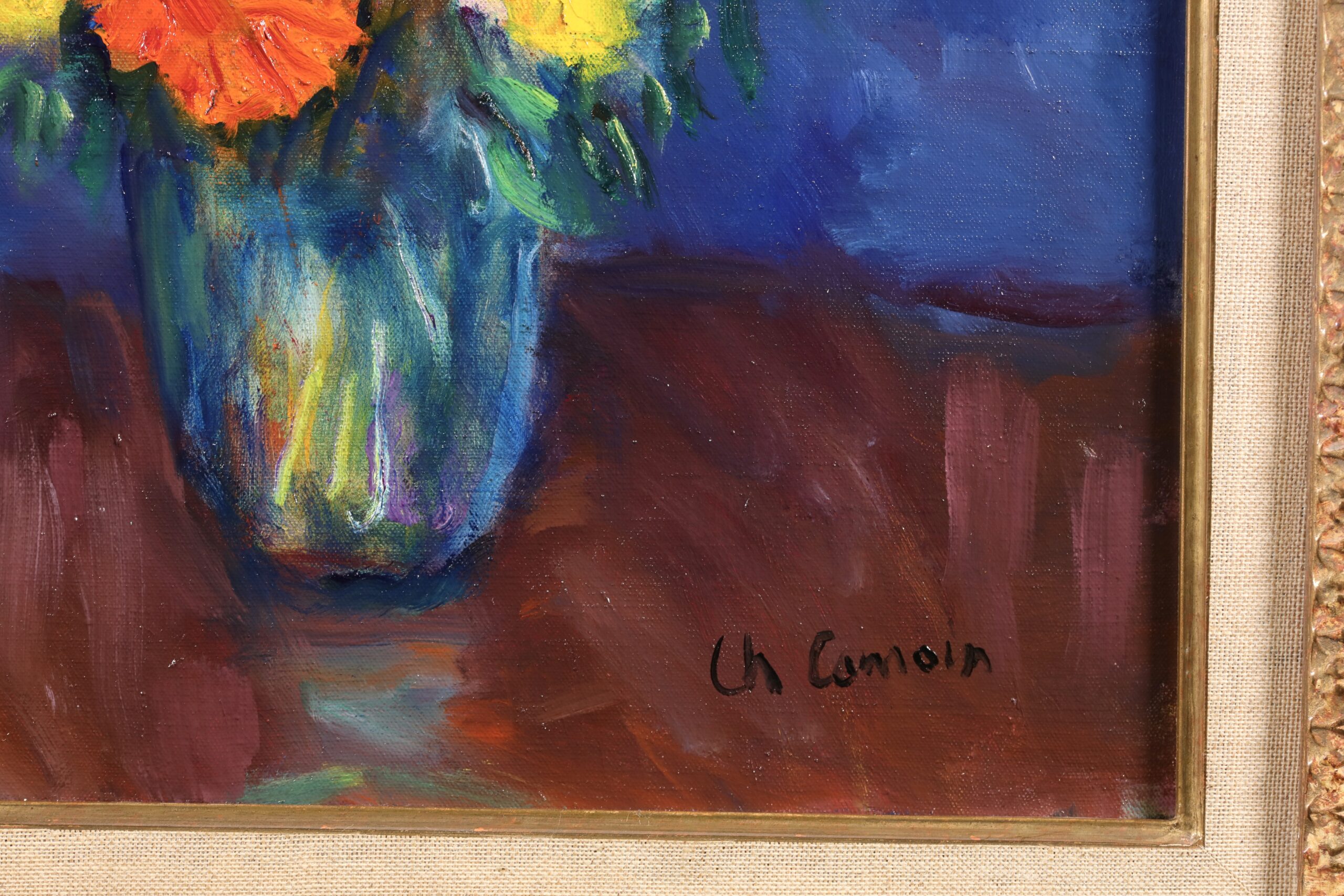 The following decade saw Camoin travelling extensively in the company of Marquet, visiting London, Frankfurt, Naples, Capri, Corsica, the Mediterranean coast, Tangier and Morocco (where he was accompanied by Matisse). In 1912, Camoin exhibited at the Galerie Kahnweiler in Paris and, in 1913, examples of his work featured at the now legendary Armory Show in New York City. In 1918, Camoin and Matisse travelled to Cagnes to visit Renoir; the meeting was to prove decisive because it signalled the end of Cézanne's influence on Camoin's work. In 1920, at the age of 41, Camoin married Charlotte Prost; their daughter Anne-Marie was born in 1933. Camoin worked latterly out of two studios, the one in Montmartre that he had occupied since 1944, and the other in St. Tropez. He was made an officer of the Légion d'Honneur that same year and in 1959 he was elected Commander of the Ordre des Arts et Lettres.