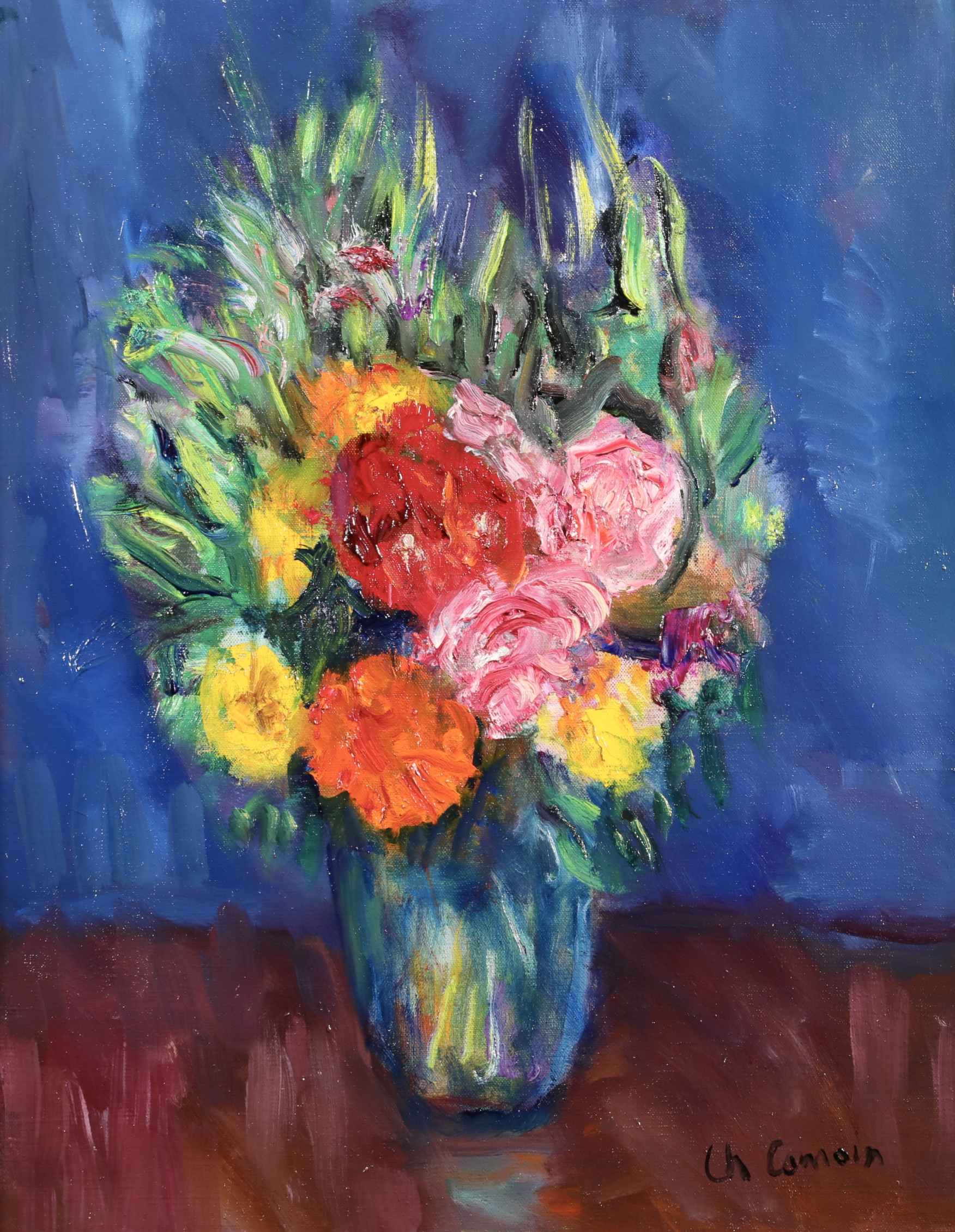 Charles Camoin was the son of a paint manufacturer in Marseilles who died when Charles was six years old. His mother travelled extensively, absenting herself for long periods at a time, and Camoin's studies suffered accordingly. At 16, he enrolled at a commercial college in Marseilles, but also attended courses at the École des Beaux-Arts, where he was awarded a first prize for drawing and composition. In 1896, at the age of 17 (or in 1898 according to other, possibly more reliable sources), Camoin moved to Paris where he was admitted to Gustave Moreau's class at the École des Beaux-Arts, shortly before the latter's death. He soon left on his travels in the company of Albert Marquet - no doubt following Moreau's advice to 'go and paint buses', his recommendation to the two artists to search out their subject matter on the streets and in the cabarets of Paris. During his short time in Moreau's class Camoin made a number of lasting friendships, notably with artists who would go on to pioneer Fauvism: Henry Manguin, Georges Roualt and, in particular, Jean Puy and Henri Matisse, with whom he exchanged letters on a regular basis.In 1900, Camoin did his military service, first in Arles, where he painted compositions inspired by Van Gogh motifs, then in 1902 in Aix, where he frequently met with Cézanne, with whom Camoin maintained a life-long correspondence and whose advice and counsel he cited repeatedly. In 1903, Camoin exhibited for the first time - at the Salon des Artistes Indépendants in Paris. The following year (1905), he met Claude Monet (at Cézanne's instigation and, appropriately perhaps, underneath Giverny's Nympheas); he then held his first solo exhibition at the Berthe Weill Gallery in Paris. In 1905, Camoin exhibited alongside the 'Animals' at that year's Salon d'Automne, although it must be said that he did not share the graphic and chromatic violence of a Matisse or a Derain, preferring as he did to adhere to a more Cézanne-like approach.