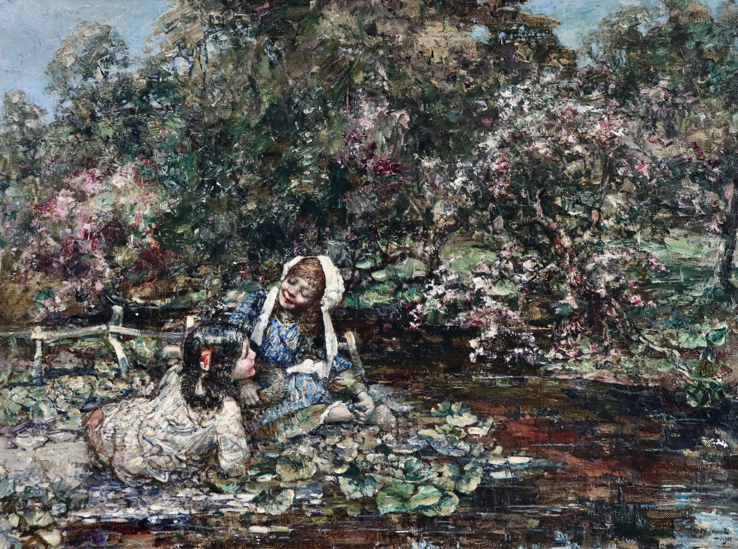 Edward Atkinson Hornel paintings are mainly of landscapes and flora, with children. His speciality was executing young girls in idyllic landscapes often surrounded by flora and fauna and occasionally with butterflies. His work is highly collected and he is considered as one of the most important "Glasgow Boys". Hornel's paintings are incredibly unique and identifiable from afar.