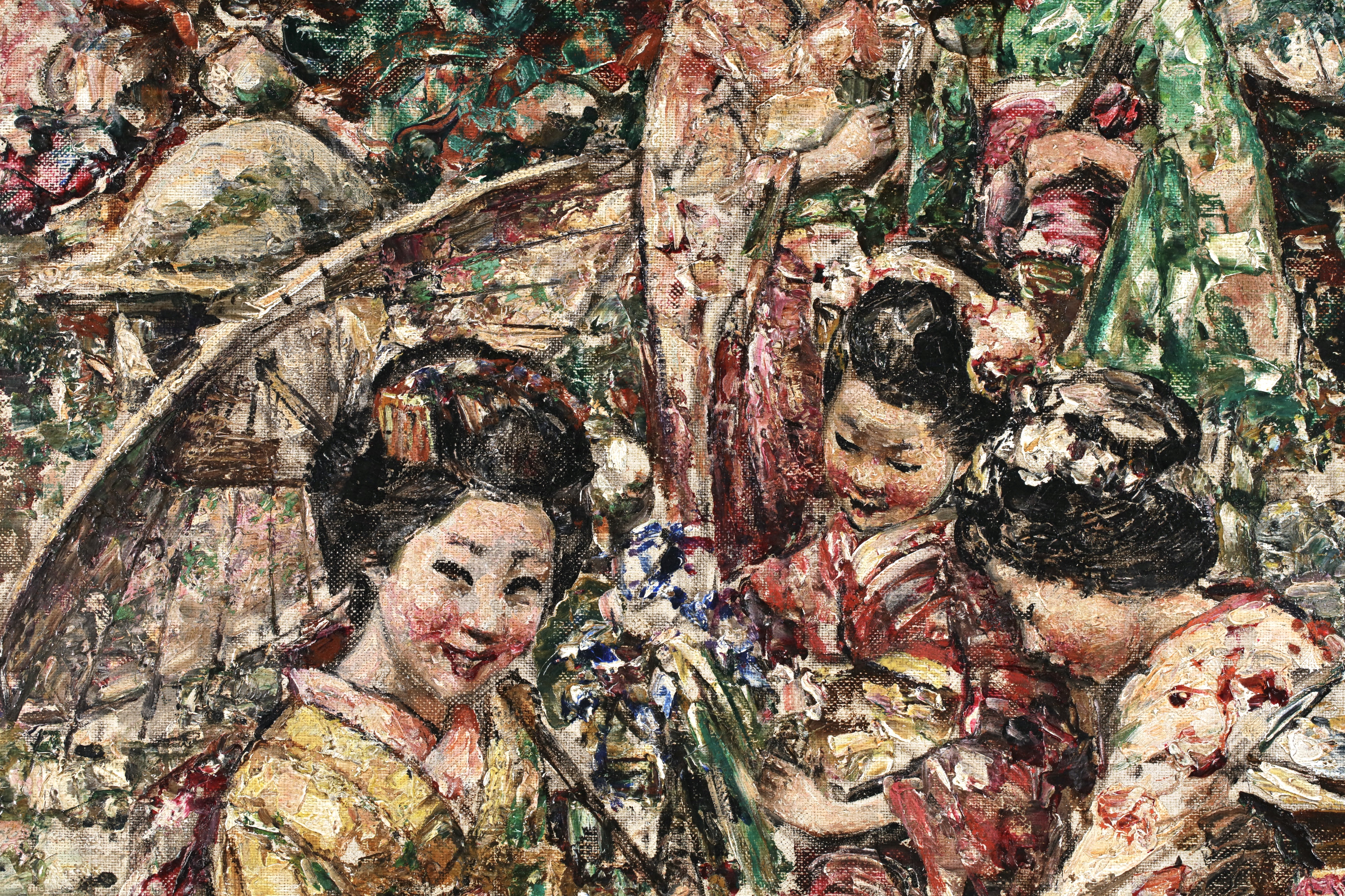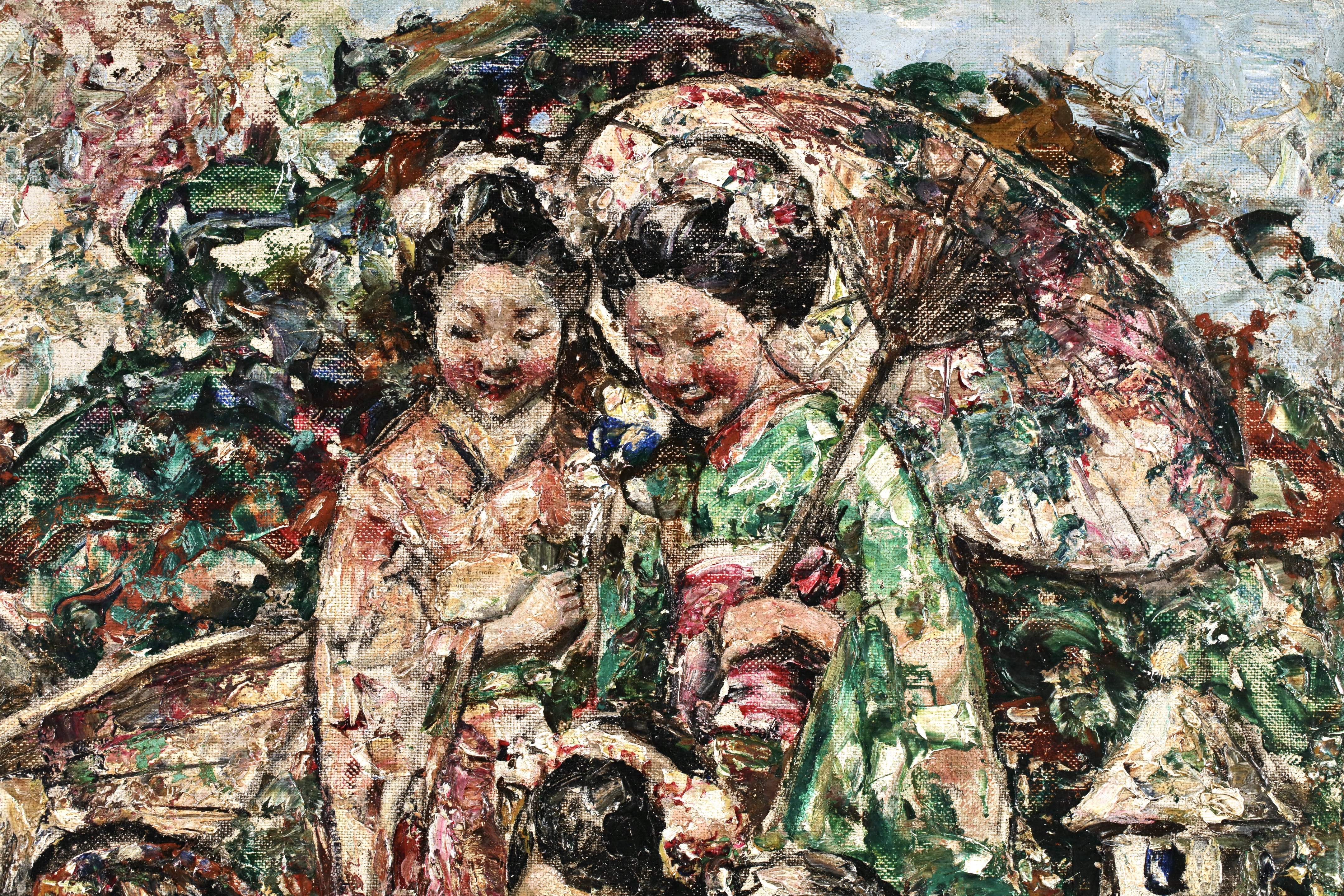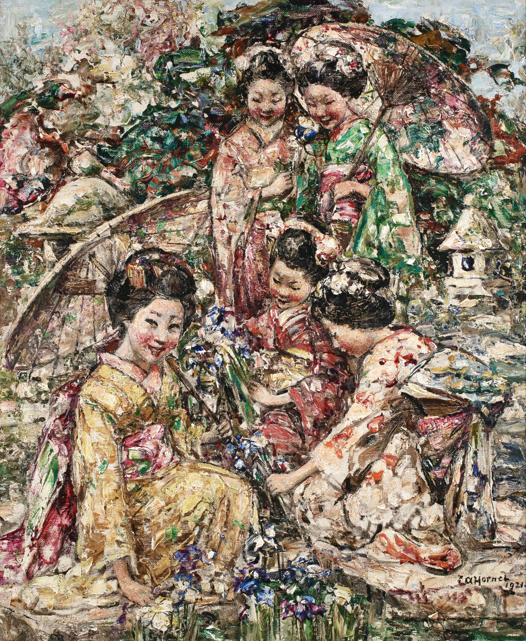 Edward Atkinson Hornel's father, a Scot, brought him to Scotland from Australia in 1866. He began to study in Edinburgh in 1881, but two years later he left to work in Antwerp for two years with Verlat. He returned to Scotland in 1885. He travelled to Japan in 1893 and 1894, then settled in Kirkcudbright, Scotland. He first exhibited at the Edinburgh Exhibition in 1883, and also showed his work at the Grosvenor Gallery in London in 1890. He was a member of the International Society of Painters and Engravers and an associate member of the New Gallery.