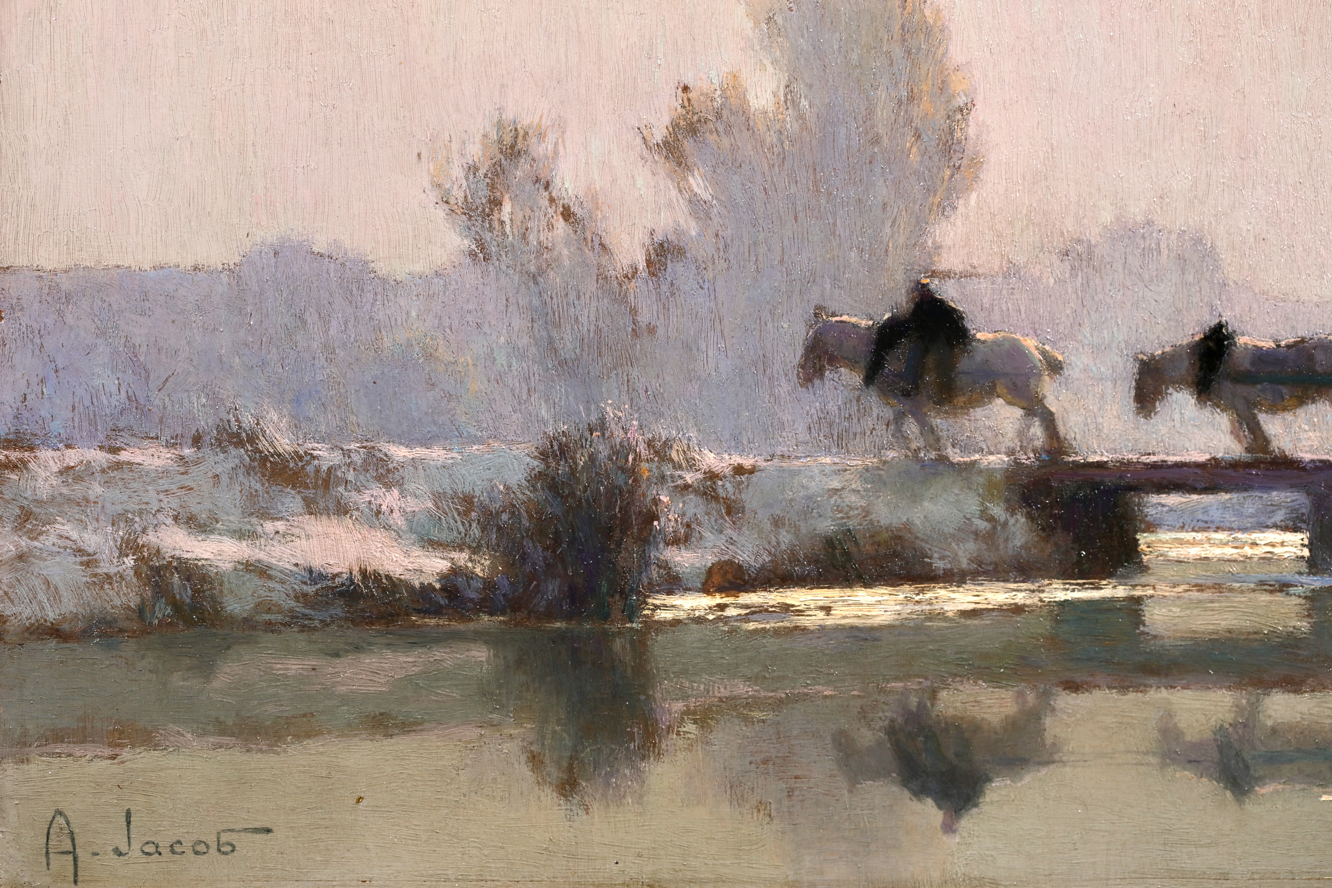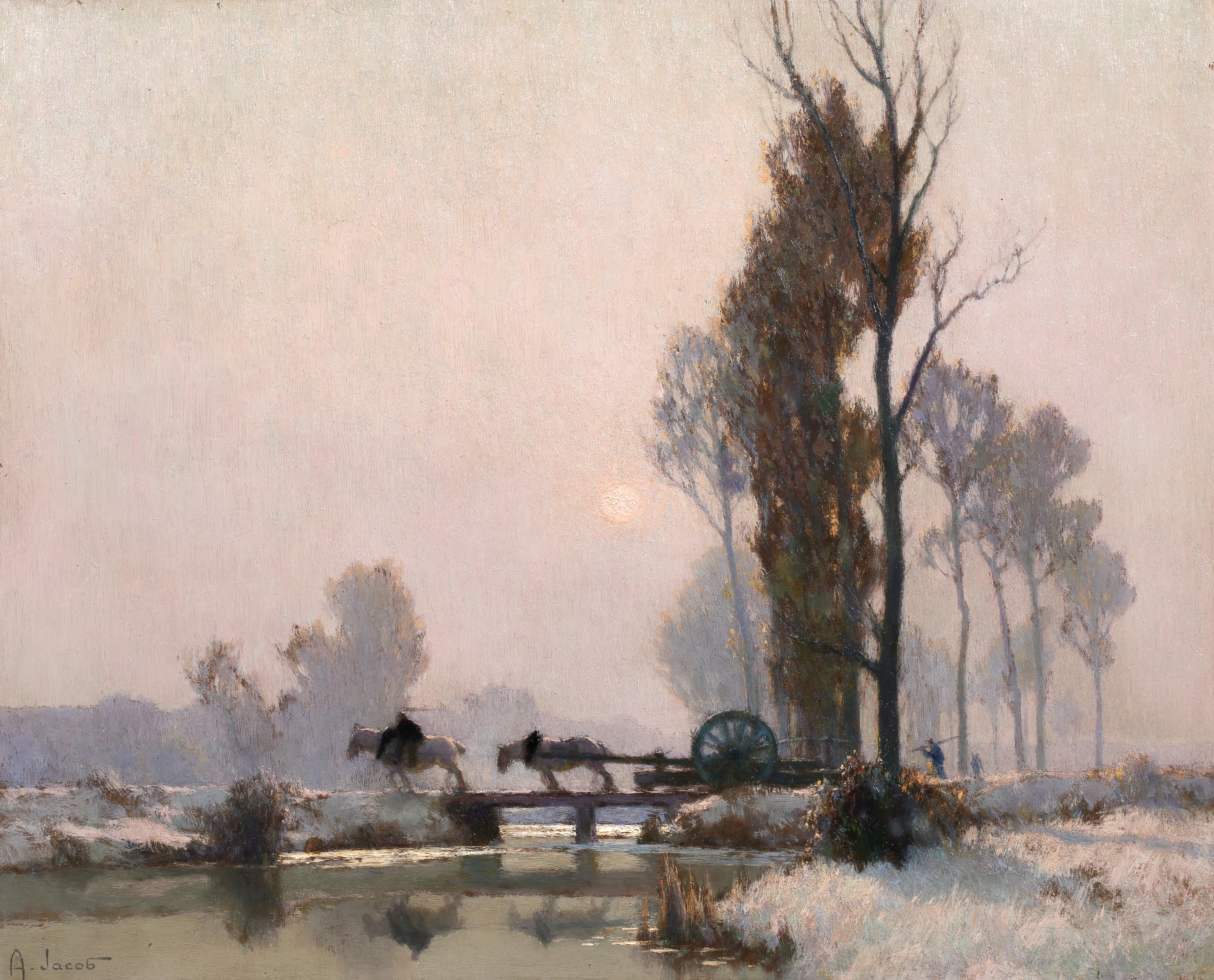Jacob was a pupil of Eugène Claude. He was noted for his effects evoking the light of dawn and dusk. From 1899, he exhibited in Paris at the Salon des Artistes Français, of which he became a member in 1902. He received an honourable mention in 1908, a gold medal hors concours in 1914 and a gold medal at the Exposition Internationale in 1937. He exhibited there until 1950. He also showed at the Salon d'Hiver, the Salon des Aquarellistes, as well as in private galleries.
