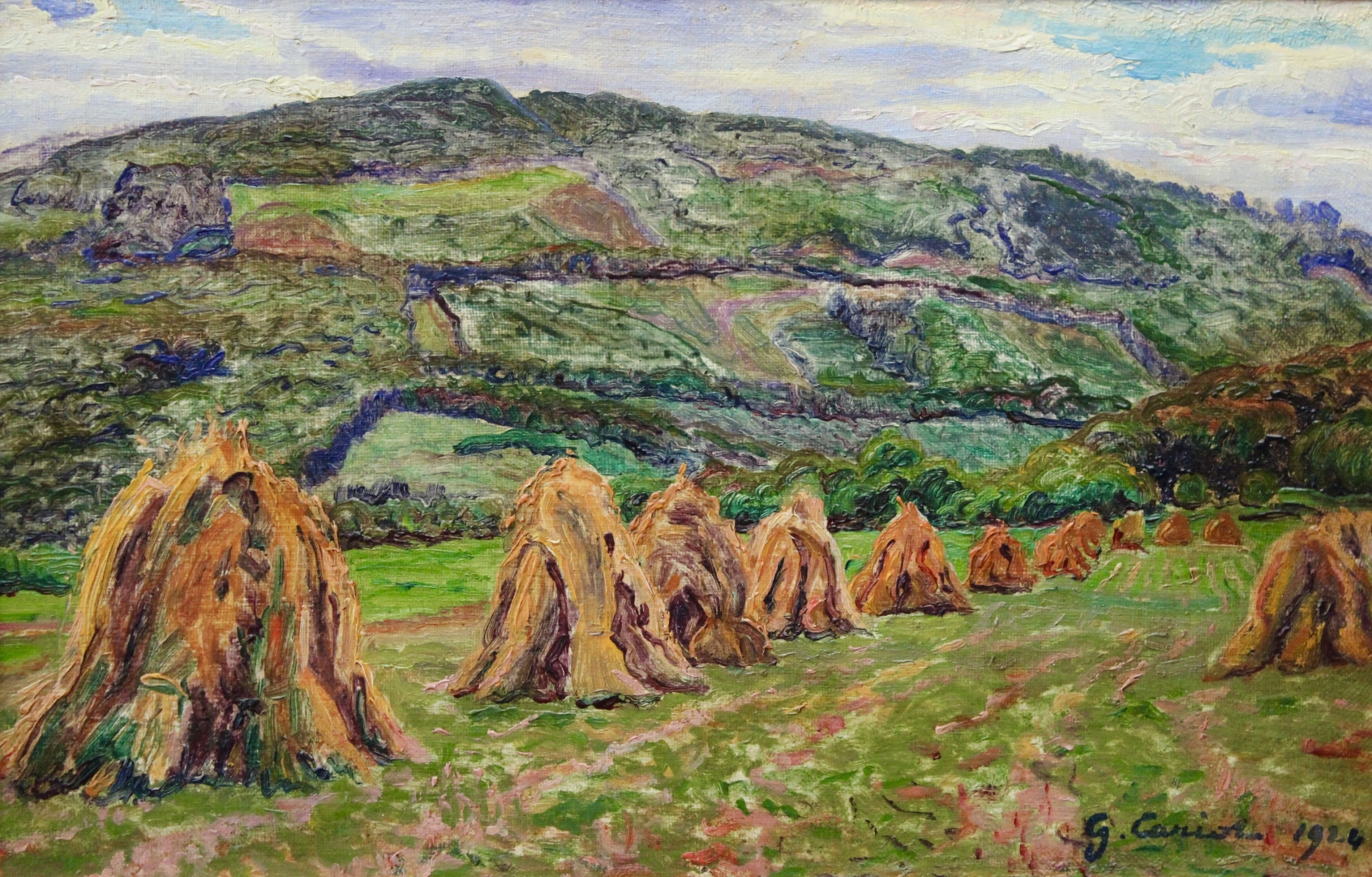 Gustave Cariot was initially attracted to the tonalities of pointillism but his enthusiasm for the technique was short-lived. Instead, he developed a highly personal and unusual technique that imparted a powerful luminosity to his work as a whole. He was however prepared to abandon this technique on occasion in the interests of painting delicate landscapes. He painted a large number of landscapes, many of them featuring the Rhineland. His last 'suite' of paintings was devoted to the River Seine in all its different seasonal aspects.