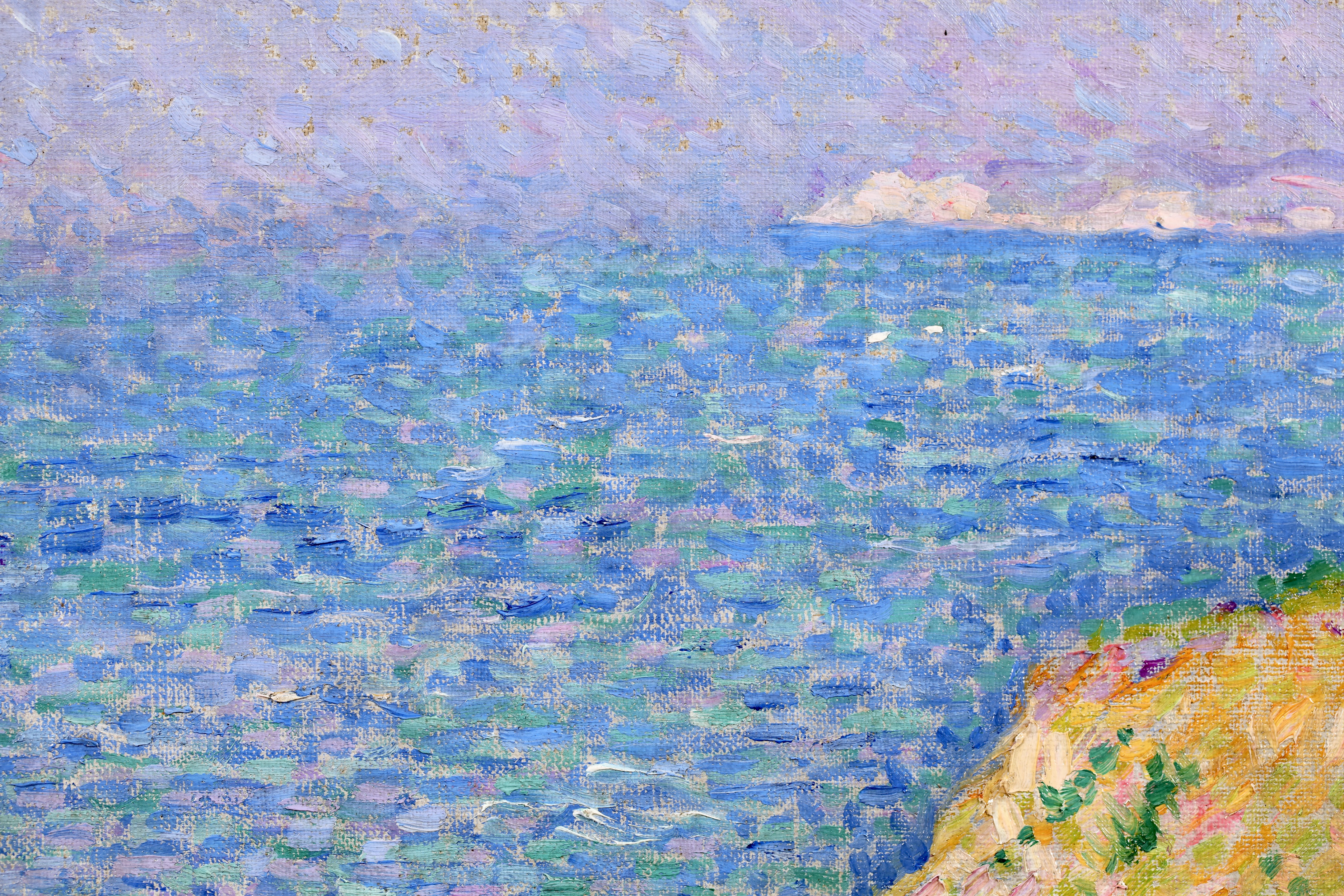 In 1898, he left Brussels and settled in Paris, where he moved in Symbolist literary circles. His wife - 'Madame Théo' or 'The Little Lady' - played an important role in the life of André Gide. In 1903, van Rysselberghe painted his celebrated Reading, where a large number of writers are depicted in a group surrounding Verhaeren, including Gide, Maeterlinck and Fénéon. He continued to paint essentially in the Neo-Impressionist manner, using visual effects achieved by juxtaposed patches of colour, with a predominance of violets, mauves and blues. While residing at St-Clair in Provence, however, he felt a need for a greater repertoire in terms of technique and colour. He duly abandoned the strict tenets of Neo-Impressionism and began painting in the Fauvist manner, using more intense colours in his seascapes and bathing scenes, where the female bathers' bodies are fleshed out by the strong colours of sea and sun.