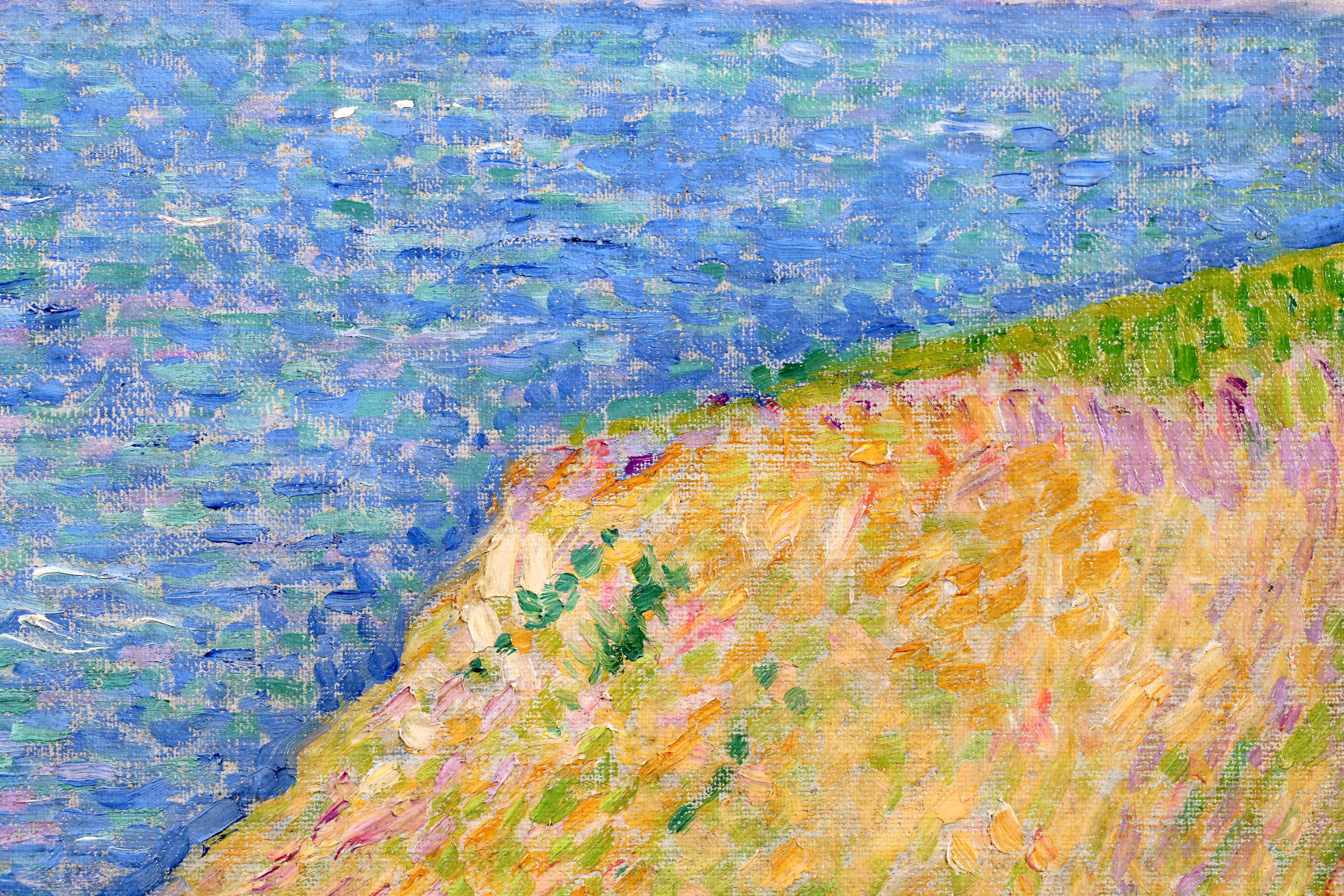 "Côte d’Opale is an exquisite little picture painted around 1900 by the artist, who was probably on holiday at the home of his friends Laure and Georges Flé, with whom he had a room and from where he travelled up and down the coast, working tirelessly to produce some very fine portraits and landscapes of the coast or town (Le port de Boulogne or Champs de courses à Boulogne, for example), with or without movement (think of the well-known painting La promenade, showing women walking on the beach). Côte d’Opale was rediscovered in a collection in Brussels while I was preparing the artist’s retrospective at Bozar Brussels and Gemeentemuseum The Hague (2006)."