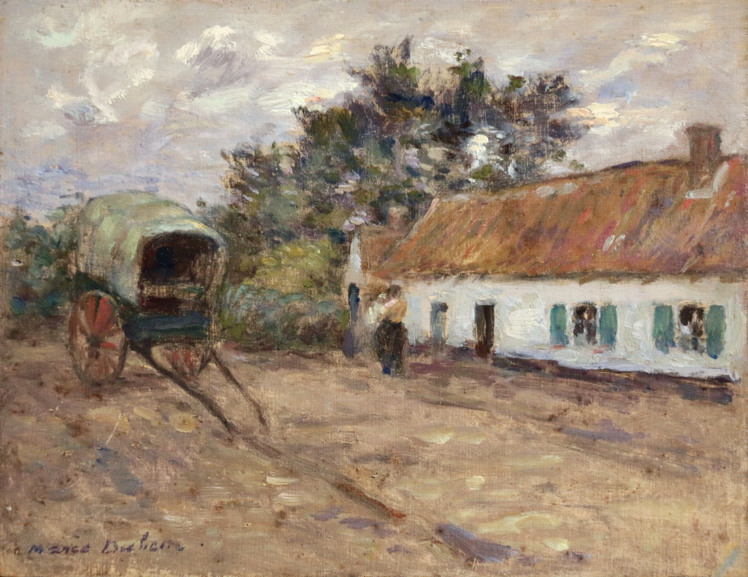 Marie Duhem's parents ran a lace factory. From her childhood, she became familiar with the work of model designers. She becomes the student of the painter Adrien Demont, husband of the painter Virginie Demont-Breton. It was in their Wissant workshop that she met, in 1889, Henri Duhem. Eleven years older than her a passionate advocate of painting. They were married in 1890 and, the following year, she gave birth to a boy, Rémy (1891-1915). It was at this time they formed the group of Wissant (still called School of Wissant) centering around the Demont-Breton, each summer for several years, the Duhems, installed in their country house in Camiers worked with a whole group of friends in the countryside of Boulogne and the coastline of the Opal Coast. Among the most assiduous are Georges Maroniez, Francis Tattegrain, Fernand Stievenart or Felix Planquette.
