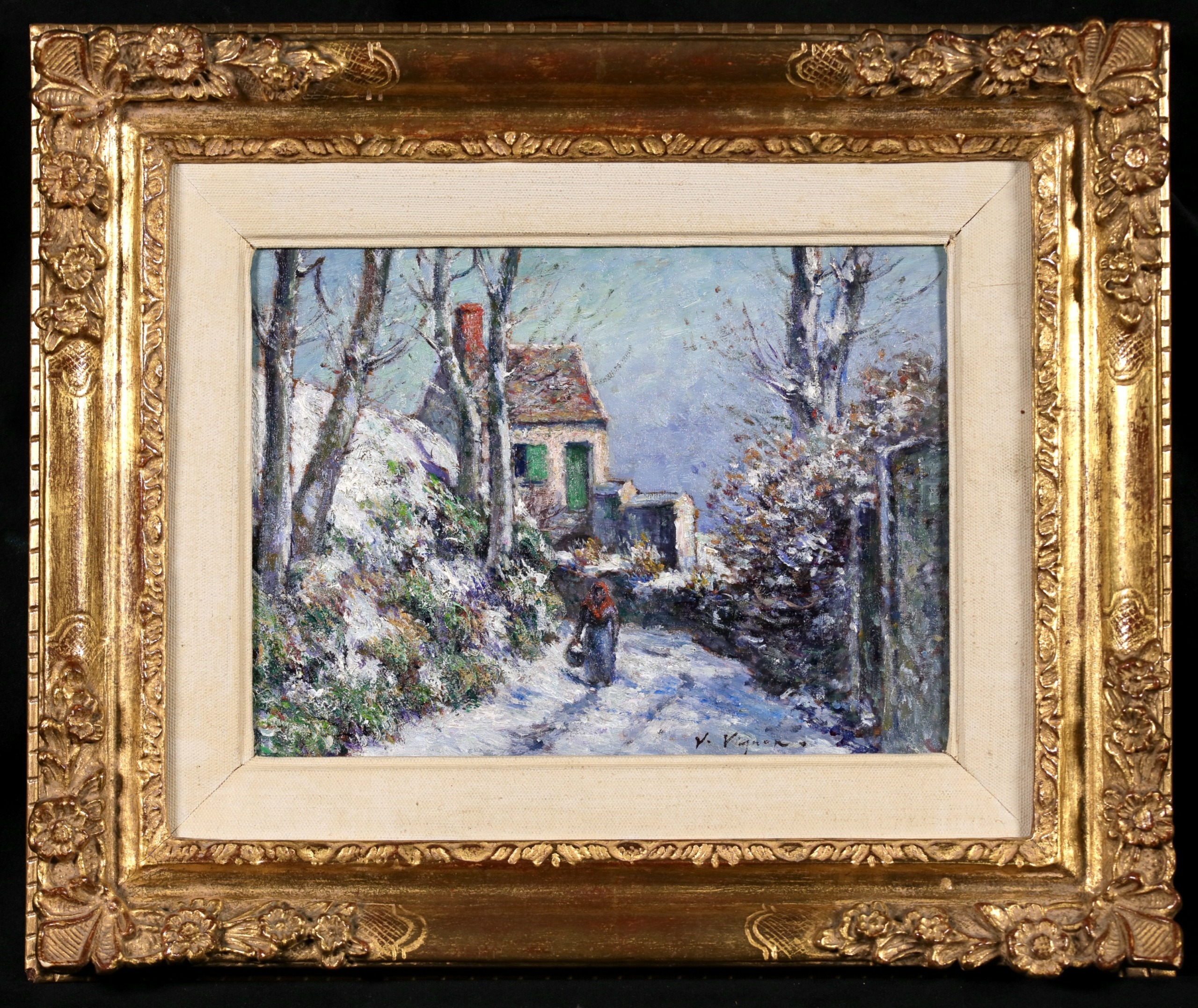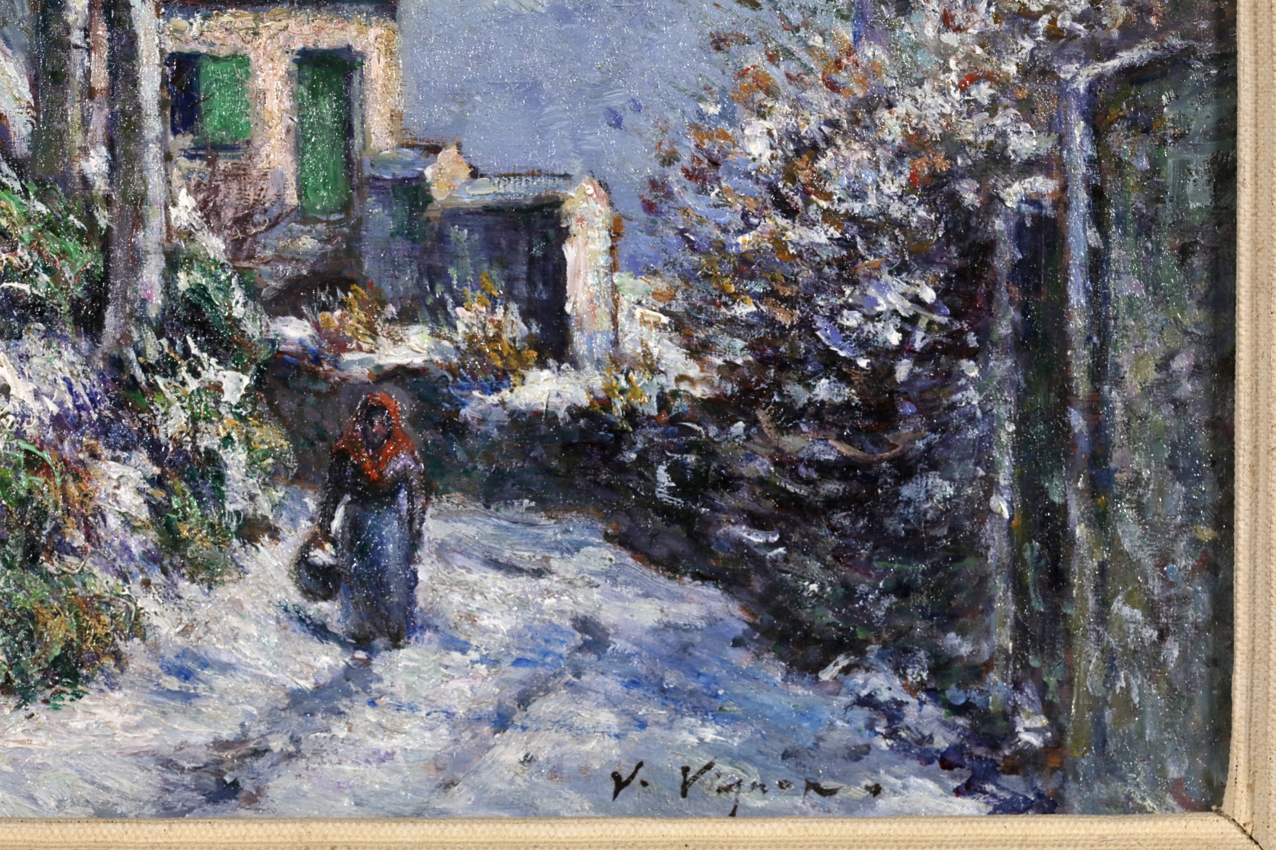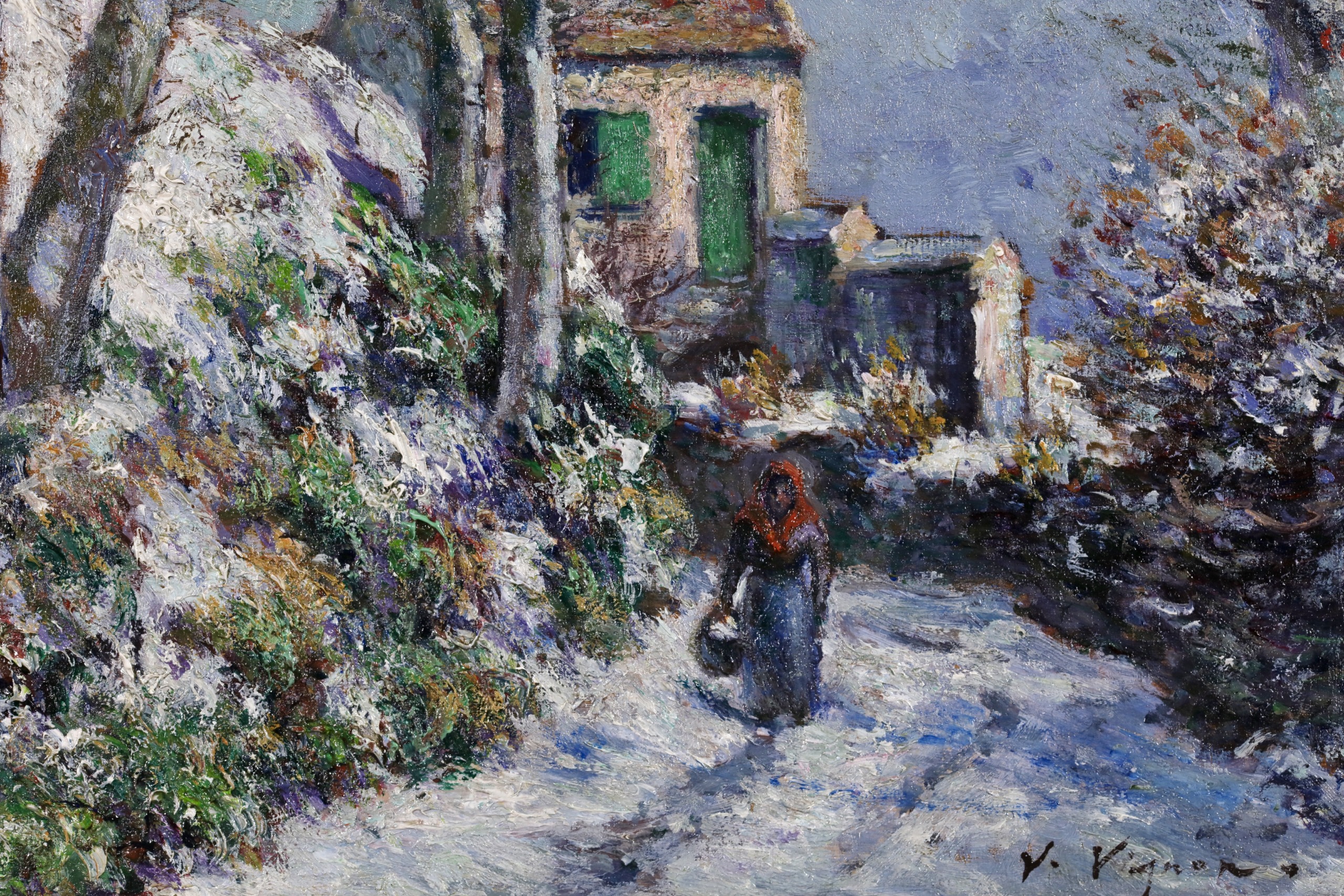 Already afflicted by a heart condition and serious vision problems in the late 1880s, he never really had the chance to evolve into post-impressionism, and at the end of the 1890s he started to lose his sight. In 1900, Dr. Georges Viau, an oral surgeon who was an enthusiastic art collector, helped Vignon to get his works displayed at the Exposition Universelle. Three years later, Pierre-Auguste Renoir and Paul Durand-Ruel helped organize a retrospective of his work. After his death, Renoir and Julie Manet-Rouart (the daughter of Berthe Morisot) organized another exhibition. Among the others, other posthumous solo exhibitions took place in 1921 at the Bernheim-Jeune Gallery, 1923 at the Durant-Ruel Gallery in New York, and 1938 at Huinck & Scherjon in Amsterdam.