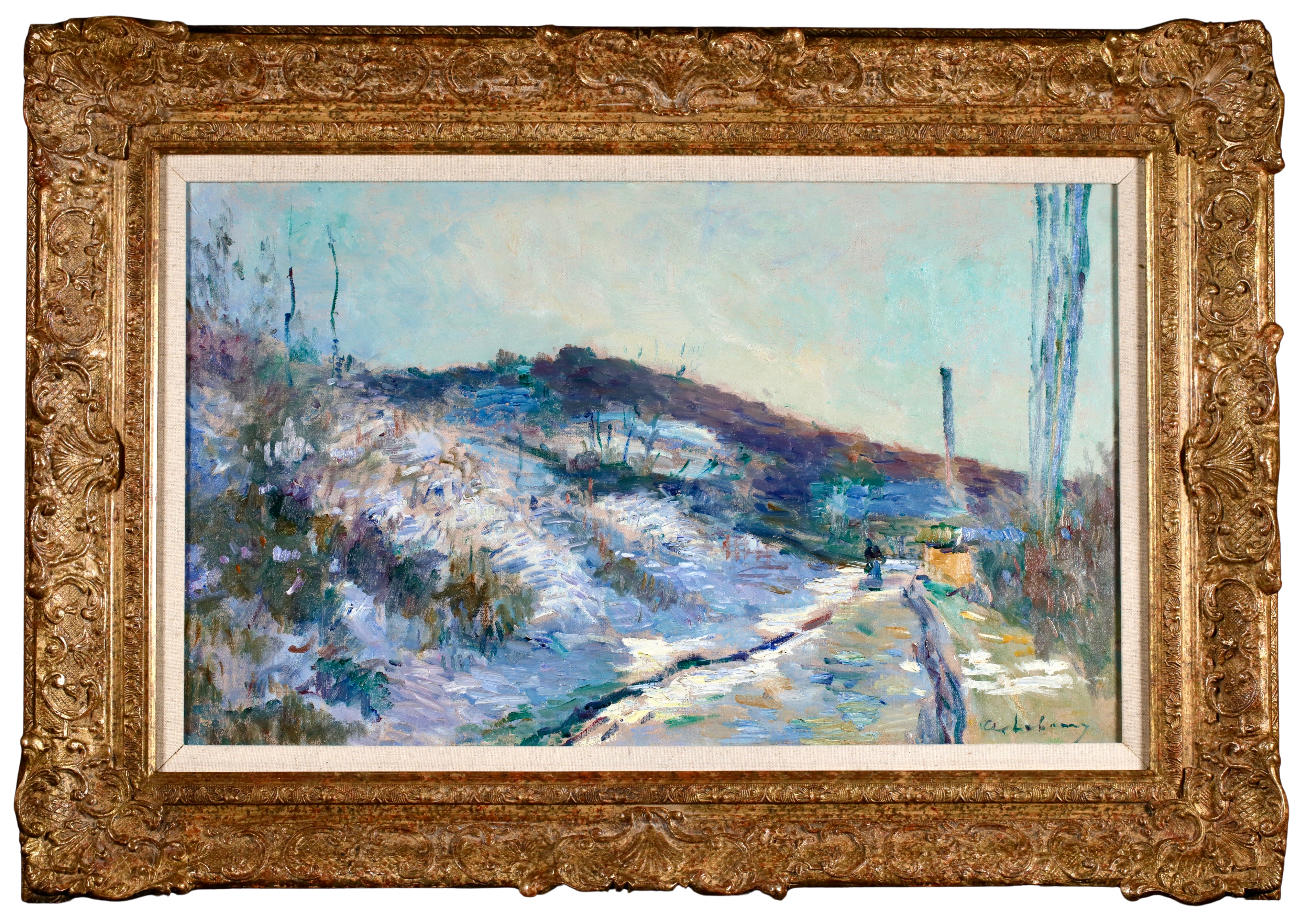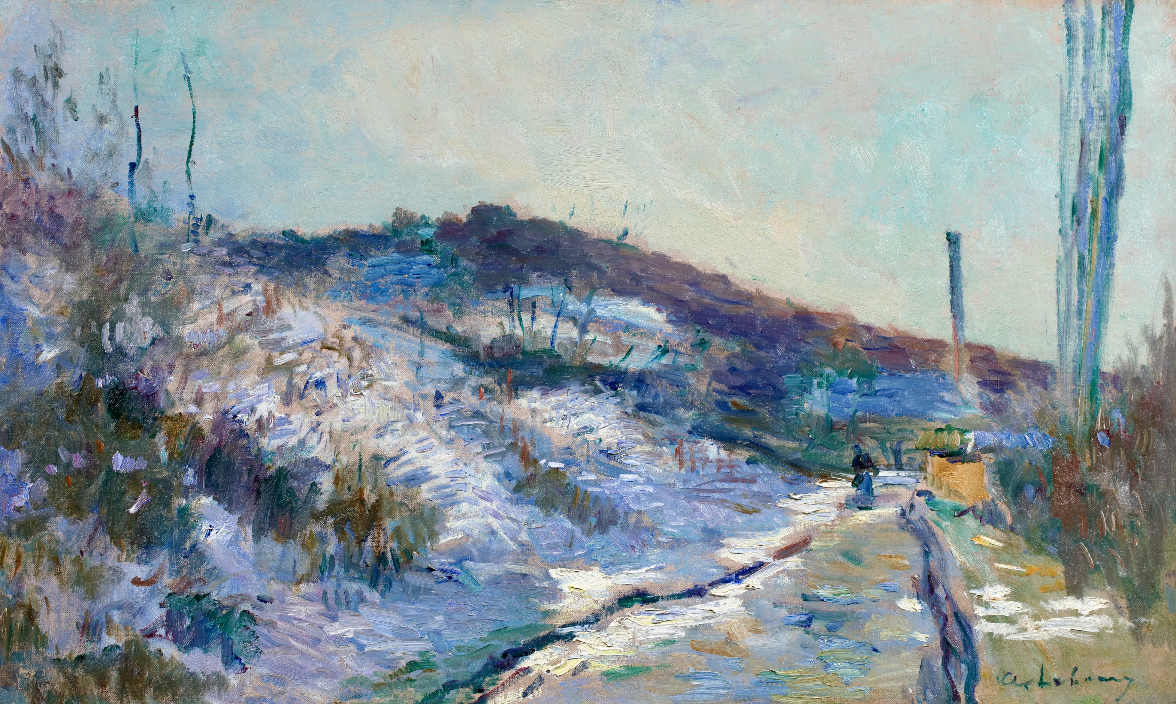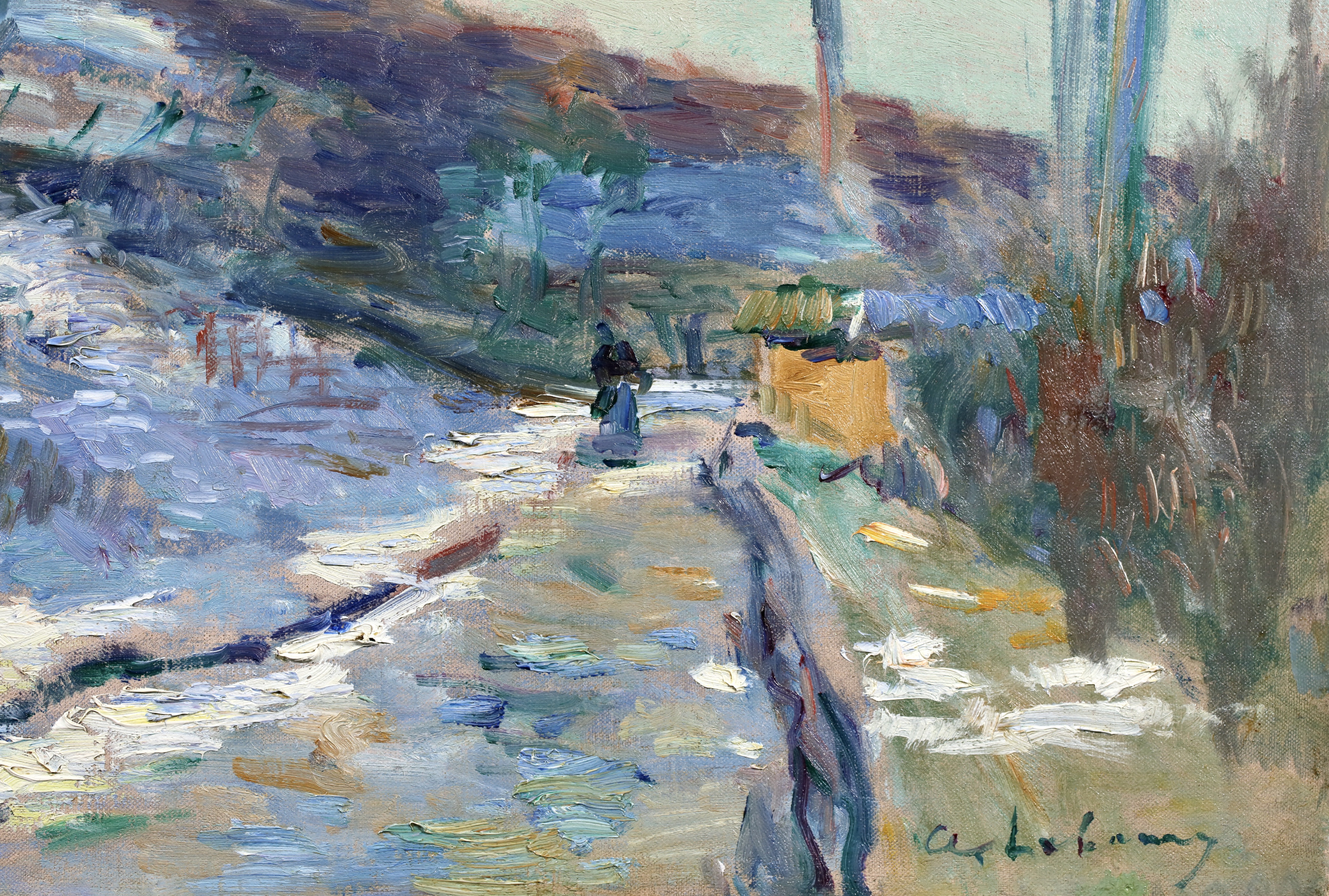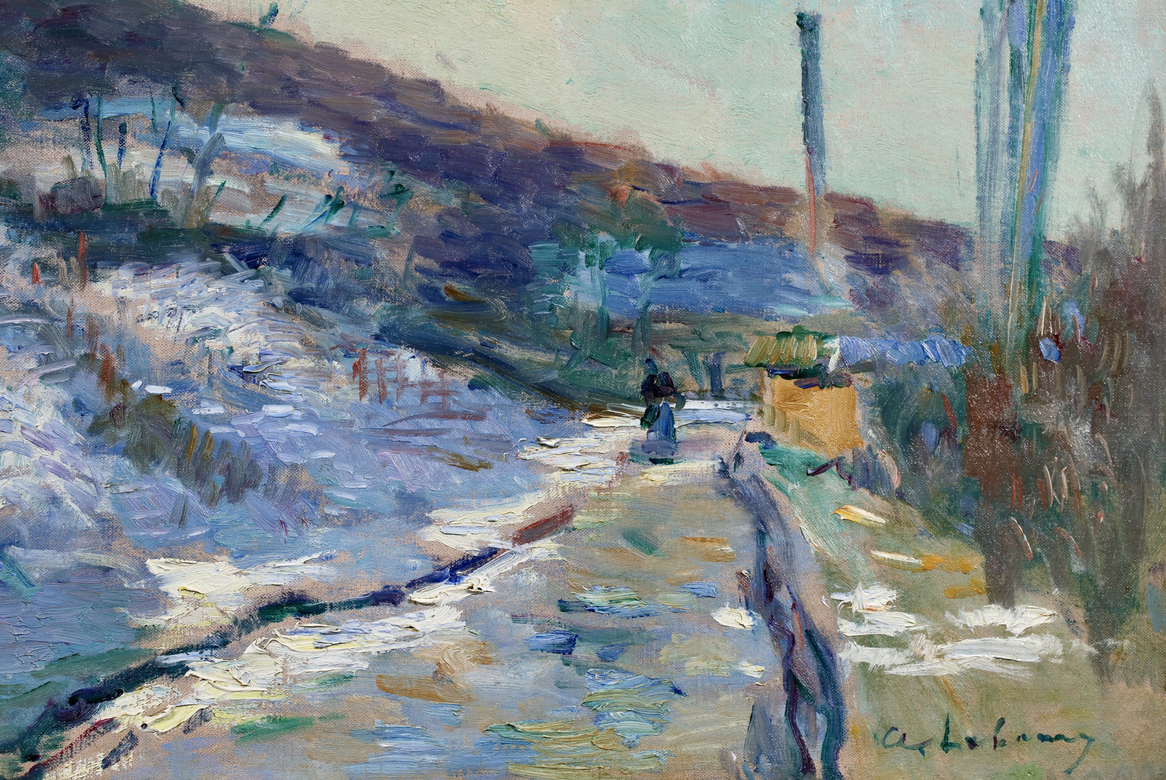 Albert Lebourg became an associate member of the Société Nationale des Beaux-Arts in 1894. In 1903, he was made Chevalier of the Légion d'Honneur after exhibiting Côte Ste-Catherine, Snow Effects in Hanoi. Primarily a landscape artist, Lebourg sought to harmonise light variations in his representation of riverbanks, snowscapes and sunsets.He took part in the Impressionists' group exhibitions in 1879 and 1880 before showing Morning in Dieppe at the Salon des Artistes Français in 1883 and Meadow on the Bank of the Allier there in 1886. He showed a great many works in solo exhibitions in Paris between 1896 and 1903 and regularly participated in the Salons de la Société Nationale from 1891 to 1914. His most important exhibition took place in February 1918 with 216 paintings, 2 watercolours and 51 drawings.He figured posthumously in collective thematic exhibitions such as: 2003, Around Impressionism: Nineteen Painters from the School of Normandy (Autour de l'Impressionnisme: Dix-neuf Peintres de l'École Normande), Maison des Arts, Antony (Hauts-de-Seine); 2003, Painters from the Other Shore. Algiers 1830-1930 (Les Peintres de l'autre Rive. Alger 1830-1930), Musée de la Castre, Cannes; 2003, The School of Algiers (L'École d'Alger), Musée des Beaux-Arts, Bordeaux. Retrospectives of his work were organised in 1970 at the Galerie Jean-Paul Wick, Paris and in 2002, Albert Lebourg: an Impressionist Afloat (Albert Lebourg: un Impressionniste au Fil de l'Eau) at the Musée Fournaise, Chatou.