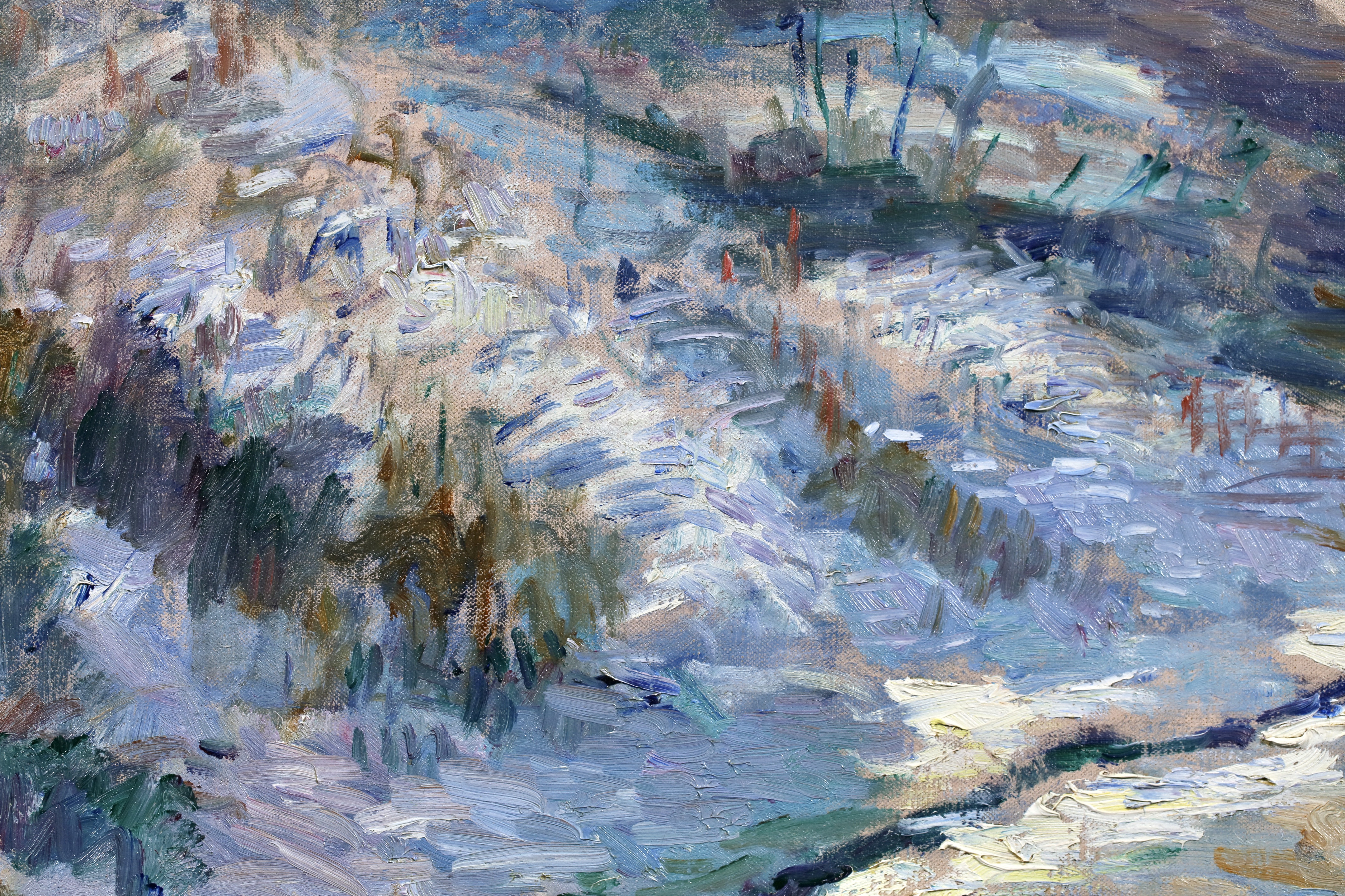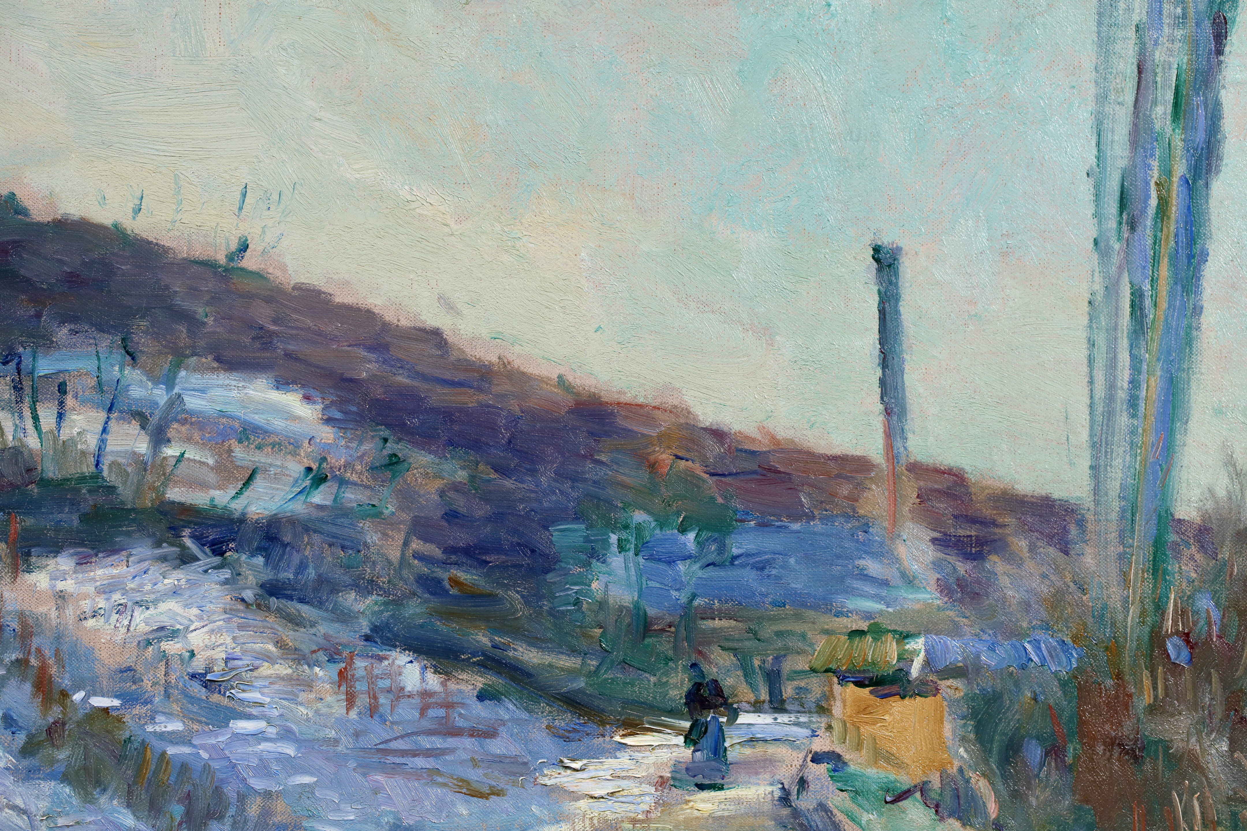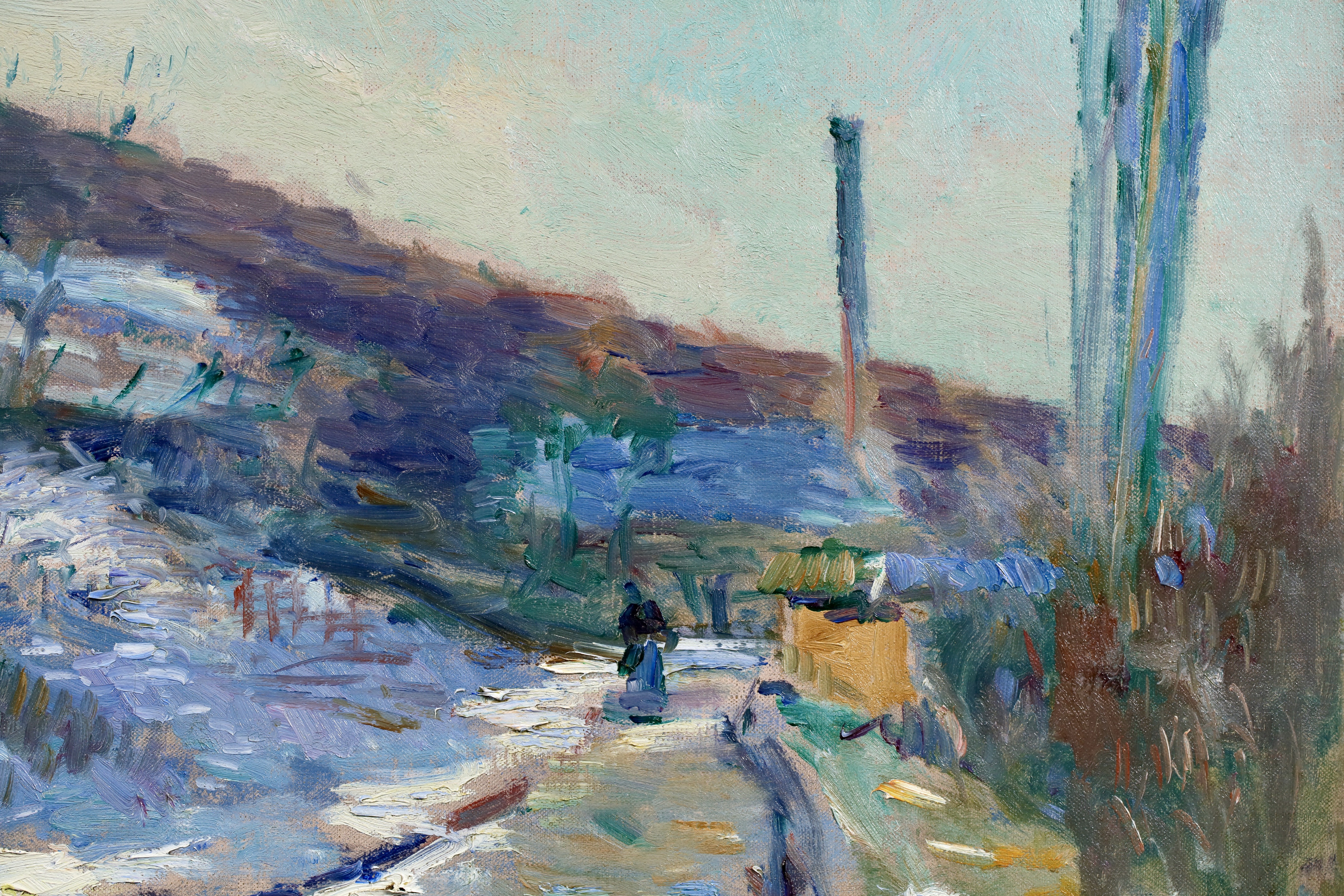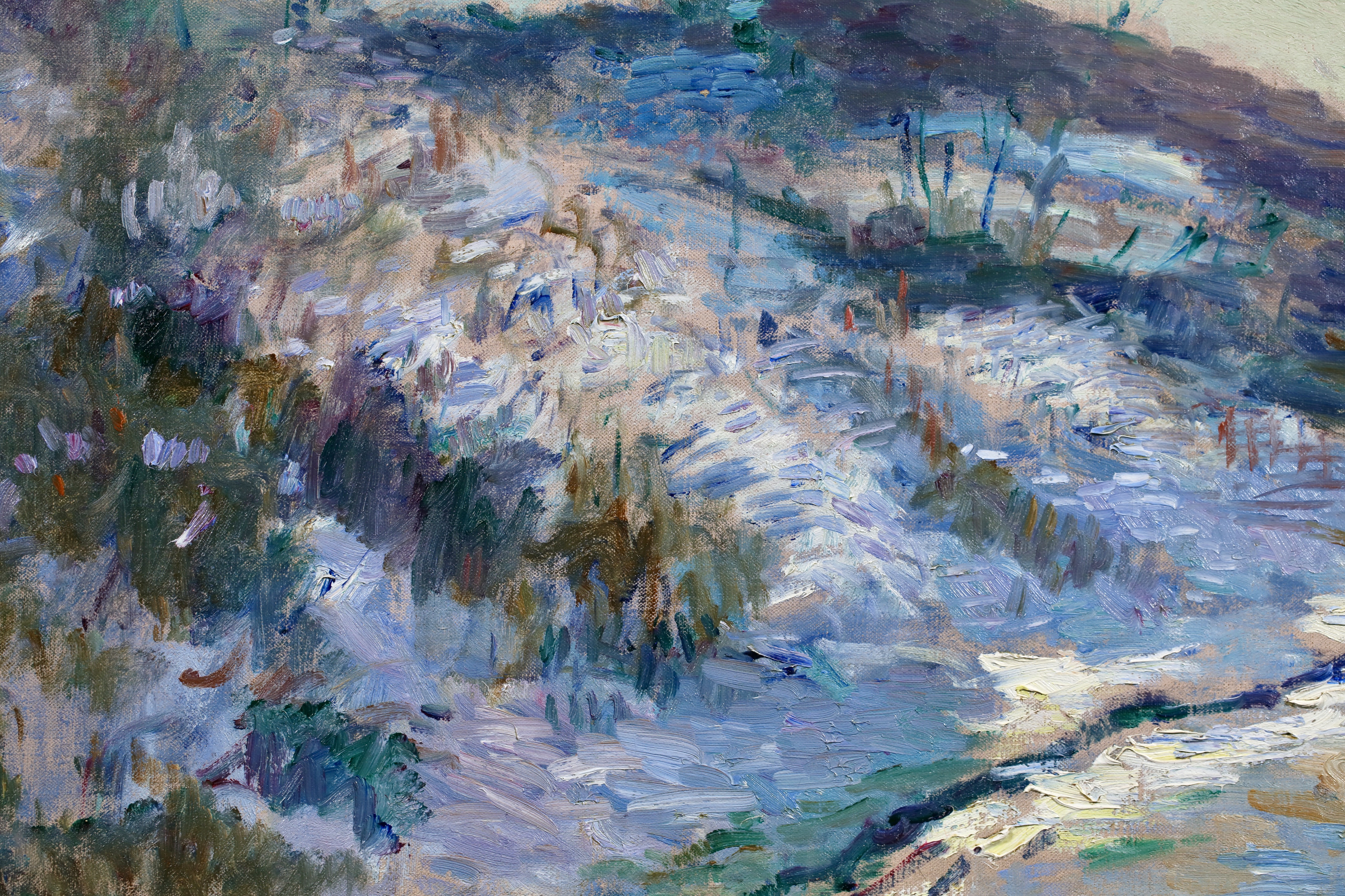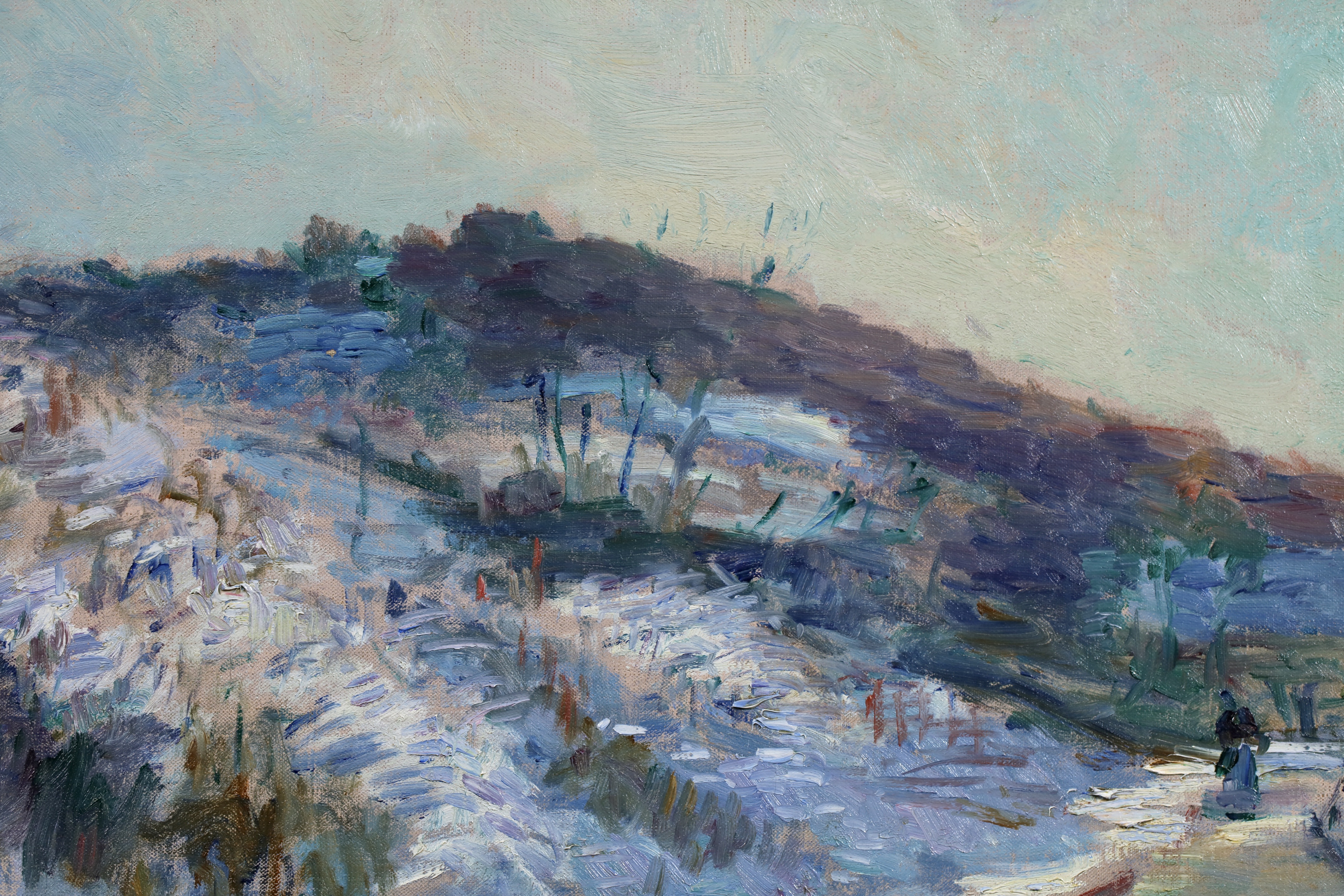 Albert Lebourg became an associate member of the Société Nationale des Beaux-Arts in 1894. In 1903, he was made Chevalier of the Légion d'Honneur after exhibiting Côte Ste-Catherine, Snow Effects in Hanoi. Primarily a landscape artist, Lebourg sought to harmonise light variations in his representation of riverbanks, snowscapes and sunsets.He took part in the Impressionists' group exhibitions in 1879 and 1880 before showing Morning in Dieppe at the Salon des Artistes Français in 1883 and Meadow on the Bank of the Allier there in 1886. He showed a great many works in solo exhibitions in Paris between 1896 and 1903 and regularly participated in the Salons de la Société Nationale from 1891 to 1914. His most important exhibition took place in February 1918 with 216 paintings, 2 watercolours and 51 drawings.He figured posthumously in collective thematic exhibitions such as: 2003, Around Impressionism: Nineteen Painters from the School of Normandy (Autour de l'Impressionnisme: Dix-neuf Peintres de l'École Normande), Maison des Arts, Antony (Hauts-de-Seine); 2003, Painters from the Other Shore. Algiers 1830-1930 (Les Peintres de l'autre Rive. Alger 1830-1930), Musée de la Castre, Cannes; 2003, The School of Algiers (L'École d'Alger), Musée des Beaux-Arts, Bordeaux. Retrospectives of his work were organised in 1970 at the Galerie Jean-Paul Wick, Paris and in 2002, Albert Lebourg: an Impressionist Afloat (Albert Lebourg: un Impressionniste au Fil de l'Eau) at the Musée Fournaise, Chatou.