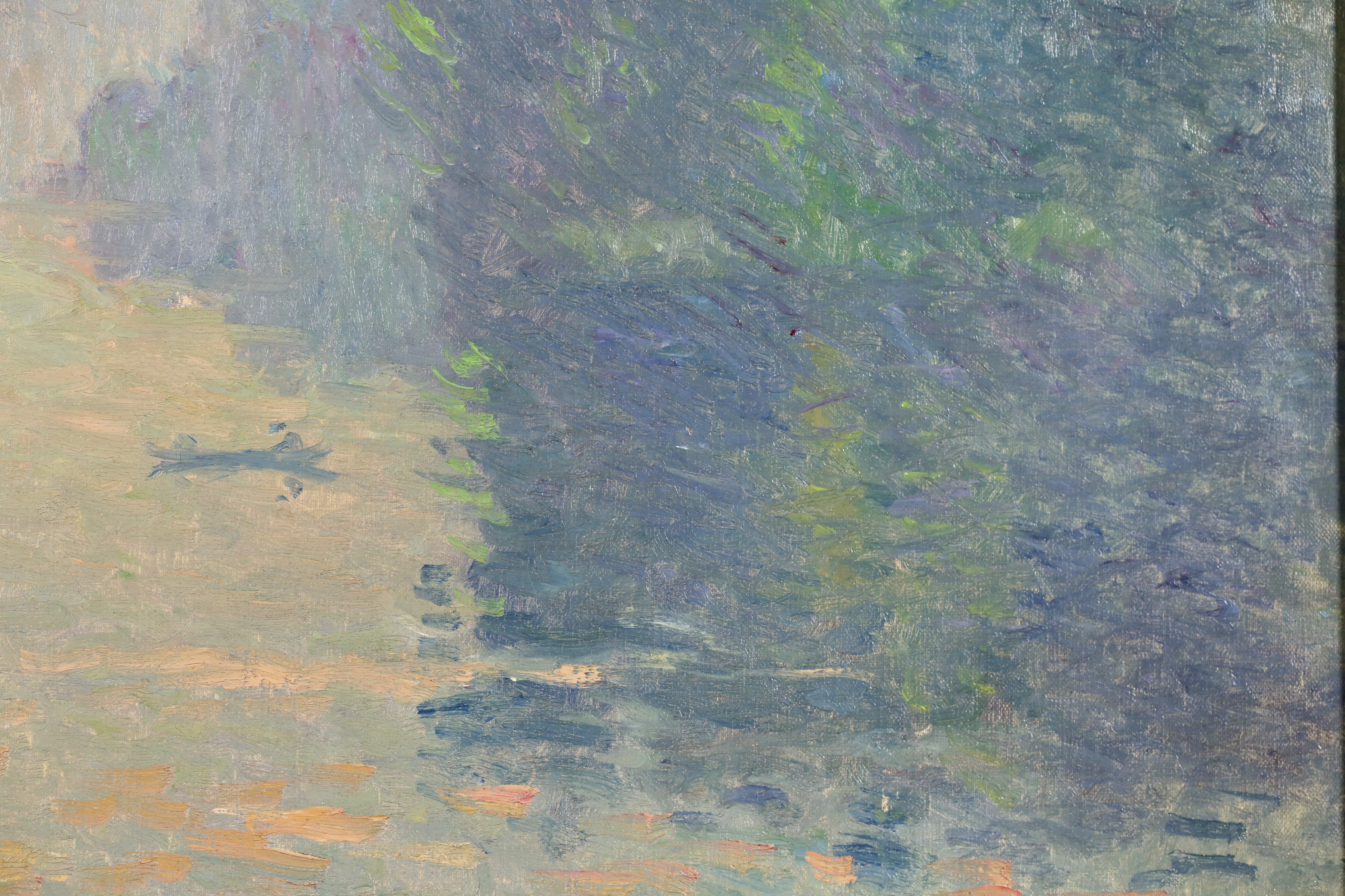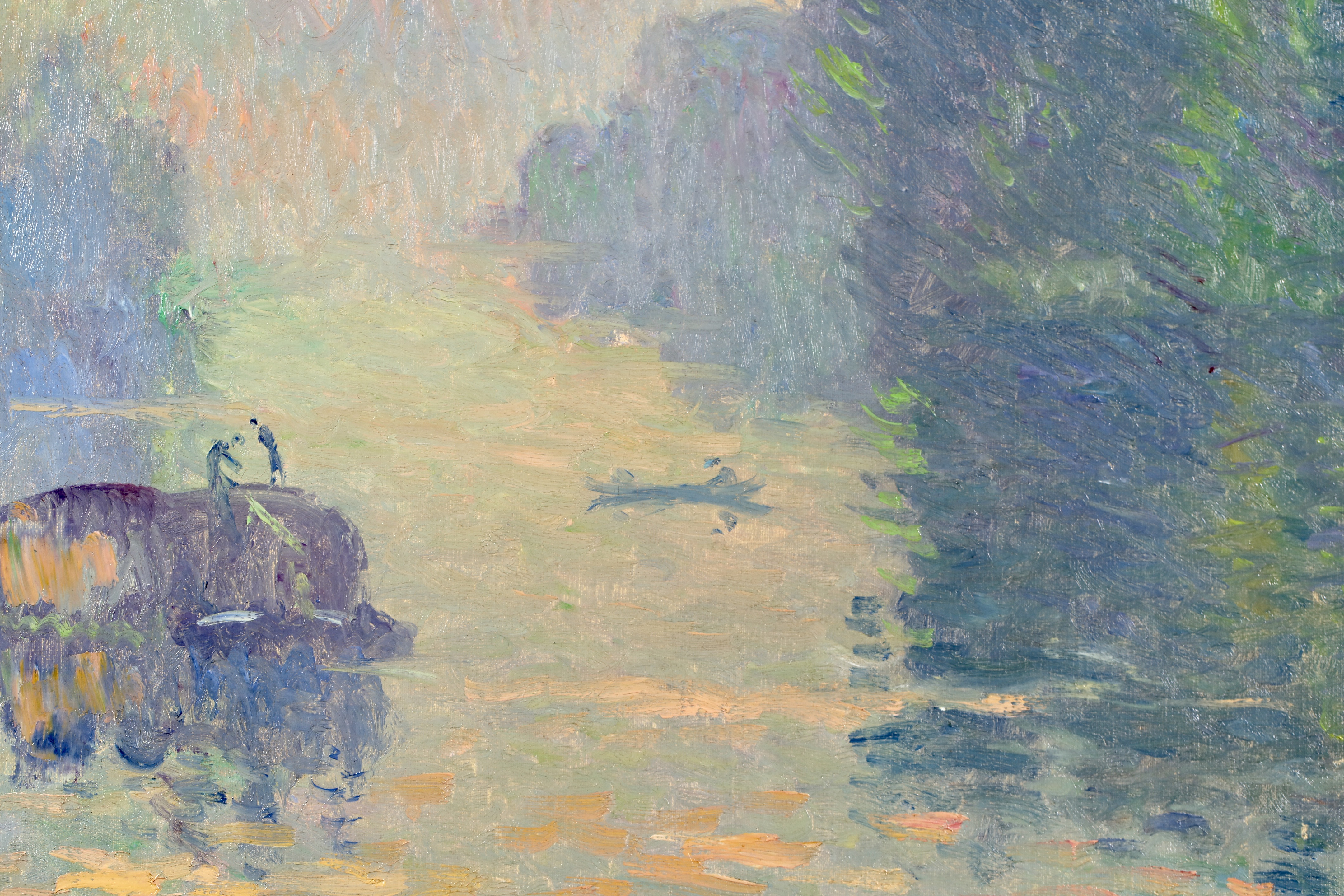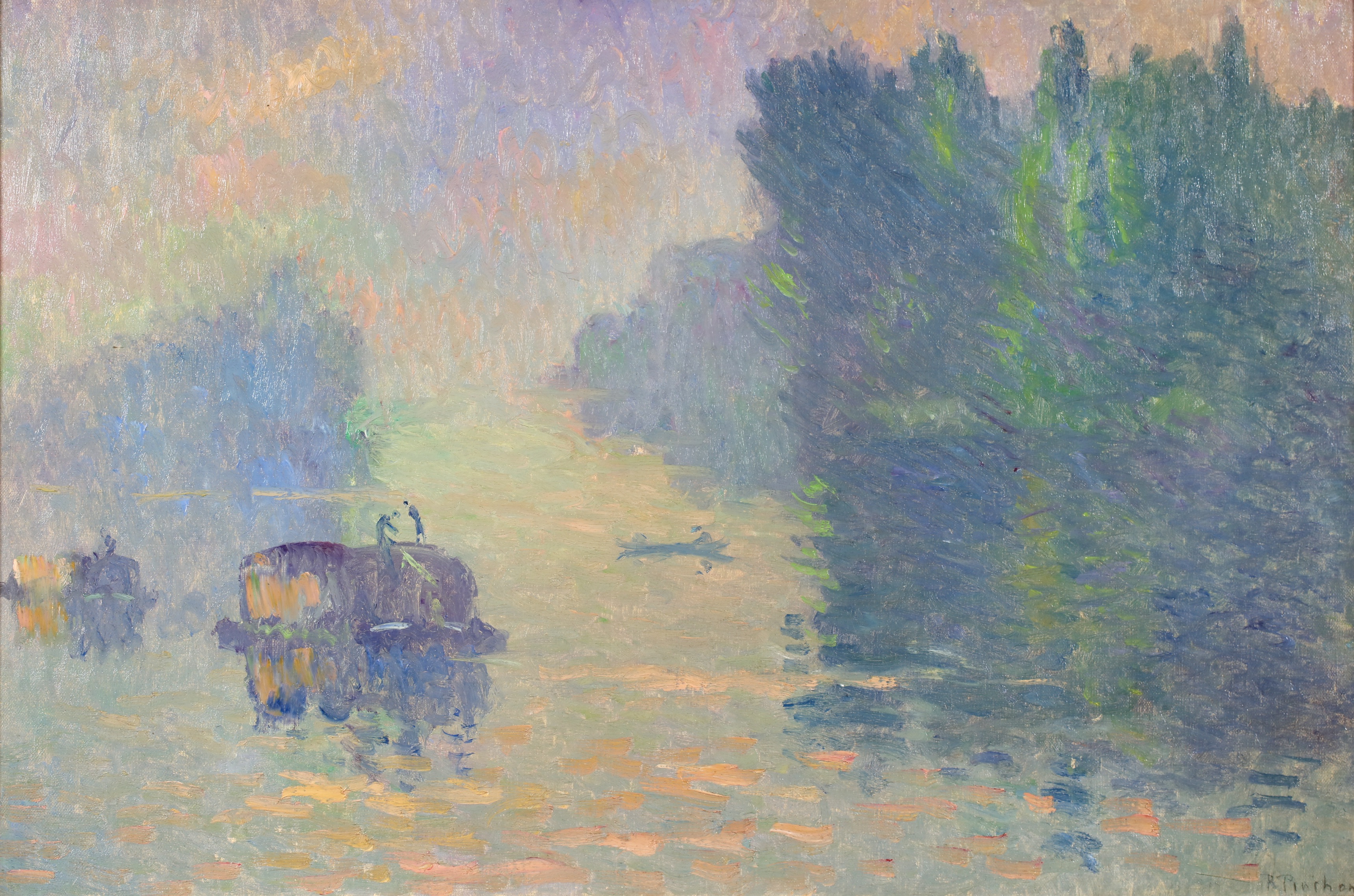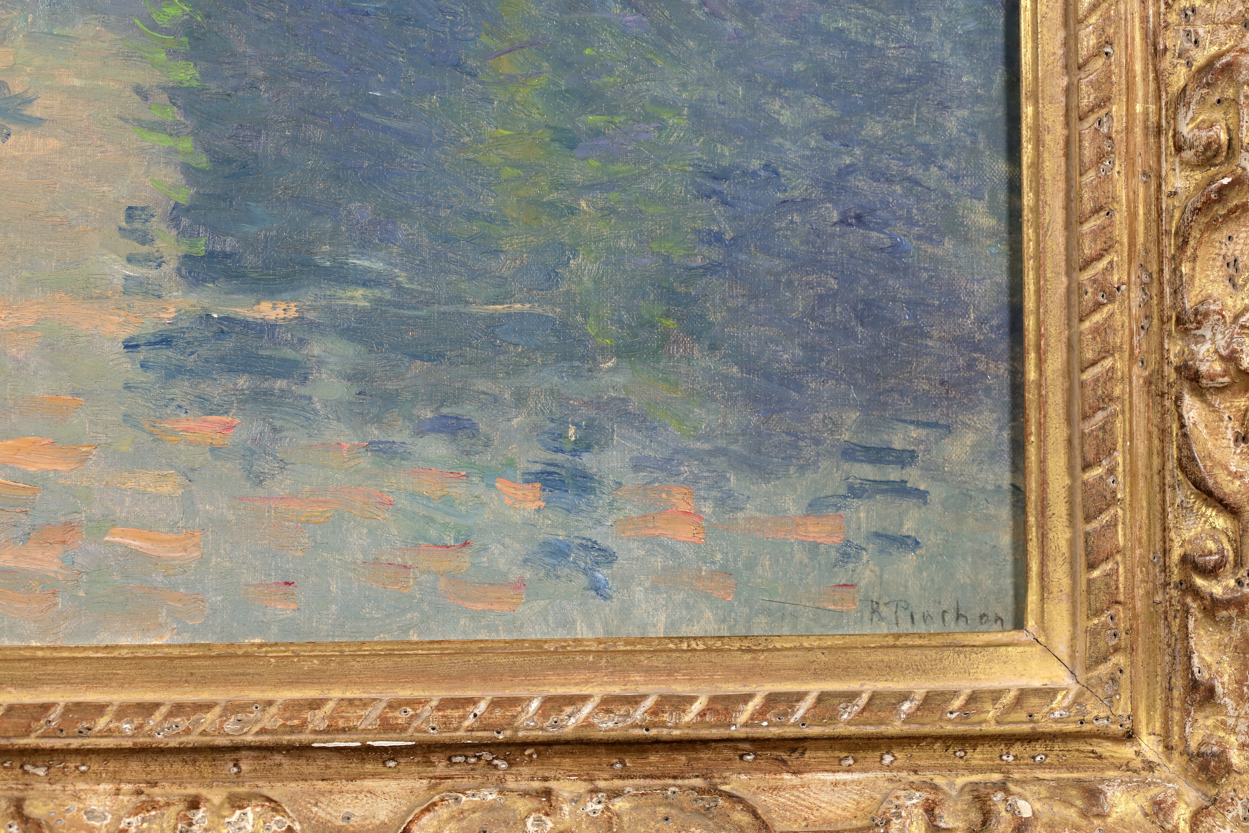 Along with Dumont and Guilbert, Robert Pinchon is one of the Rouen artists who understood Monet's teachings best. Monet himself noticed Pinchon's 'eye' when he met him for the first time. On a technical level, he used pure colours, just as they came out of the tube. His poetical art perfectly rendered not only the misty lights of the port of Rouen, but also scenes of daily life, whether of a young woman sitting in a garden or children playing with a ball. Noteworthy are: Embankment in Rouen; Rouen in the Snow; Banks of the Seine; Suspension Bridge at Elbeuf.