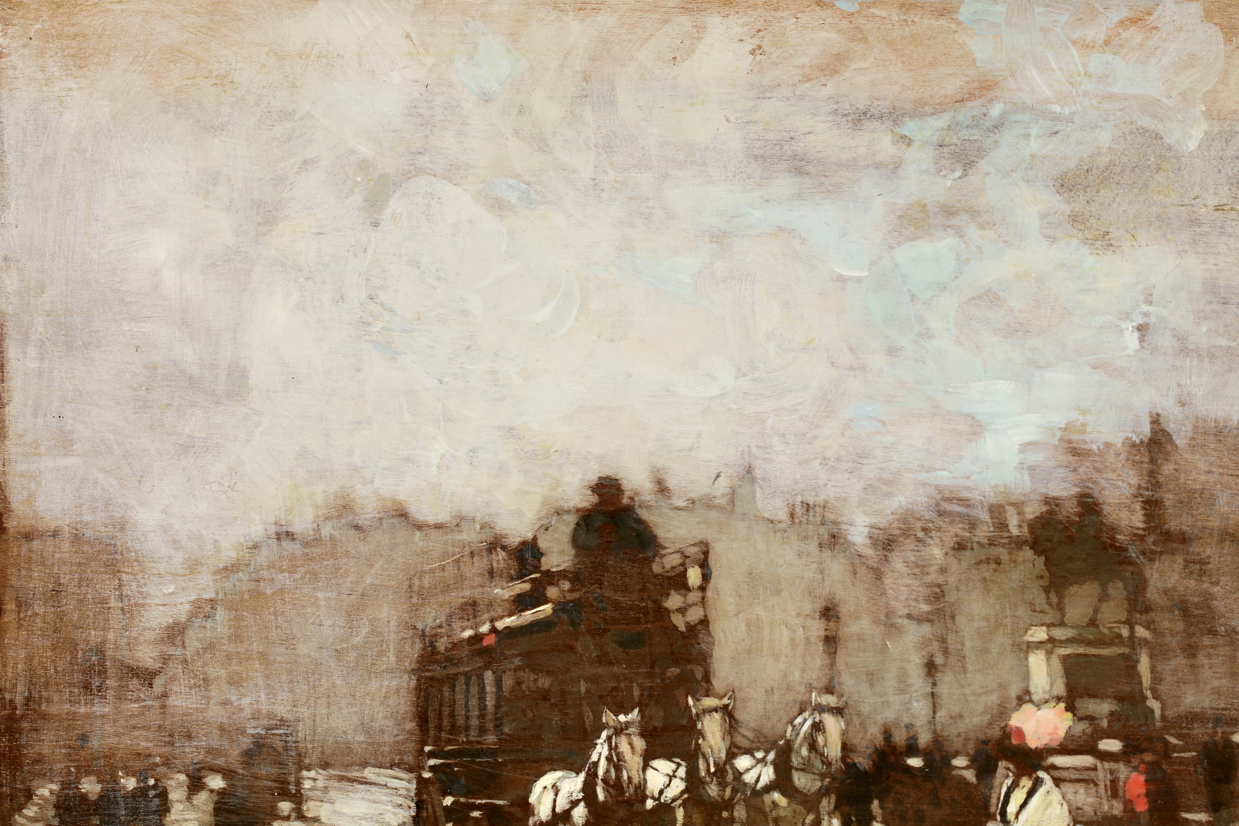 Although Marcel-Clement resided in Paris for virtually all his life, he only painted a relatively small number of views of his native city. The majority of his works are shipping subjects off the French coast and it is for these works that he is best known. His coastal views capture the dramatic atmosphere of light emanating from the sky and bouncing off the sea. His palette is natural and he uses varied greys and blues interspersed with whites and creams to evoke the silvery quality of both sky and sea. Using simplified forms and abstracted surfaces the sails of the boats are evoked with astonishing realism. The viewer is drawn into the scene as if he were actually there.