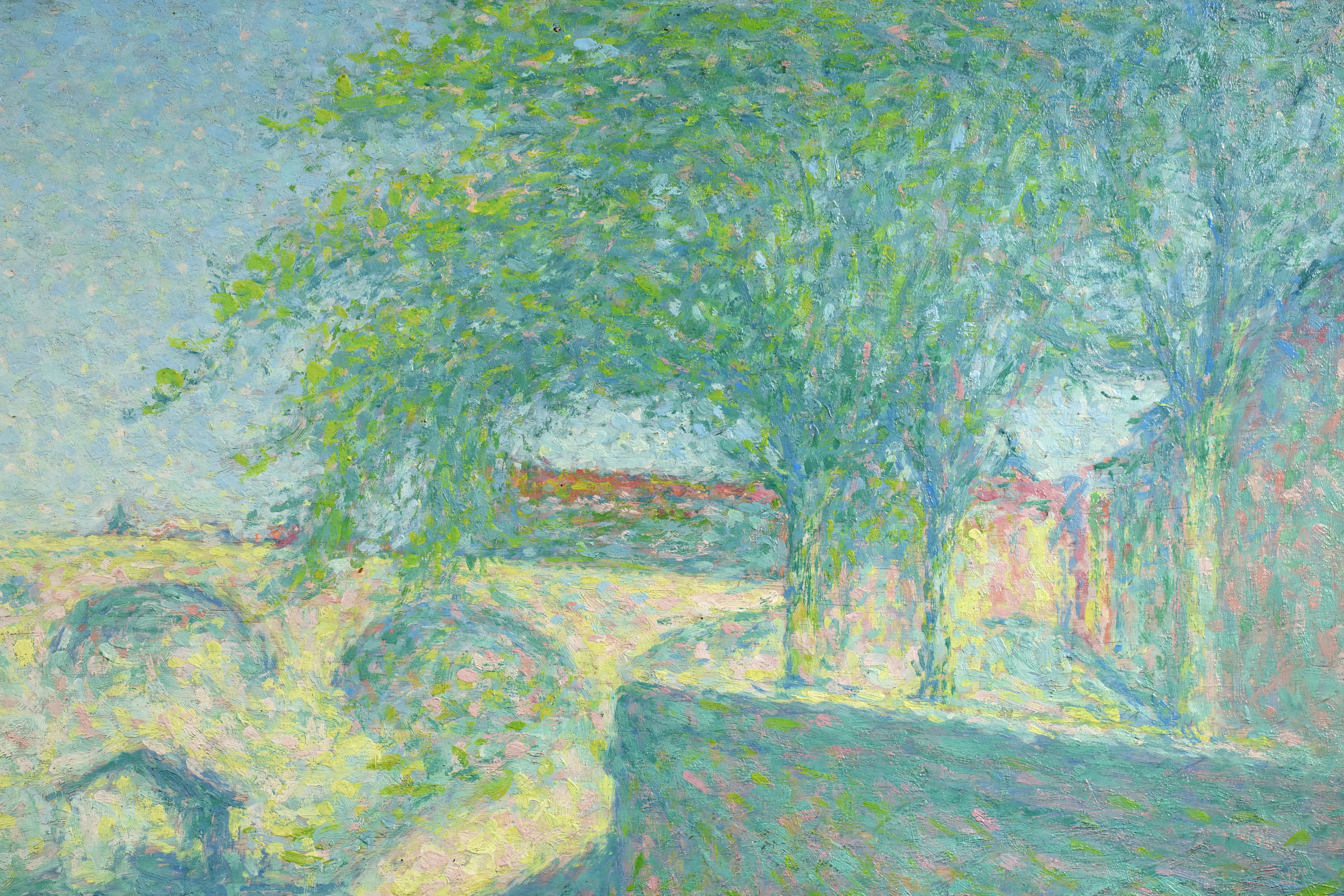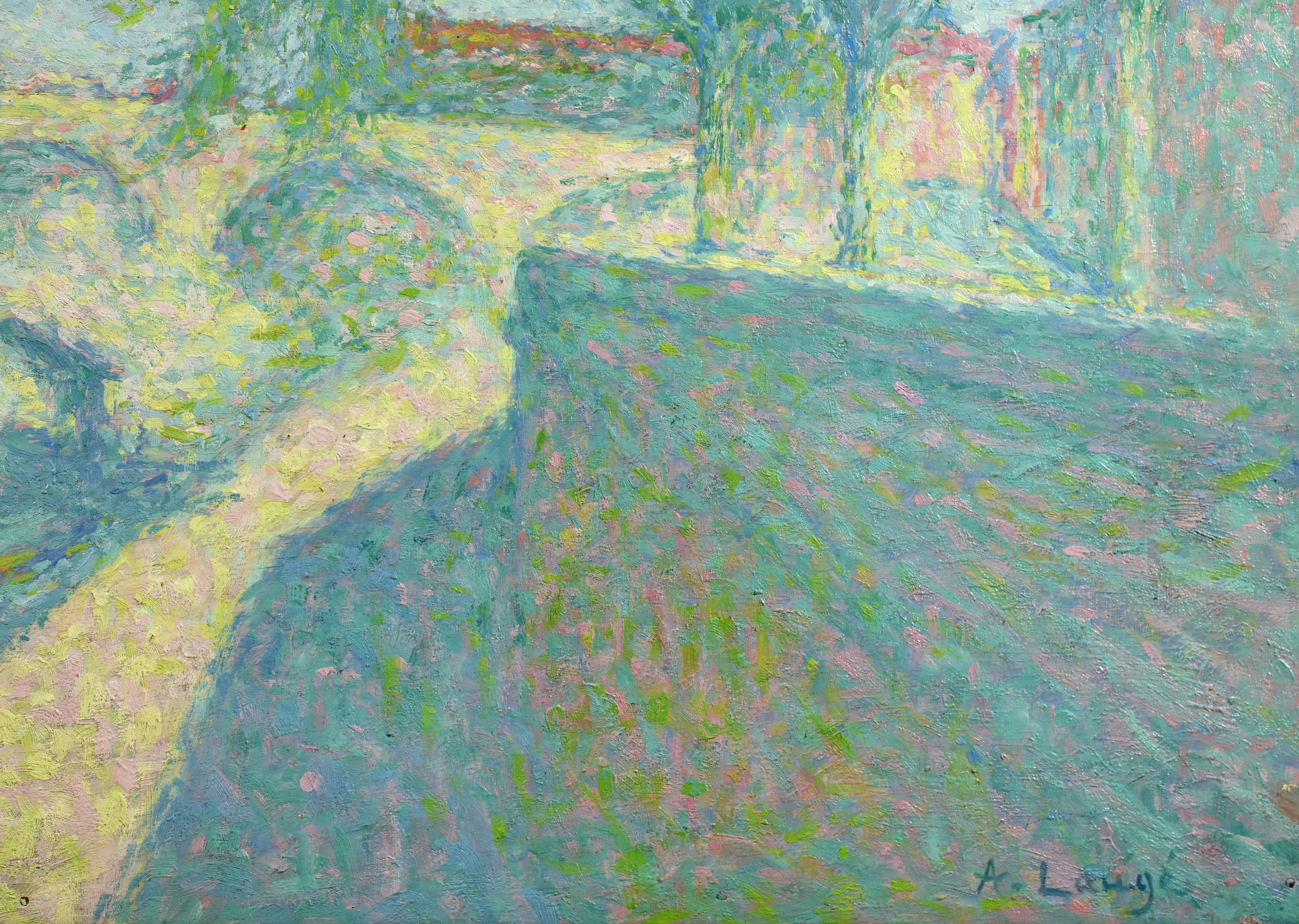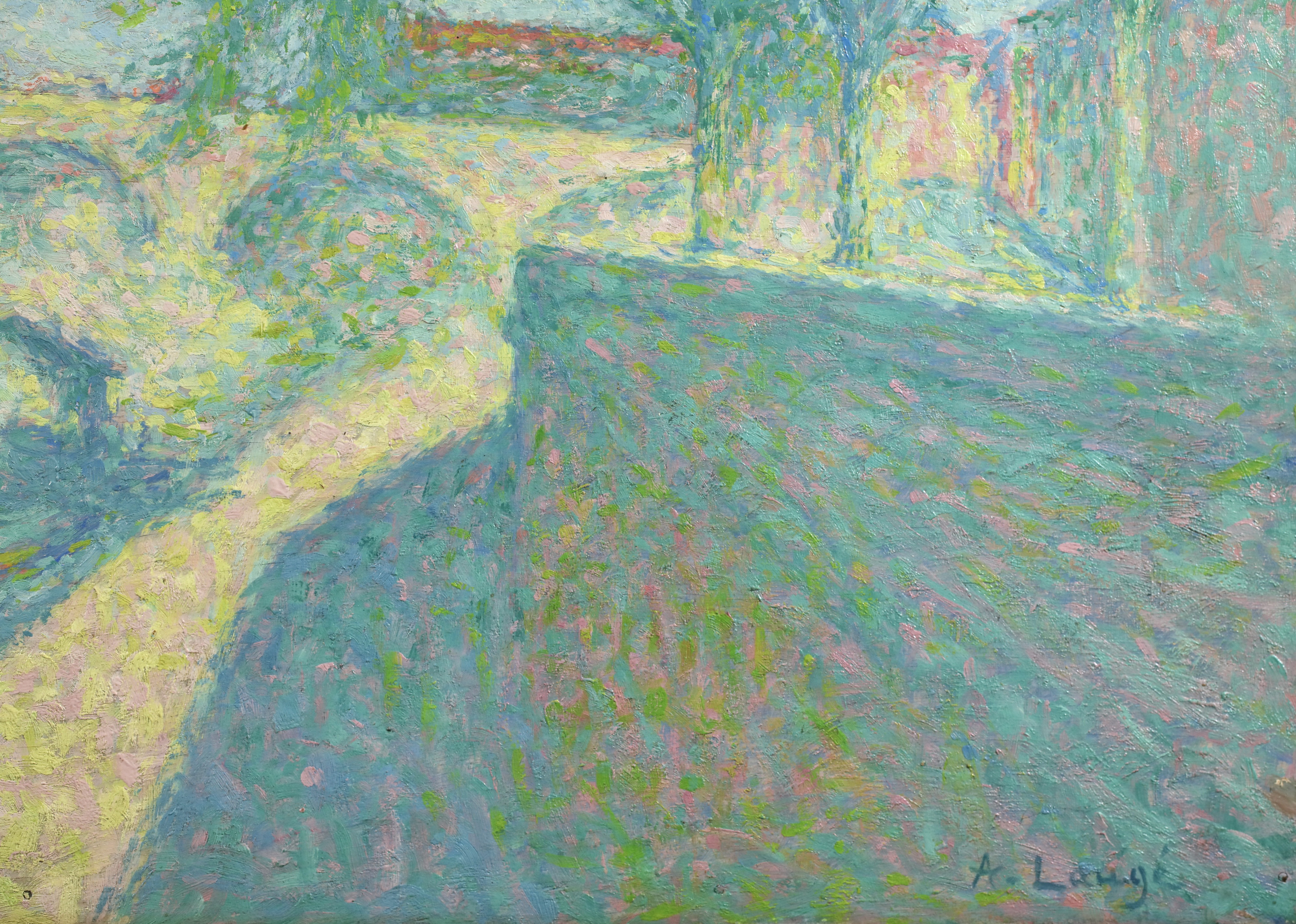 By the time he left Paris, Laugé had adopted the Divisionist touch championed by the Neo-Impressionists, and adhered to it more or less closely throughout his career. From 1905, in order to paint in situ, he procured a studio-caravan. For several years from 1916 onwards he had a base in Alet (Aude) and from 1926 spent the summer months in Collioure. From 1932 he had a studio in Paris and lived next door to his friend Bourdelle. In 1913 and 1926 he produced tapestry designs in response to commissions from the Gobelins tapestry manufactory.