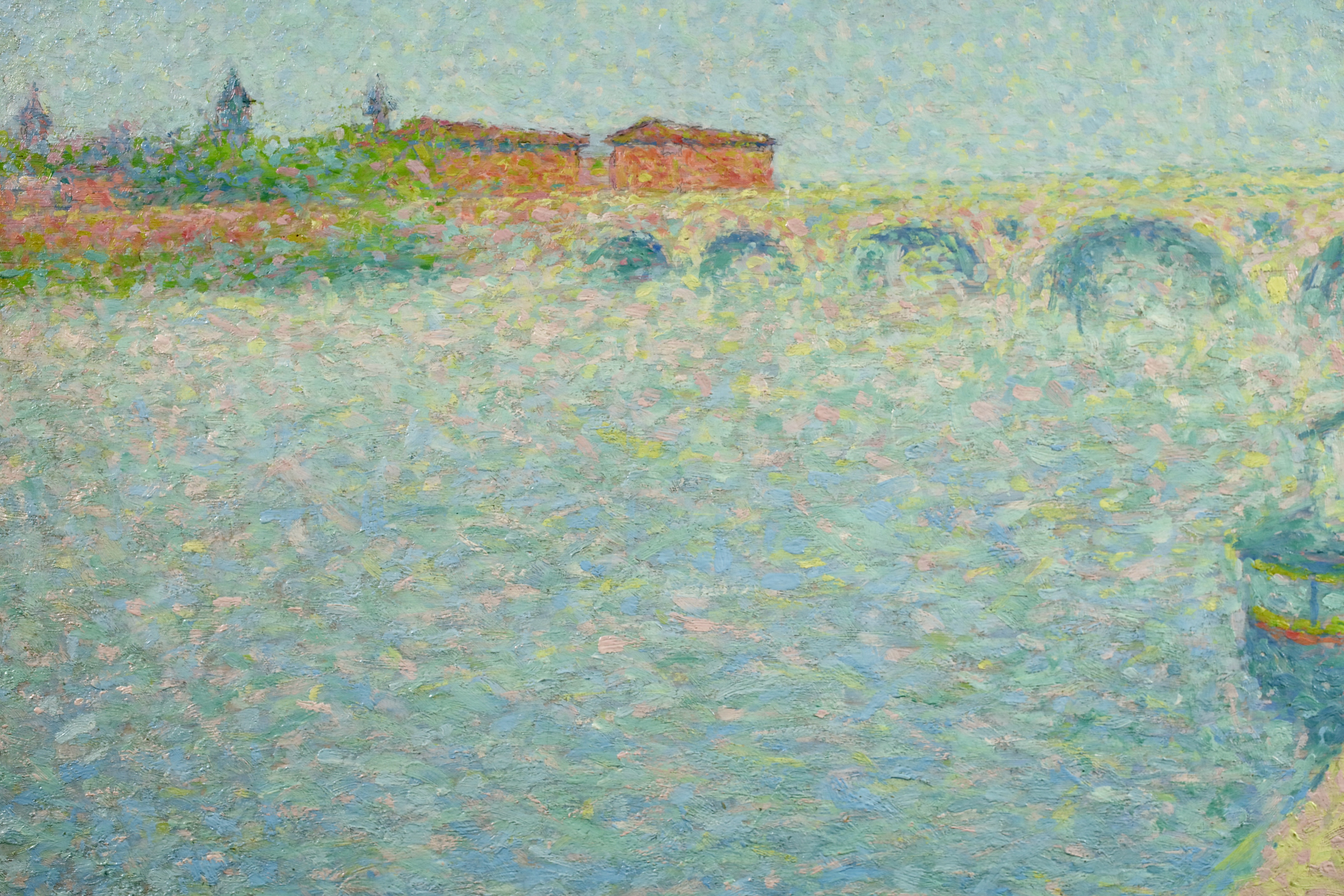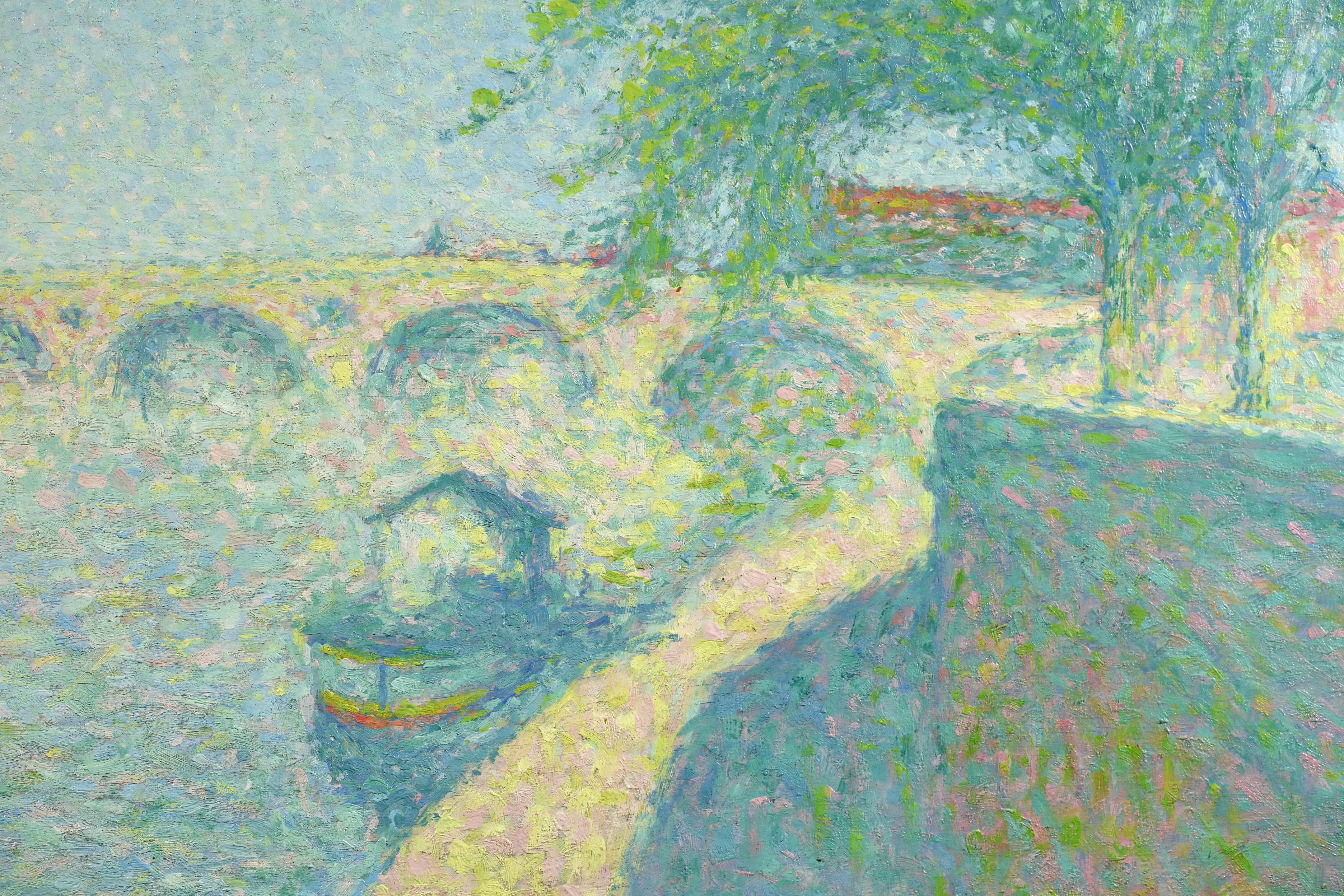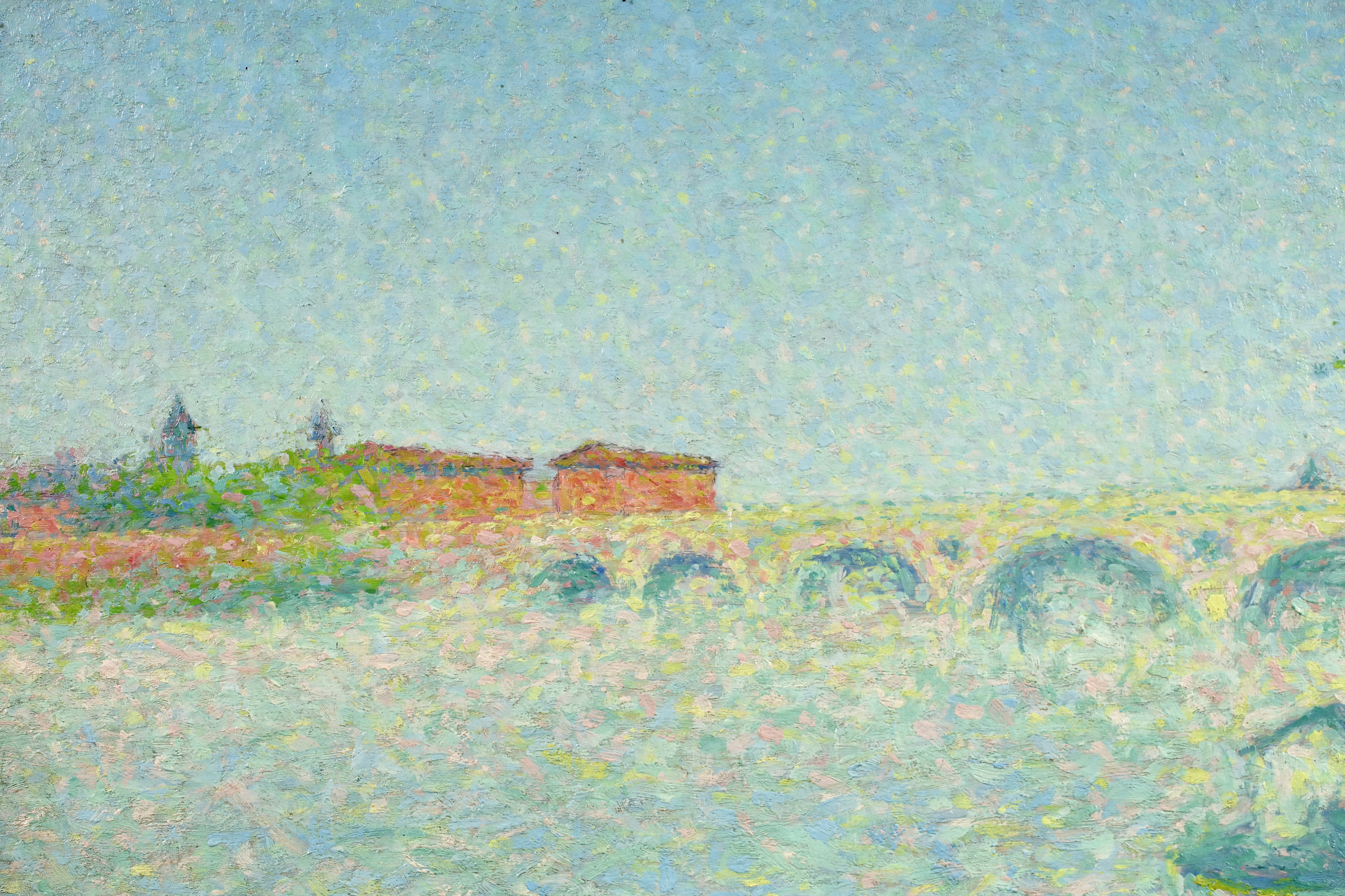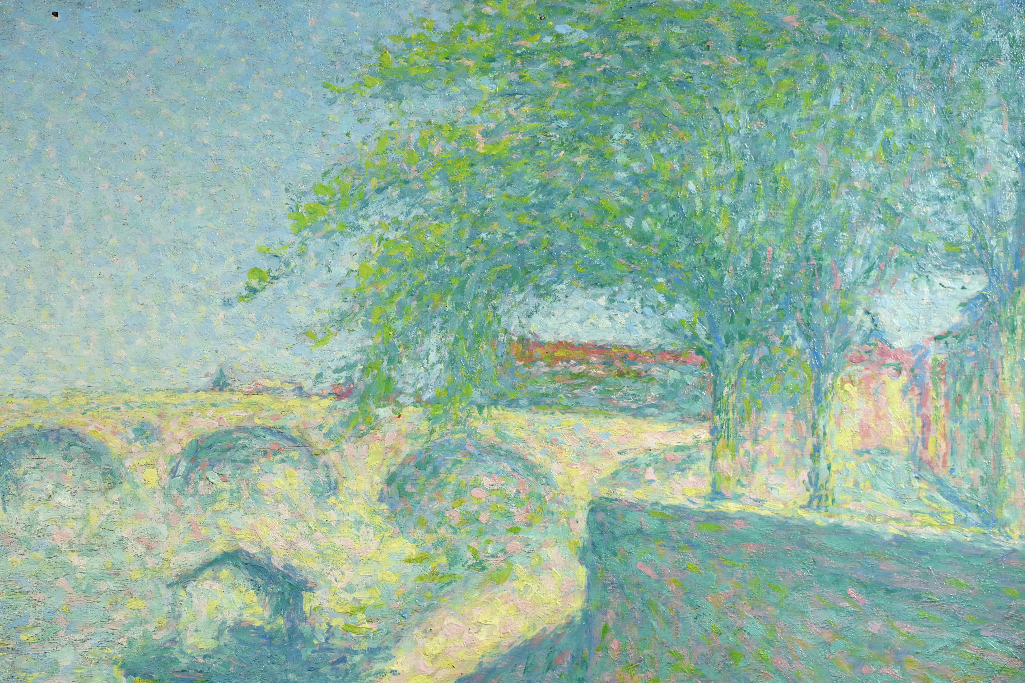 By the time he left Paris, Laugé had adopted the Divisionist touch championed by the Neo-Impressionists, and adhered to it more or less closely throughout his career. From 1905, in order to paint in situ, he procured a studio-caravan. For several years from 1916 onwards he had a base in Alet (Aude) and from 1926 spent the summer months in Collioure. From 1932 he had a studio in Paris and lived next door to his friend Bourdelle. In 1913 and 1926 he produced tapestry designs in response to commissions from the Gobelins tapestry manufactory.