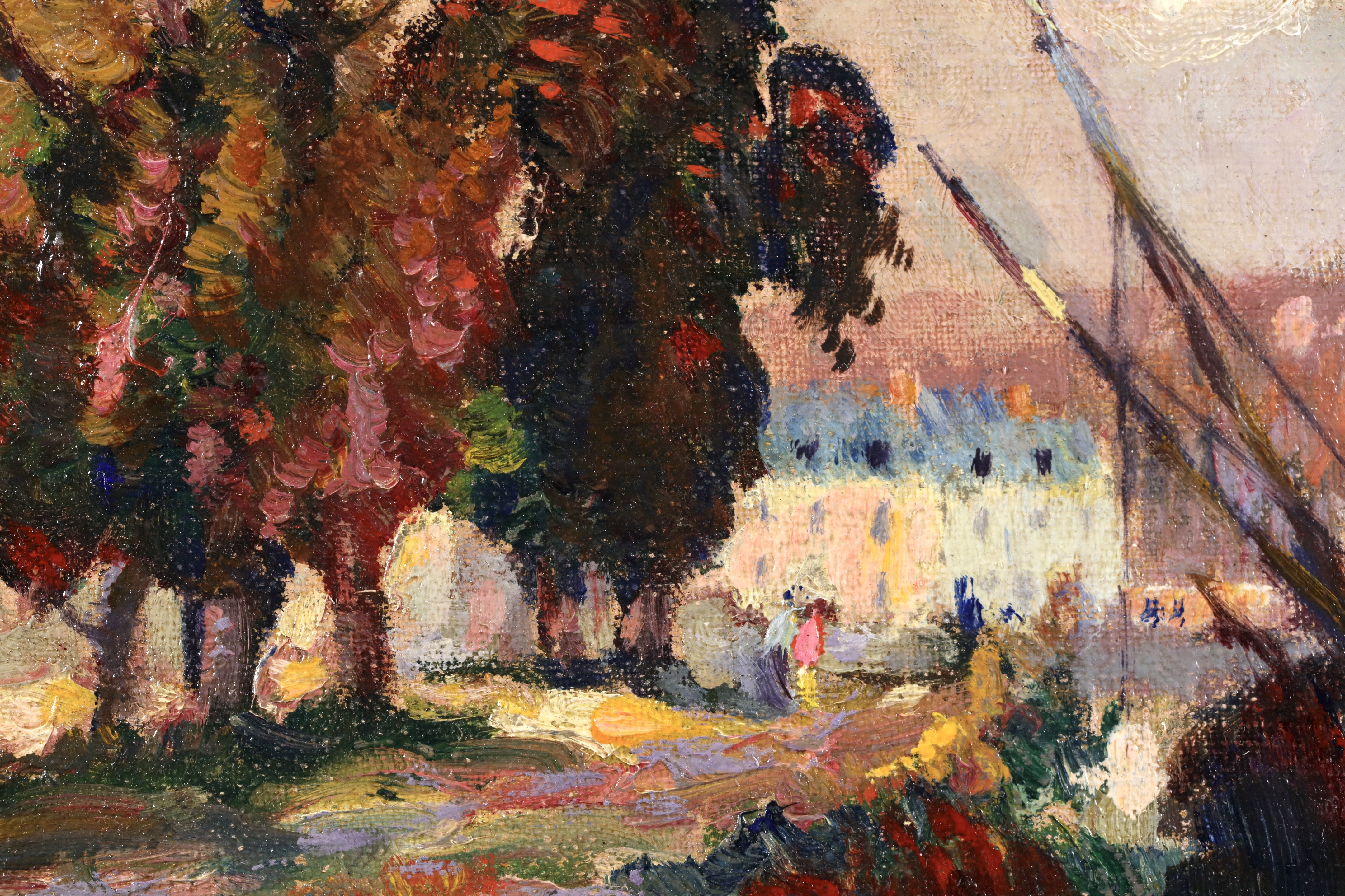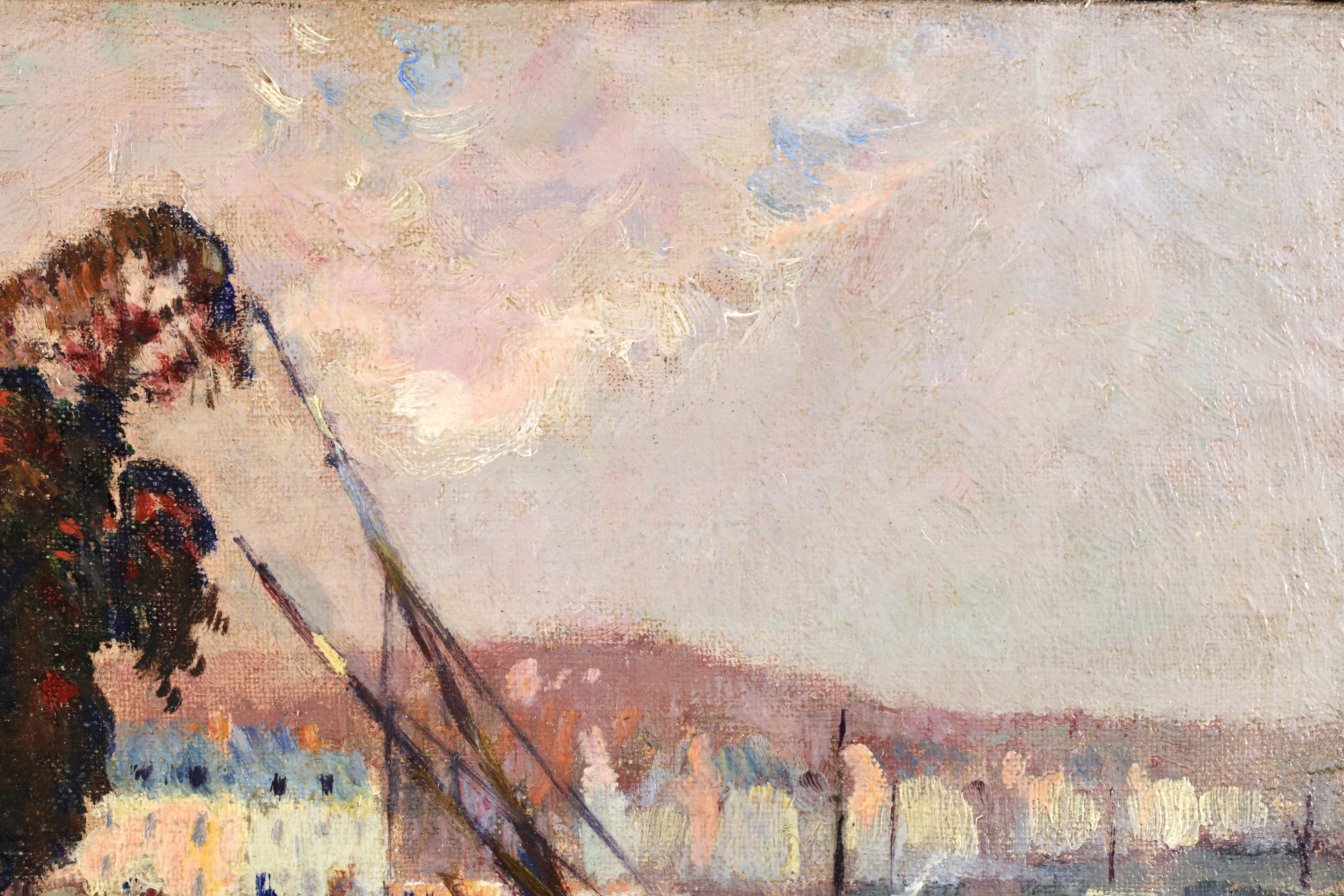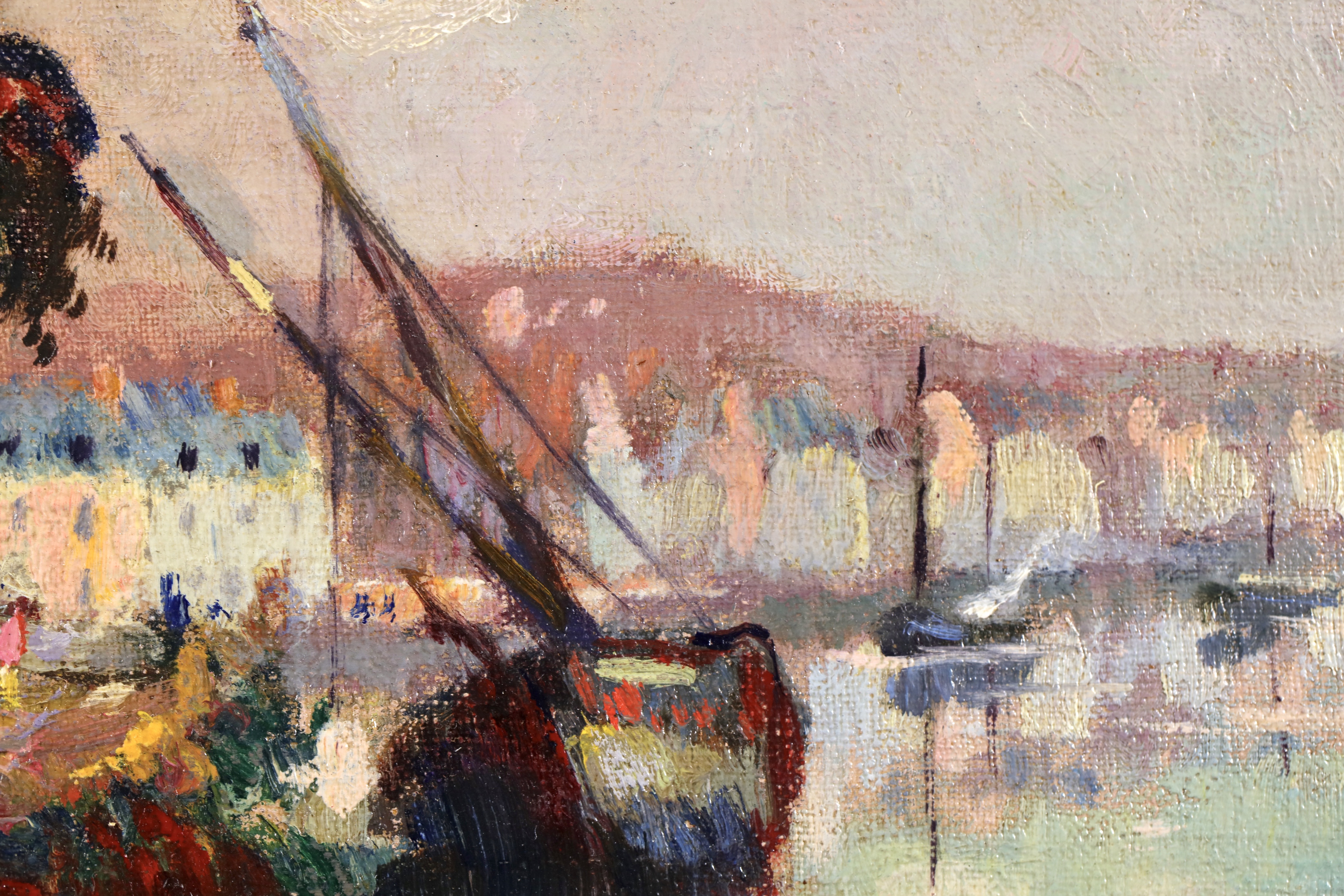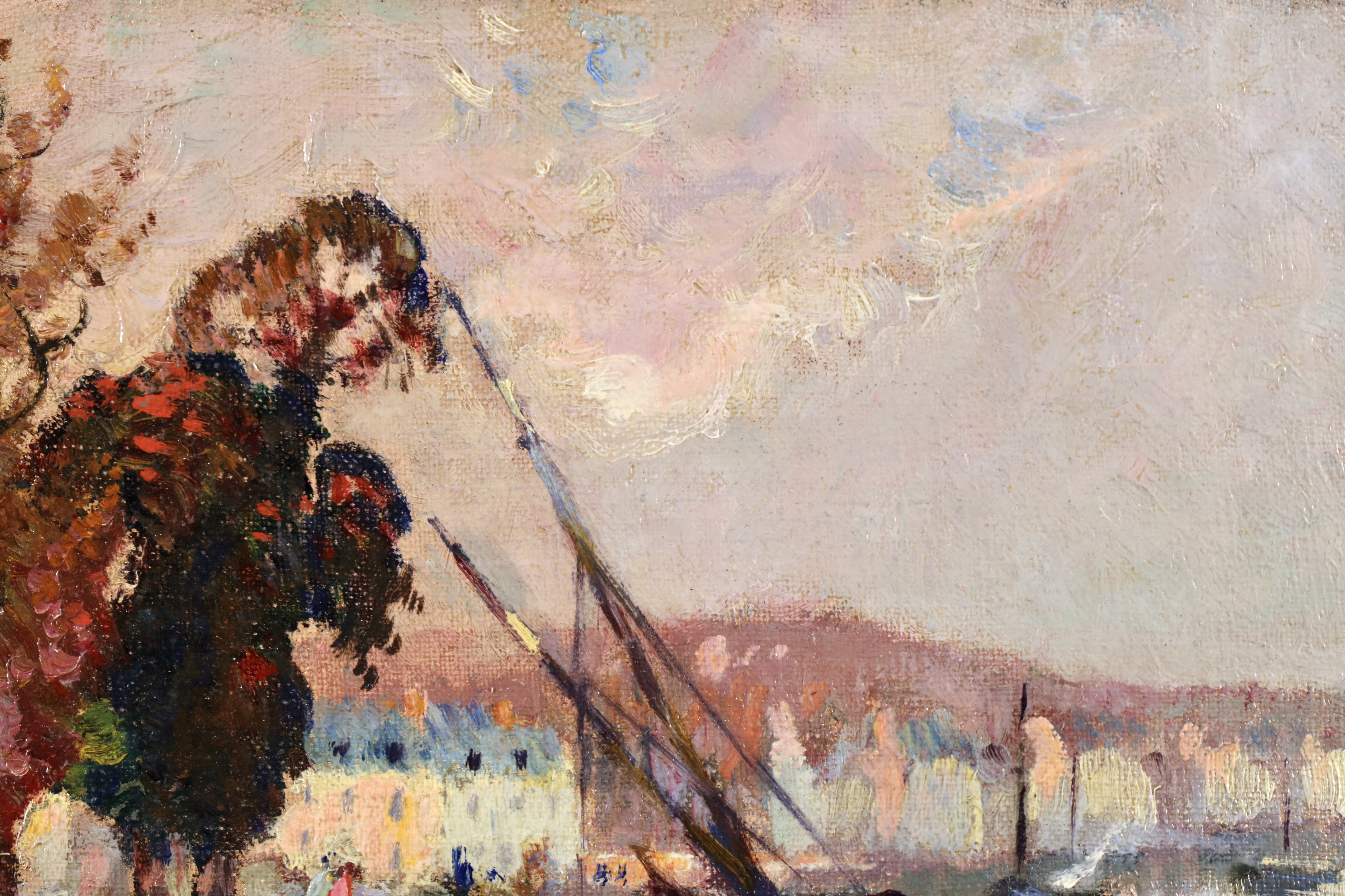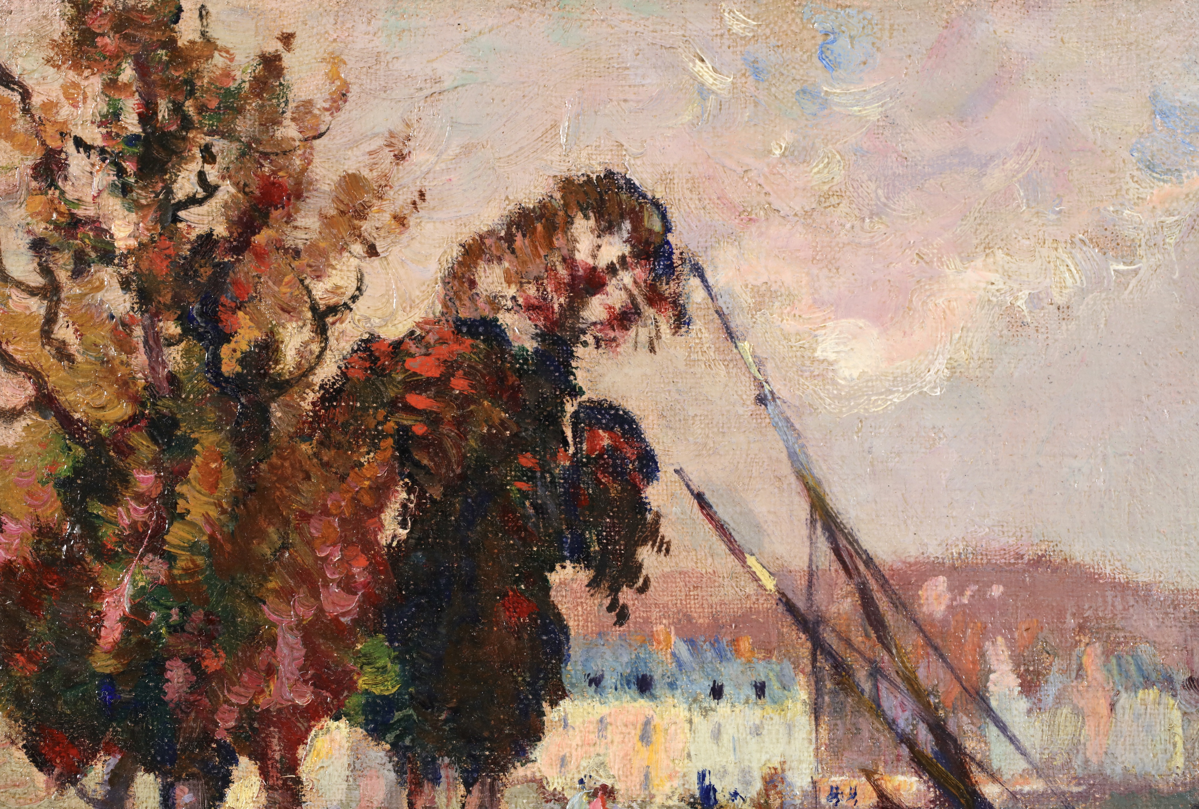 Along with Dumont and Guilbert, Robert Pinchon is one of the Rouen artists who understood Monet's teachings best. Monet himself noticed Pinchon's 'eye' when he met him for the first time. On a technical level, he used pure colours, just as they came out of the tube. His poetical art perfectly rendered not only the misty lights of the port of Rouen, but also scenes of daily life, whether of a young woman sitting in a garden or children playing with a ball. Noteworthy are: Embankment in Rouen; Rouen in the Snow; Banks of the Seine; Suspension Bridge at Elbeuf.
