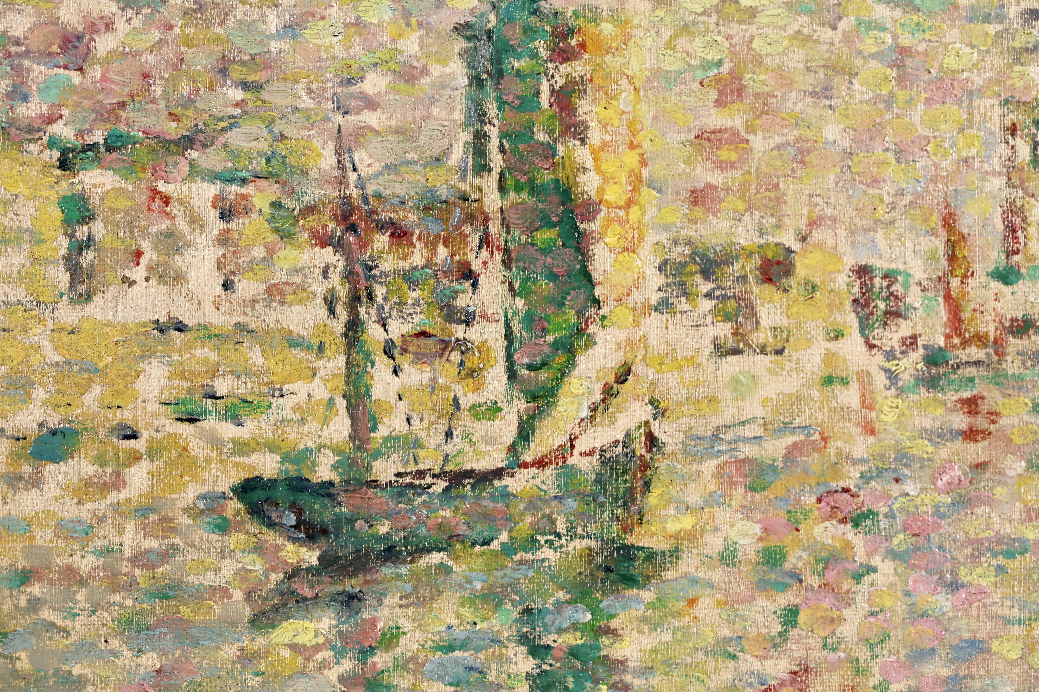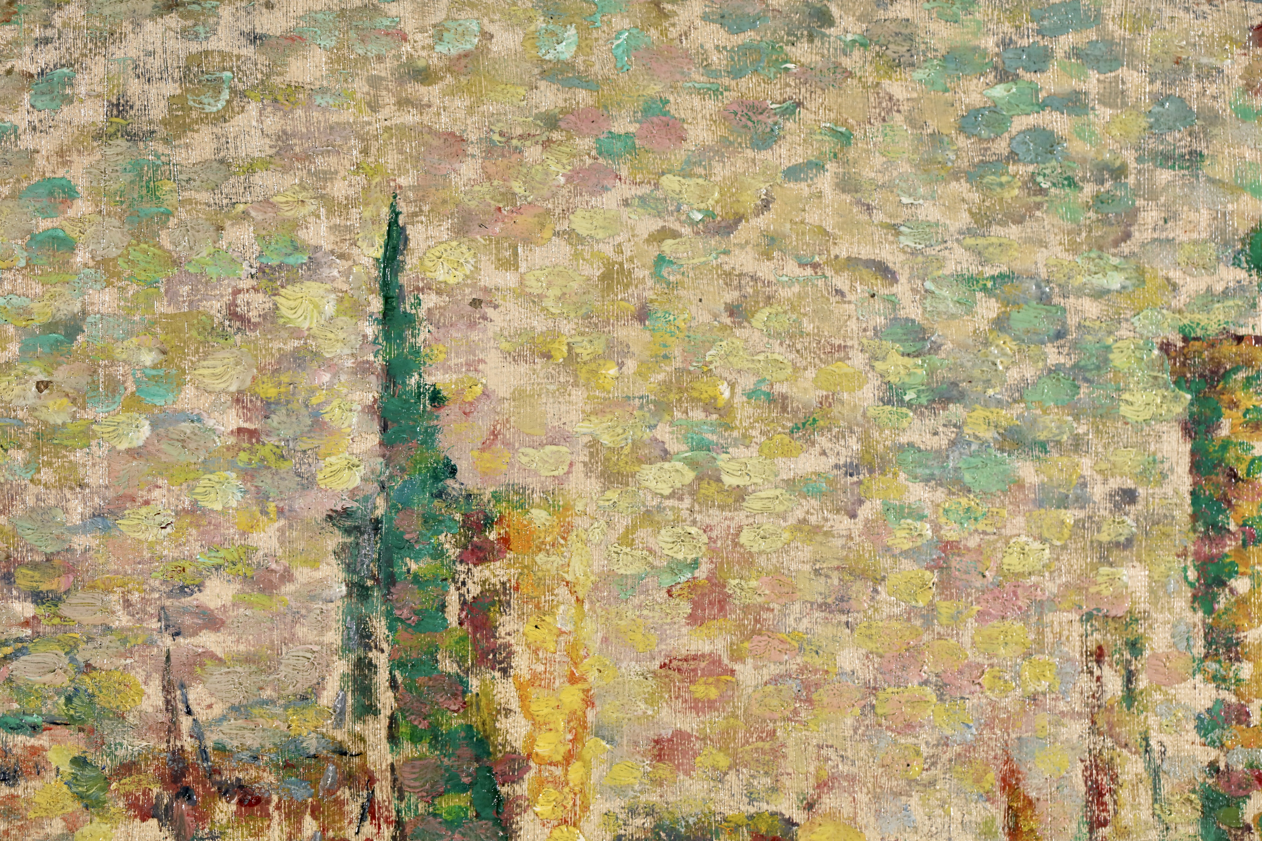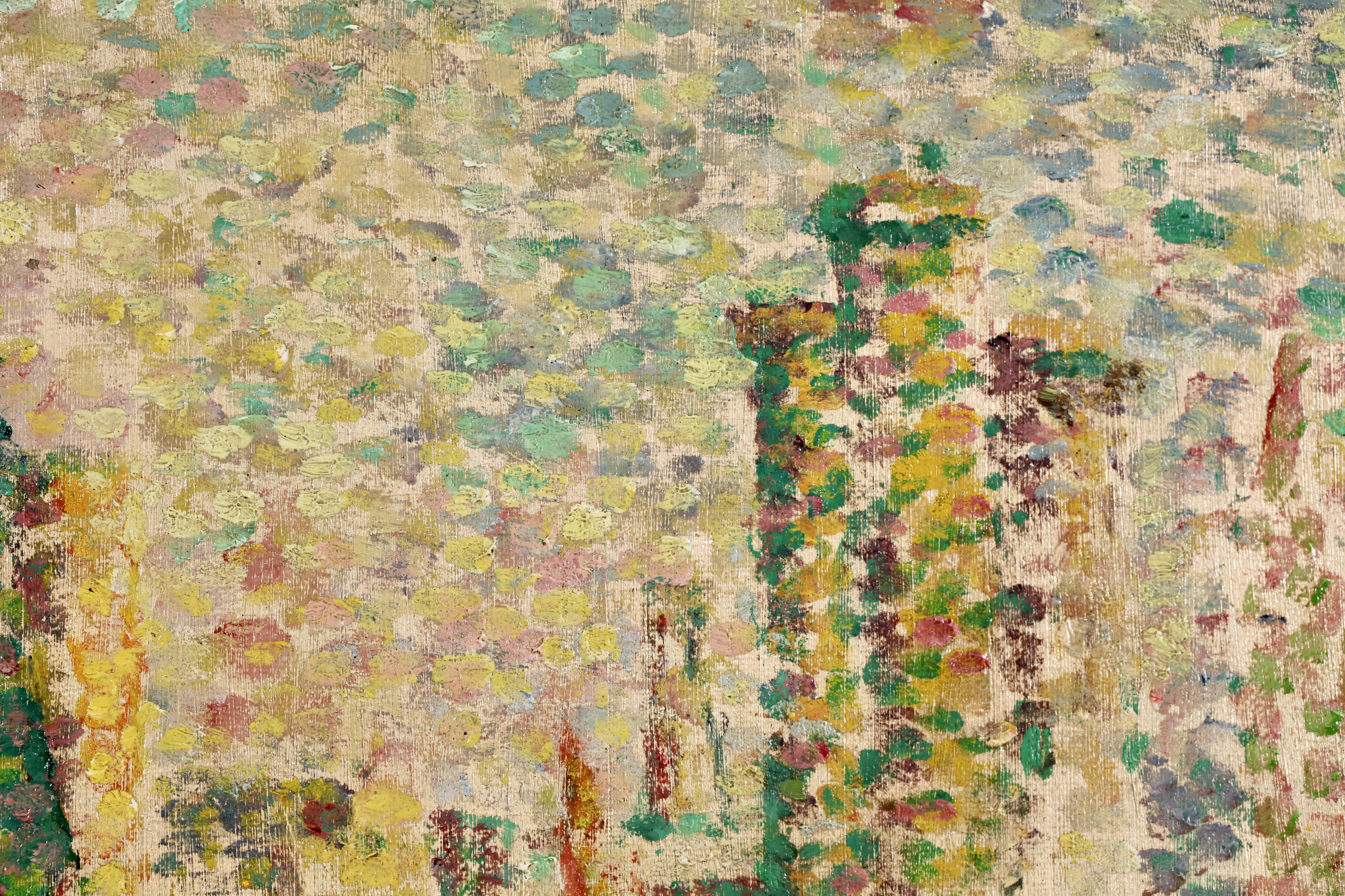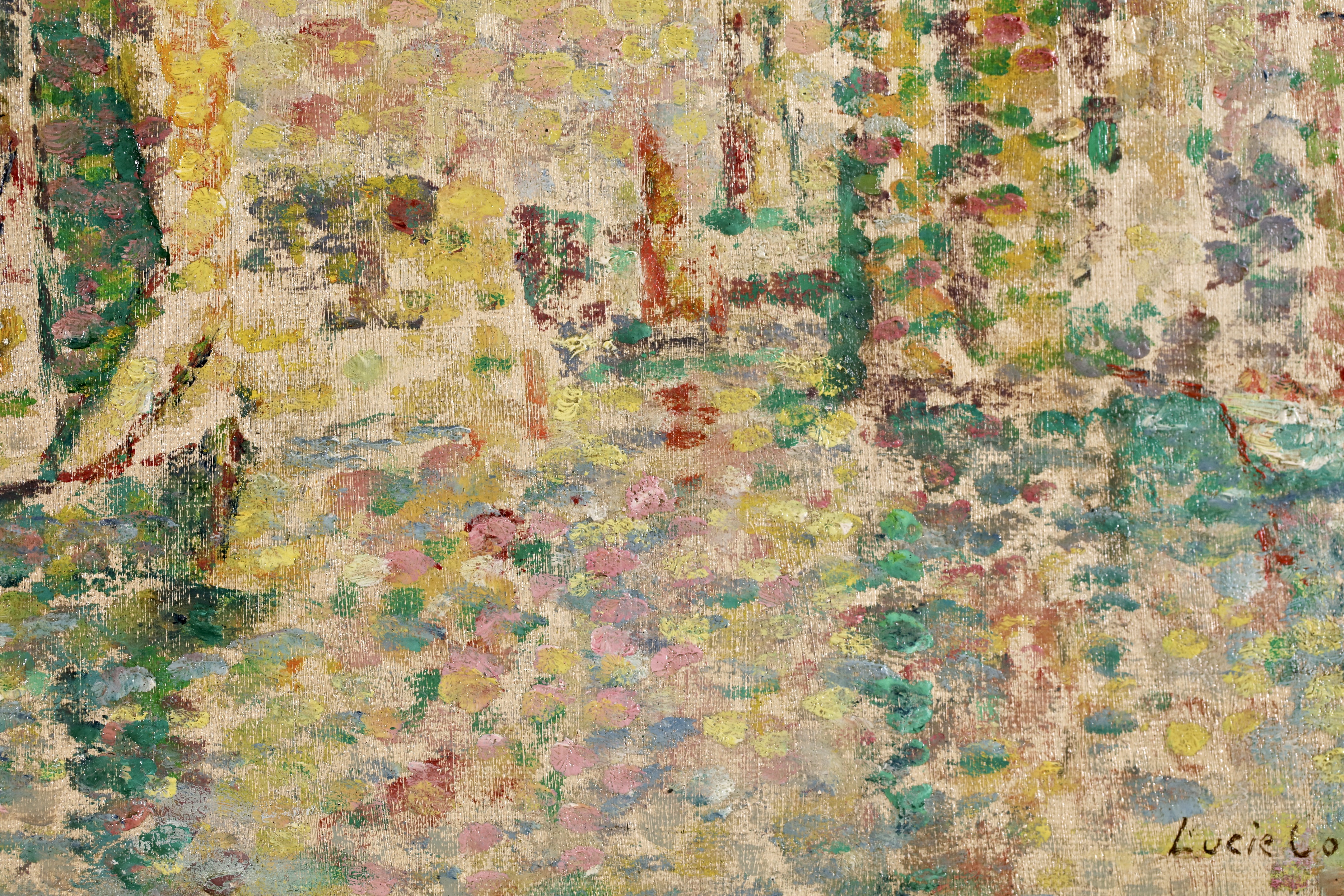 Lucie Cousturier first exhibited at the Salon des Artistes Indépendants in 1901, and was to exhibit three to eight oils there every year until 1920. She exhibited at other exhibitions in Brussels and Berlin, and at the end of 1906 gave her first solo exhibition in Paris. By 1907 she had a perfect mastery of technique and color. In her later paintings, particularly outdoors scenes, her style became increasingly fluid and free, with warm and lively colors. She exhibited with Signac regularly and had a two man show at the Galerie de Bruxelles with Signac in Brussels in 1923. Lucie also had an important writing career by writing articles and monographs about the major members of the emerging Neo-Impressionist movement. She is credited for being the first specialist writer of the movement.