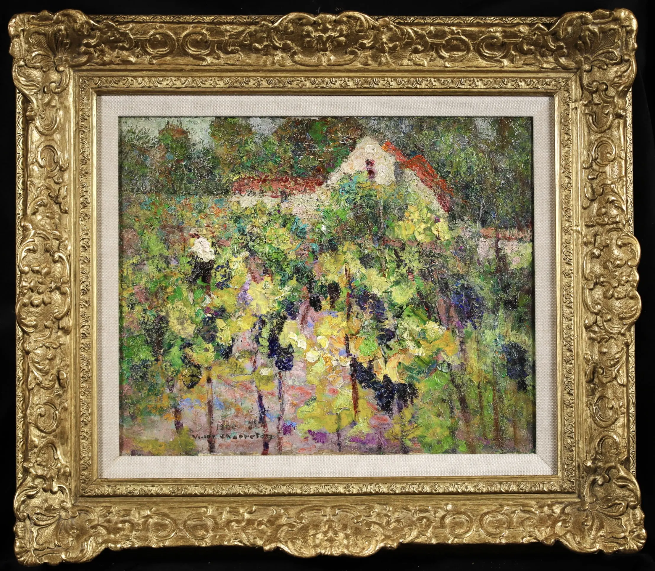 Charreton made his debut at the Lyons Salon in 1894 with Morning in Montpeyroux. That same year he began exhibiting in Paris at the Salon of the Société des Artistes Français, showing October Evening. He was awarded an honourable mention in 1910, a silver medal in 1912, a gold medal in 1913 and a commendation outside the competition in 1914. He also became a member of the committee and the jury and exhibited there until his death. He took part in collective exhibitions in France - in Toulouse, Clermont-Ferrand, Roubaix and Bordeaux - and abroad, in New York, Geneva and Barcelona. In 1915 he held a solo exhibition at the Galerie Georges Petit in Paris. He exhibited in New York in 1916, 1920, 1921, 1924 and 1925; in Toledo in 1926 and 1934; Pittsburgh in 1933; Cleveland in 1934 and Japan in 1920 and 1928. In 1931 he inaugurated the Musée de Bourgoin by donating around 20 works; the museum then changed its name to the Musée Victor Charreton. He was also one of the founders and general secretary of the Salon d'Automne. In 1972 the Musée de Montmartre organised a posthumous retrospective exhibition of his work; in 1987 and 1989 two more were held in a Paris gallery; then in 2003 the Musée de Bourgoin-Jallieu (in Isère) held in exhibition entitled Victor Charreton: The Public Collections ( Victor Charreton. Les Collections Publiques).