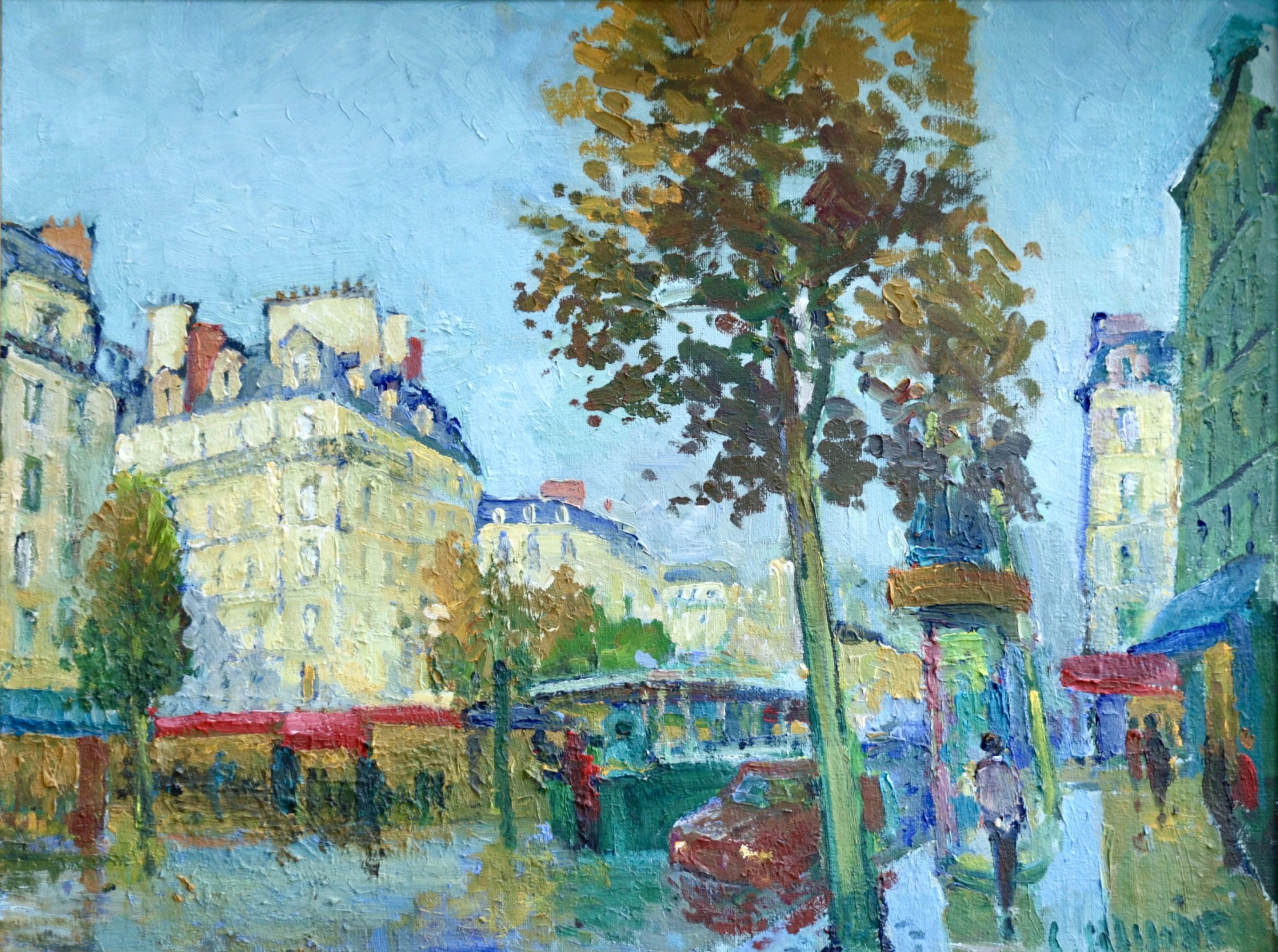 In 1931 Constantin Kluge moved to Paris and gained a place studying architecture at the well renowned École des Beaux Arts. After six years at the famed French academy, Kluge earned his architectural diploma. During his time in Paris, Kluge’s artistic talents were captivated by Parisian life. His later works of the river Seine, flower markets and the streets of Paris were executed with an impressionistic brush stroke along with a gentle naturalistic feel. His Paris street scenes capture the true essence of En plein air painting, which makes Kluge’s work so popular today.