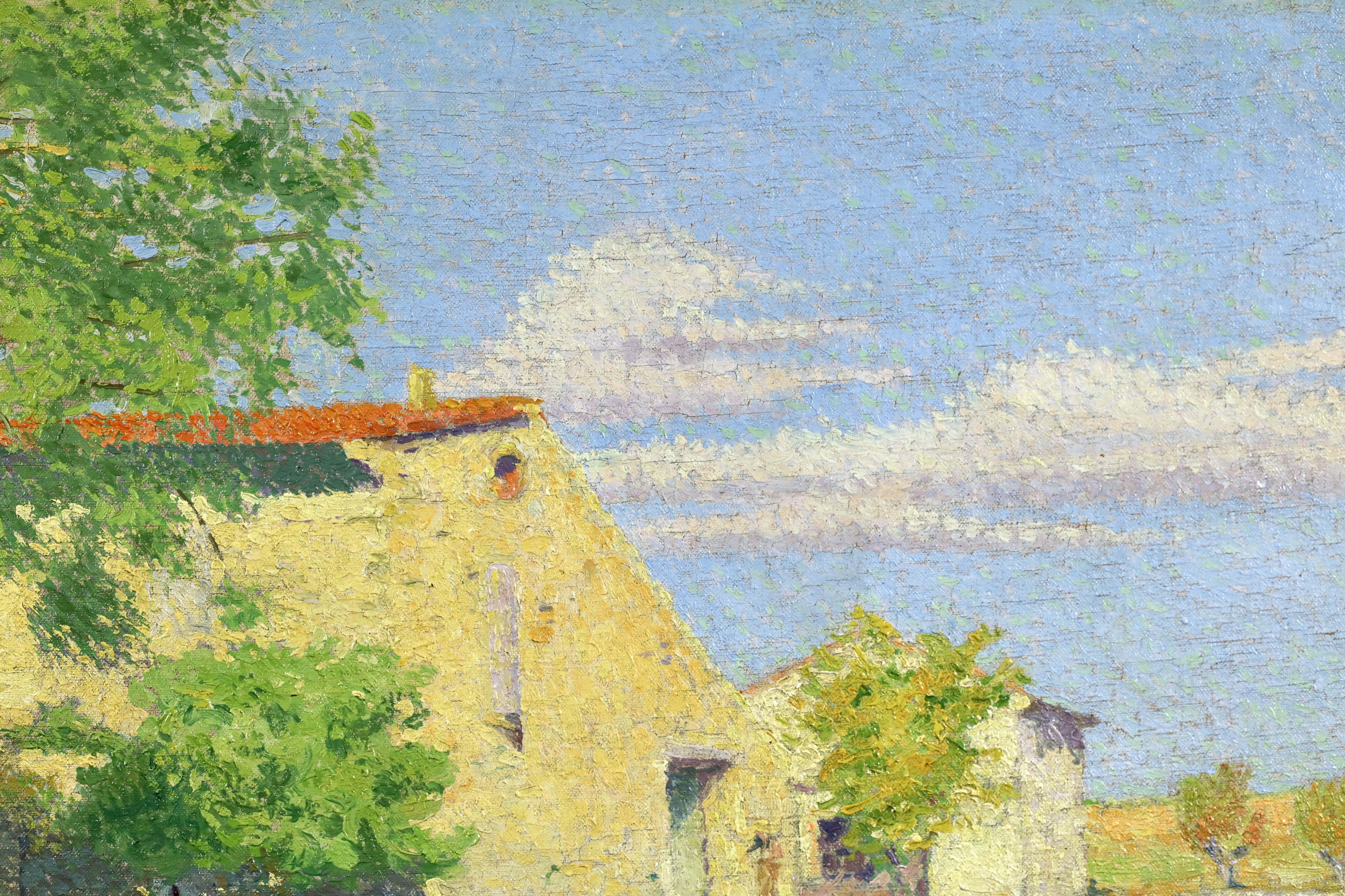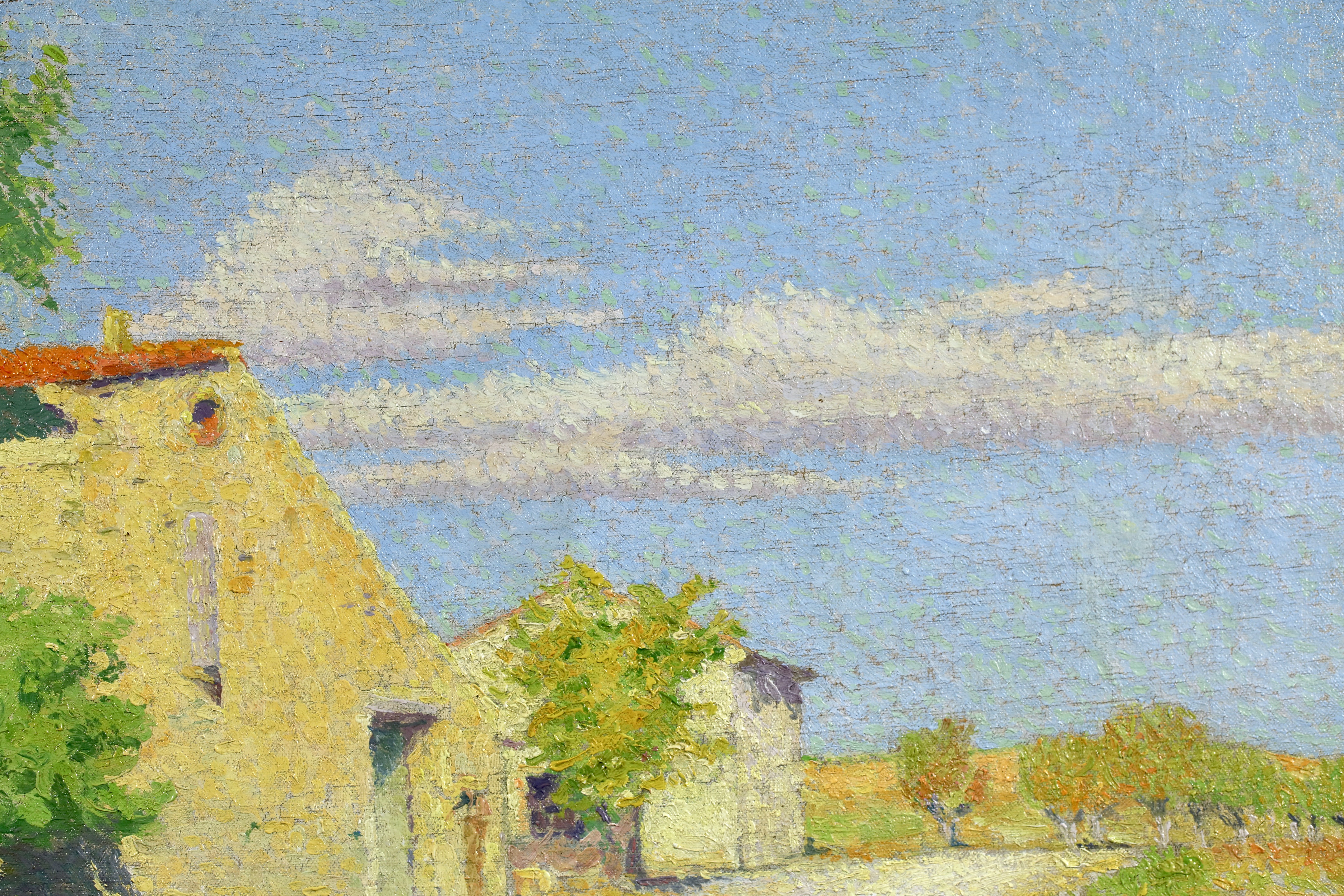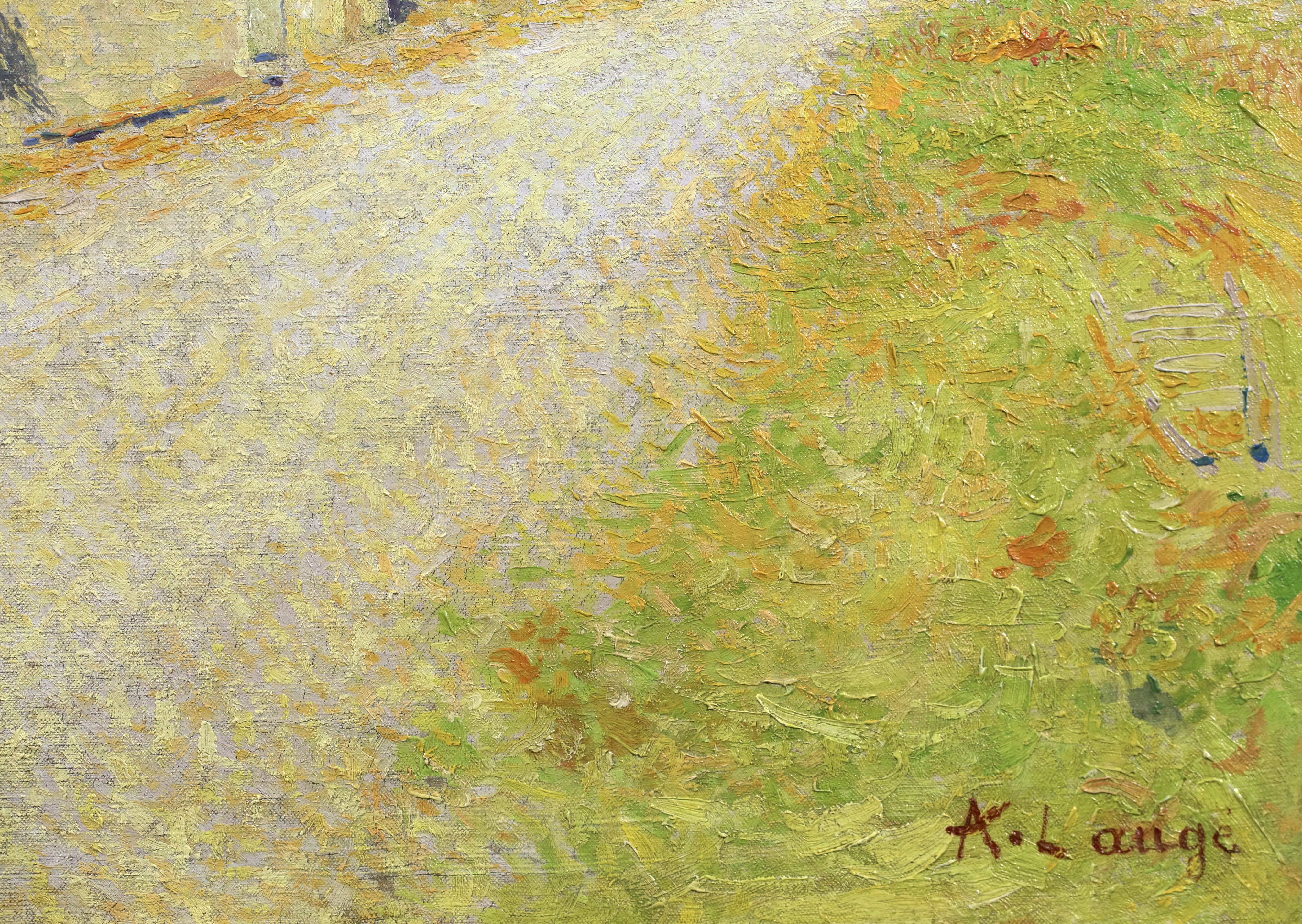 By the time he left Paris, Laugé had adopted the Divisionist touch championed by the Neo-Impressionists, and adhered to it more or less closely throughout his career. From 1905, in order to paint in situ, he procured a studio-caravan. For several years from 1916 onwards he had a base in Alet (Aude) and from 1926 spent the summer months in Collioure. From 1932 he had a studio in Paris and lived next door to his friend Bourdelle. In 1913 and 1926 he produced tapestry designs in response to commissions from the Gobelins tapestry manufactory.