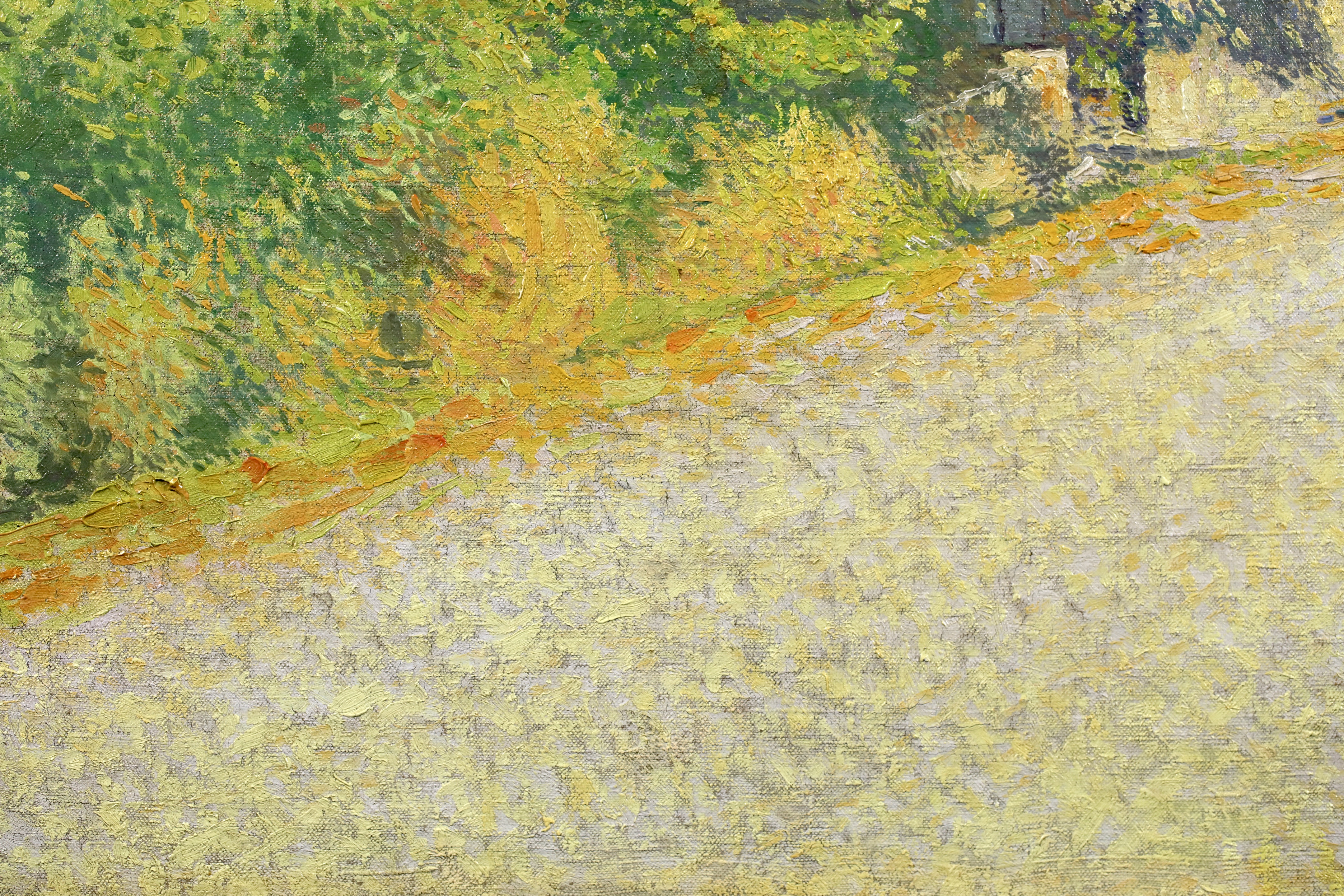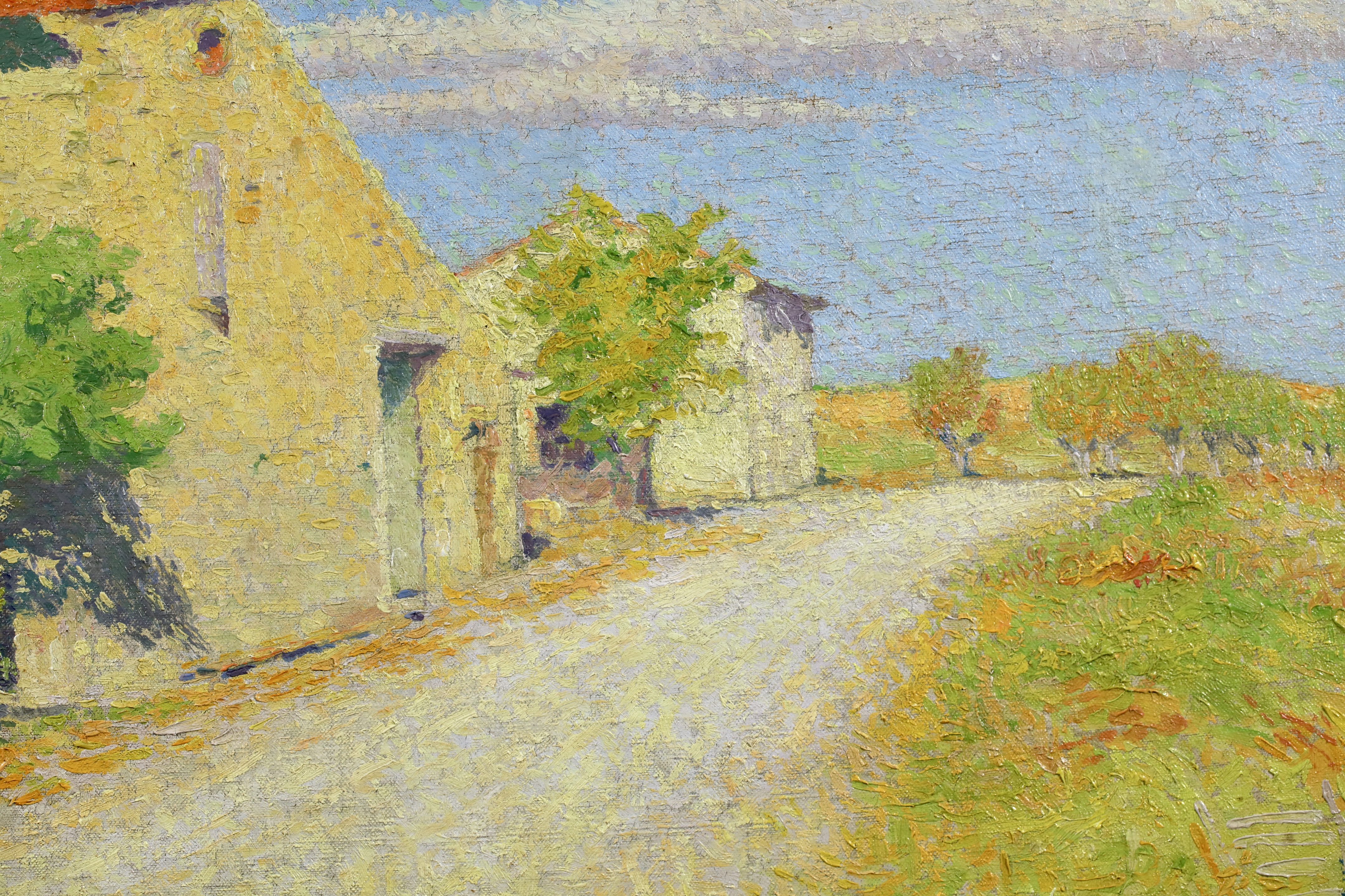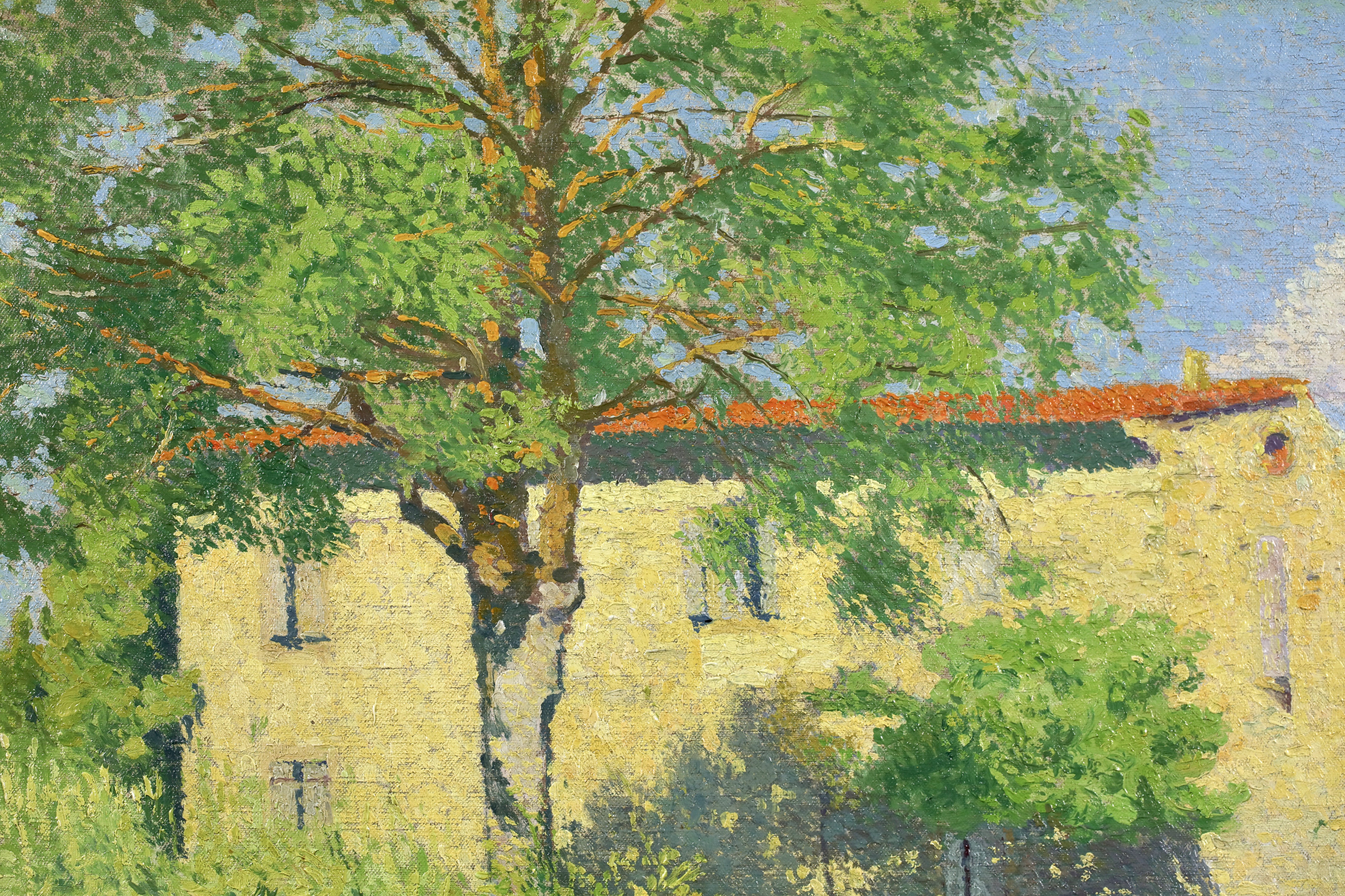 By the time he left Paris, Laugé had adopted the Divisionist touch championed by the Neo-Impressionists, and adhered to it more or less closely throughout his career. From 1905, in order to paint in situ, he procured a studio-caravan. For several years from 1916 onwards he had a base in Alet (Aude) and from 1926 spent the summer months in Collioure. From 1932 he had a studio in Paris and lived next door to his friend Bourdelle. In 1913 and 1926 he produced tapestry designs in response to commissions from the Gobelins tapestry manufactory.