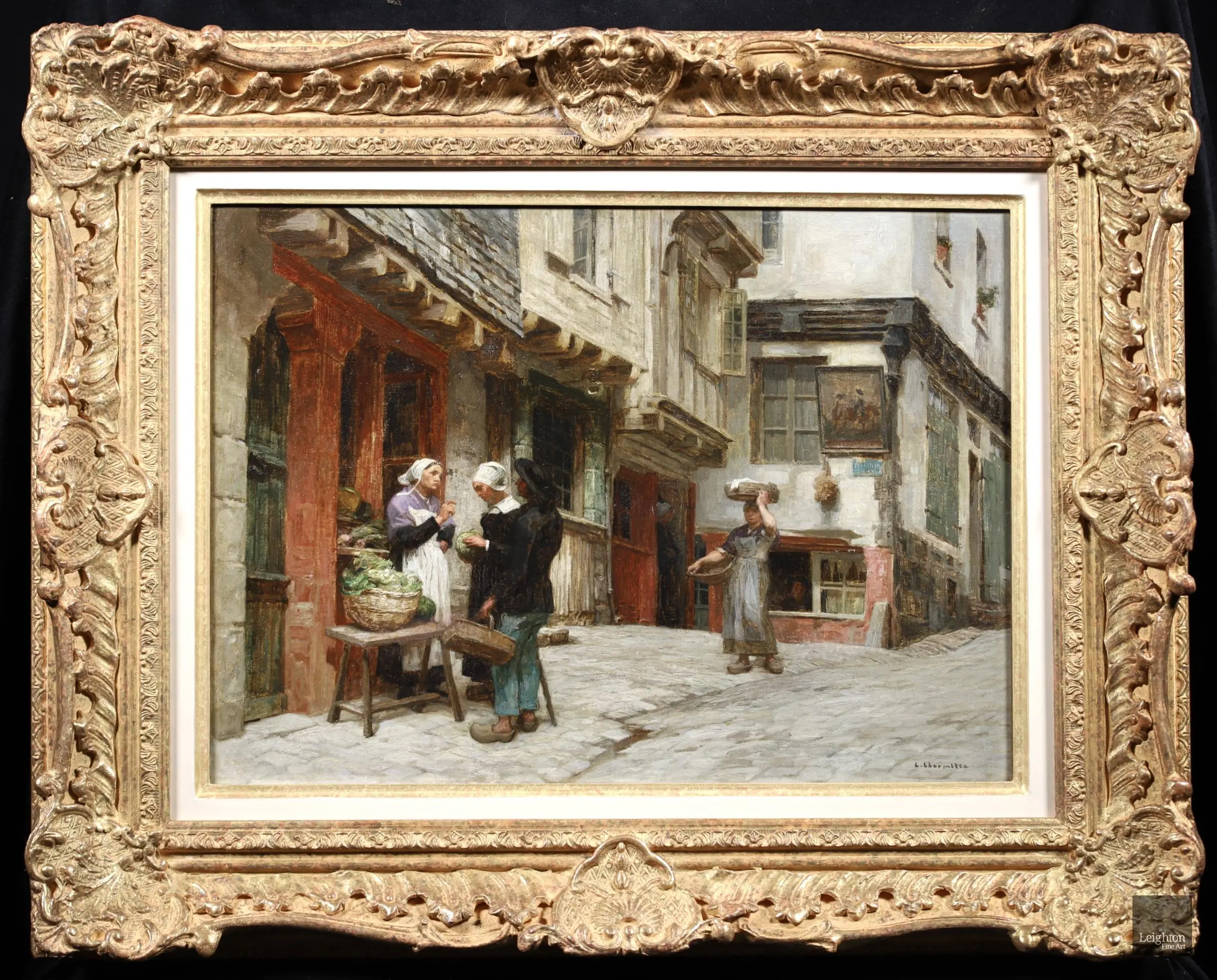 Likely with the Dudley Gallery (London) c. 1875 - Lhermitte submitted a number of views of Morlaix to the Dudley Gallery for exhibition in 1875