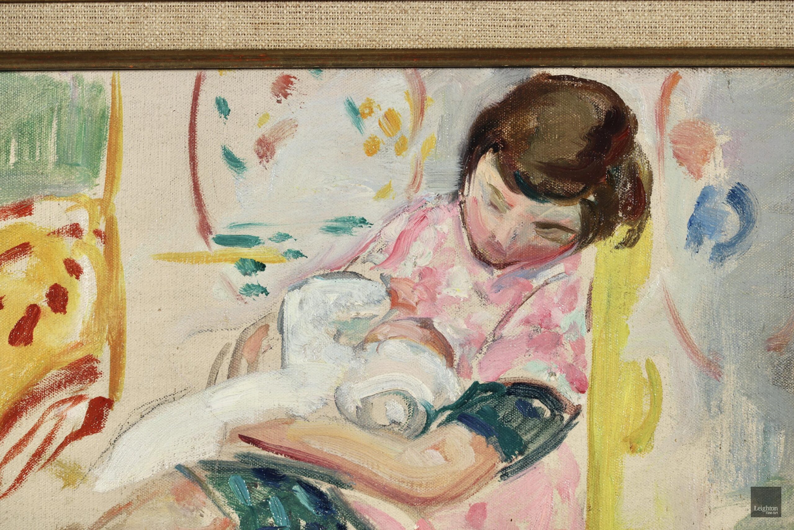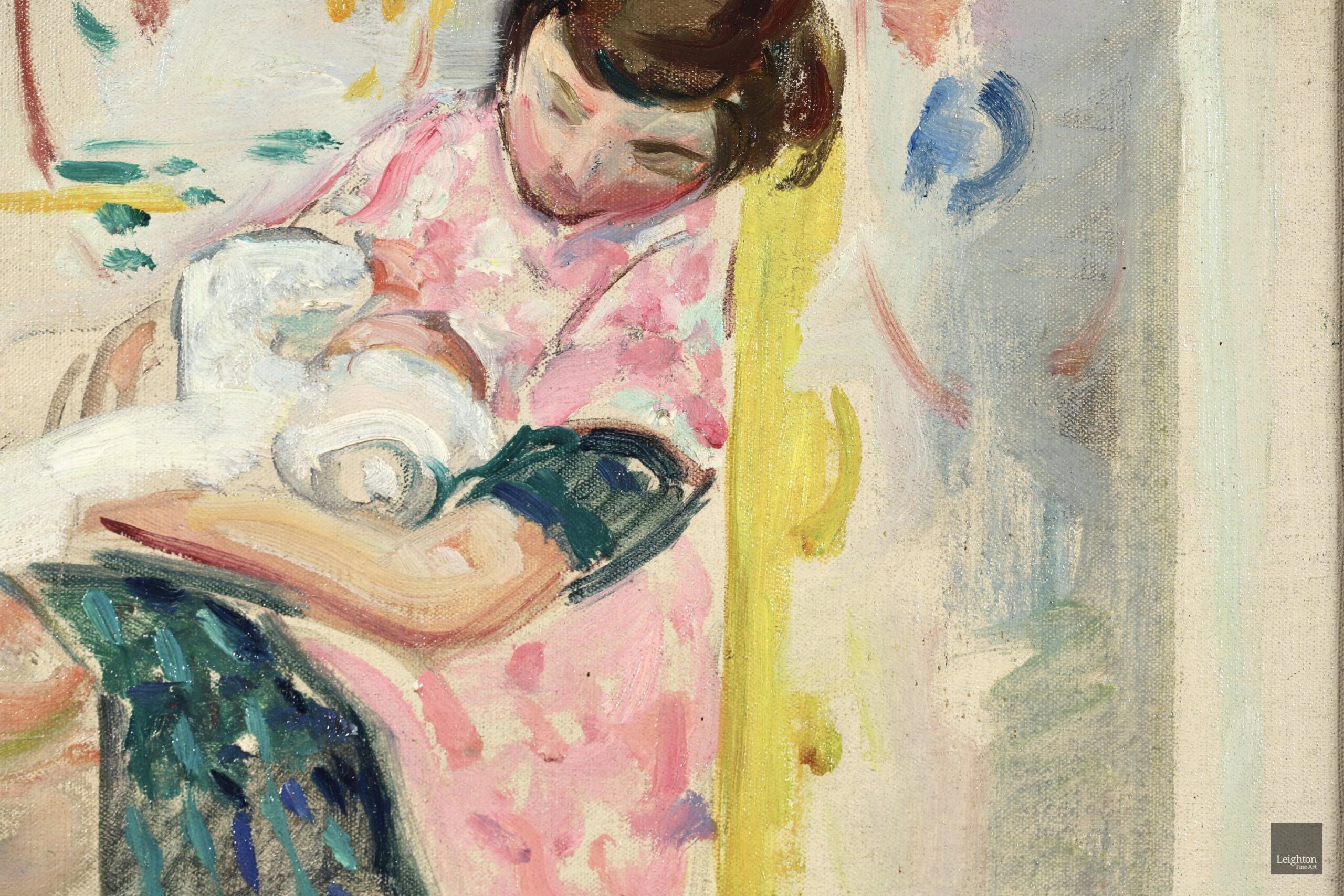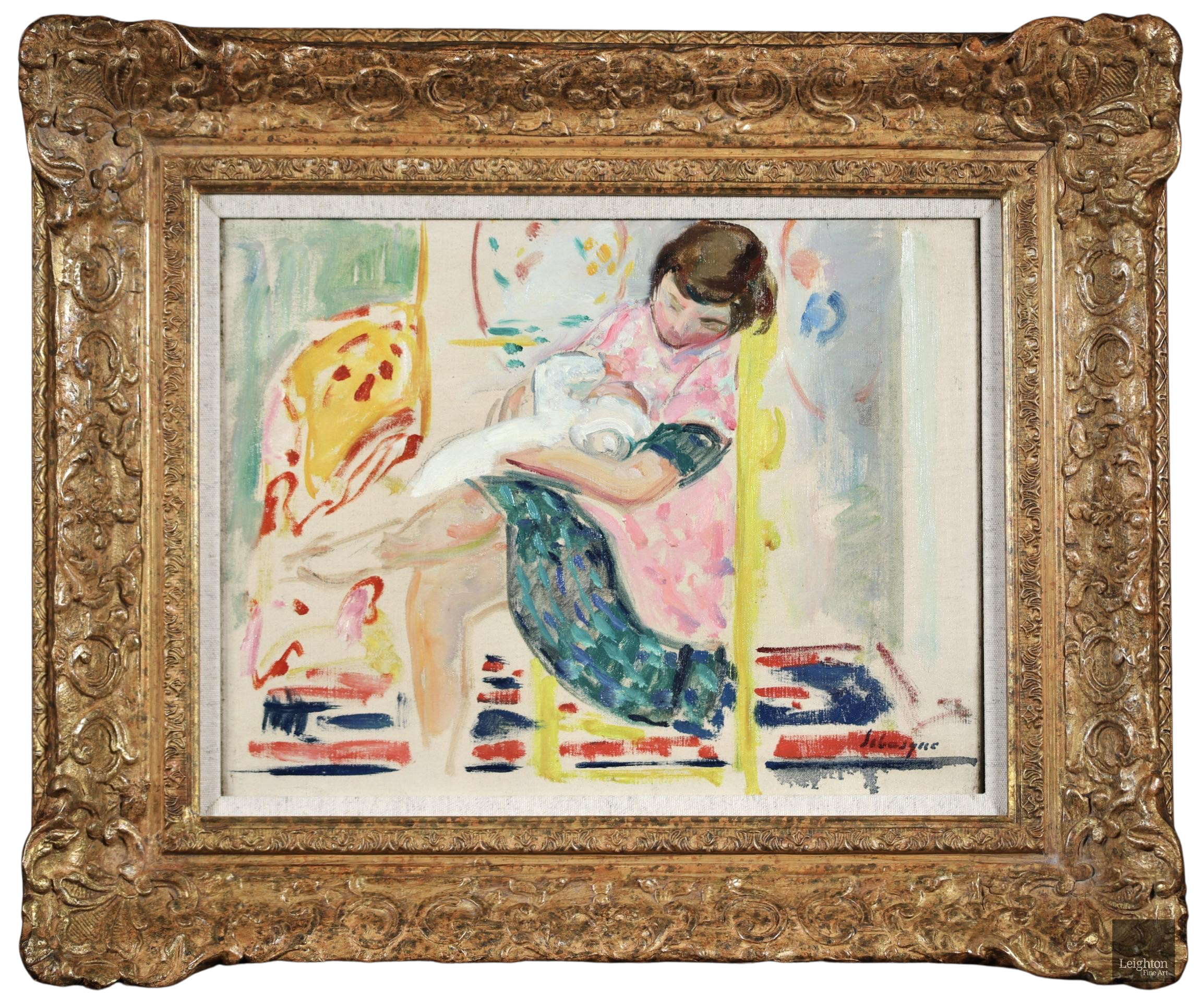 He painted members of his family in the settings in which he lived, mostly in Provence. His work shares some themes of his friend Bonnard. But although he exhibited with the Fauves, and admired Matisse, Rouault, Dufy, Valtat and Manguin (who introduced him to the Midi), he remained distinct from them in style. Lebasque was well known in his lifetime. He collaborated on the decorations of the Théâtre des Champs-Élysées and of the Atlantic liner Paris. He is remembered for: Nymphs at their Bath; The Sunshade; Girl with Hydrangeas; Great Nude on a Pink Sofa.