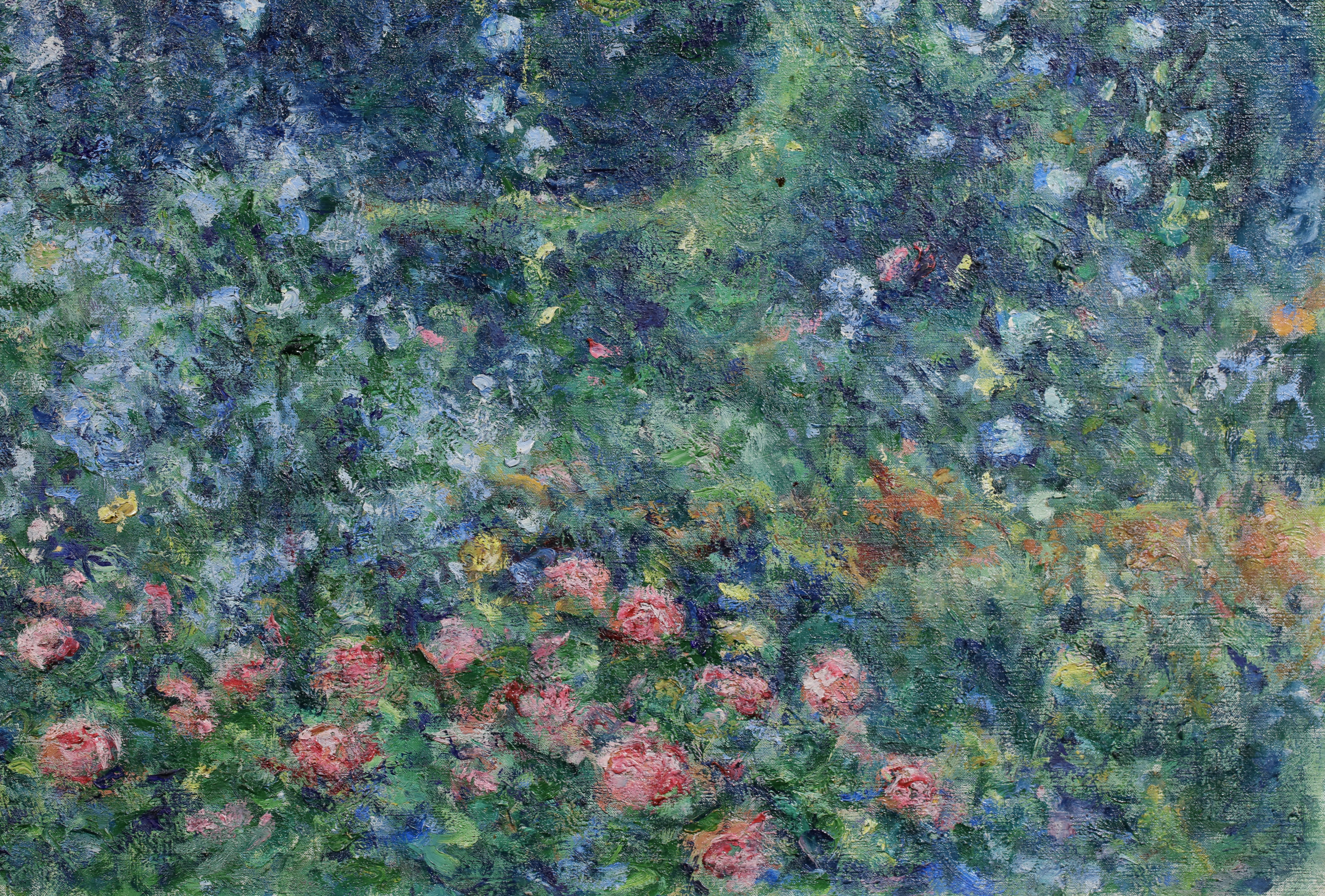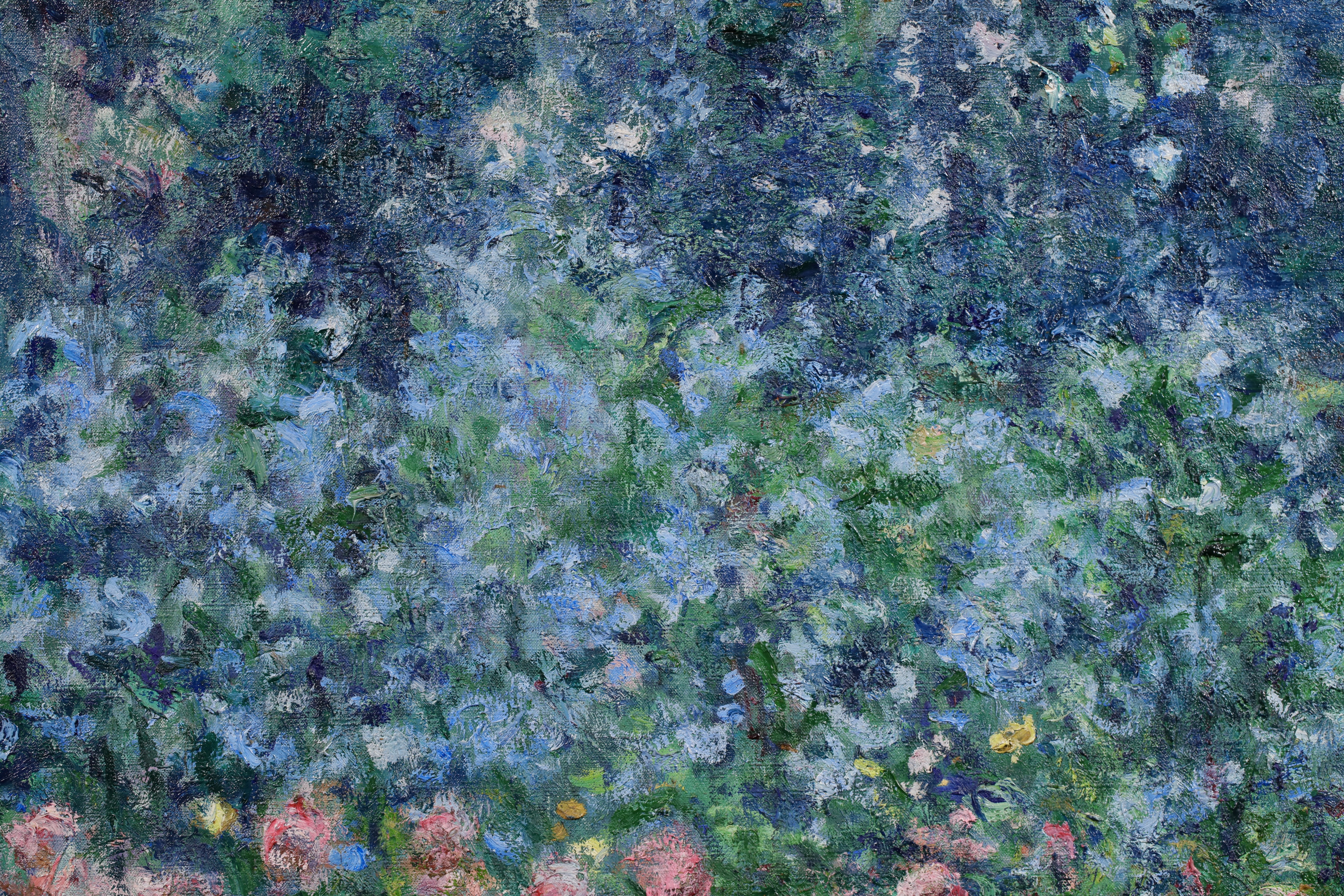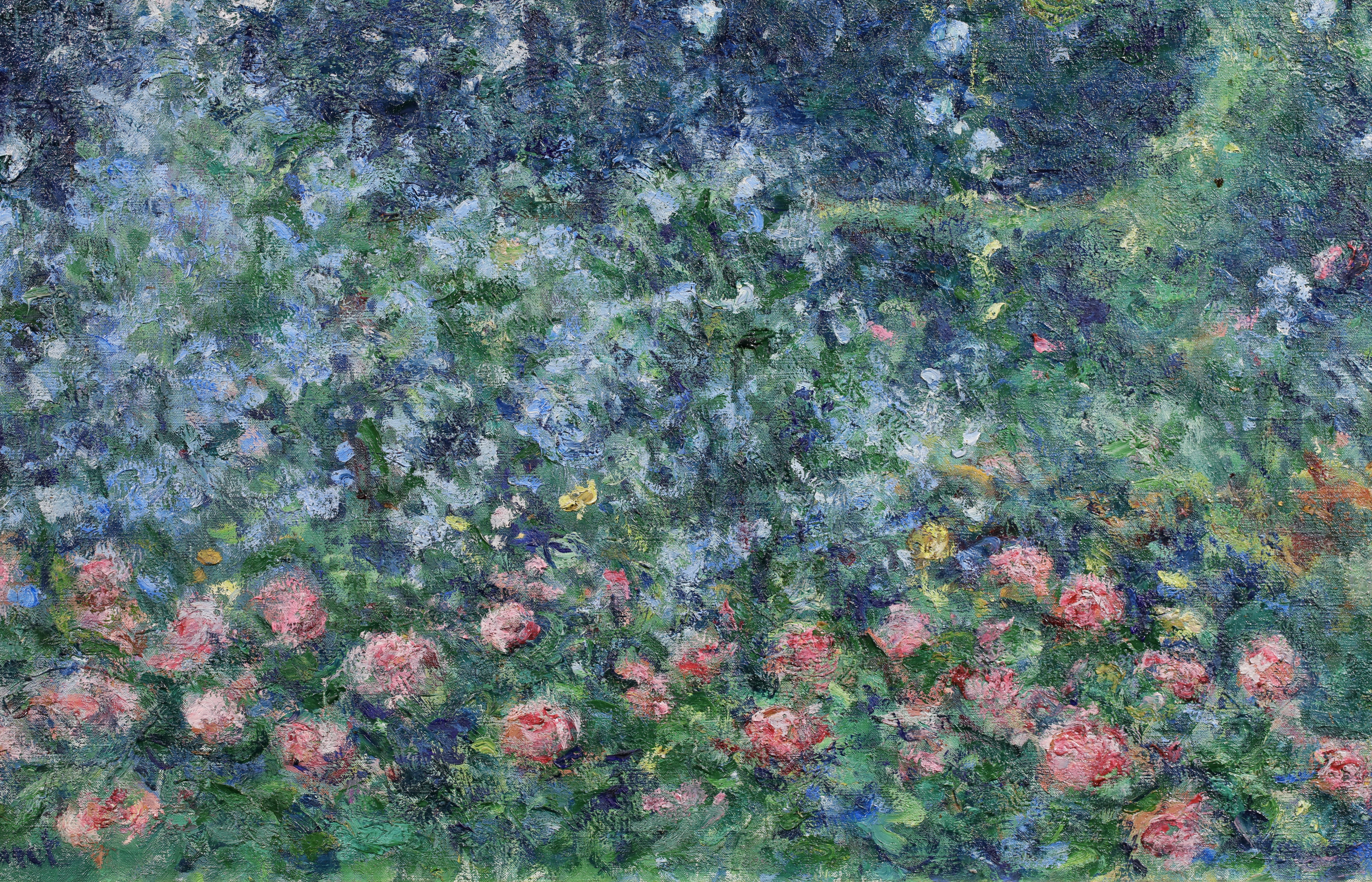 This work depicts rosebushes and plumbagos in the garden of her father's house at Giverny.