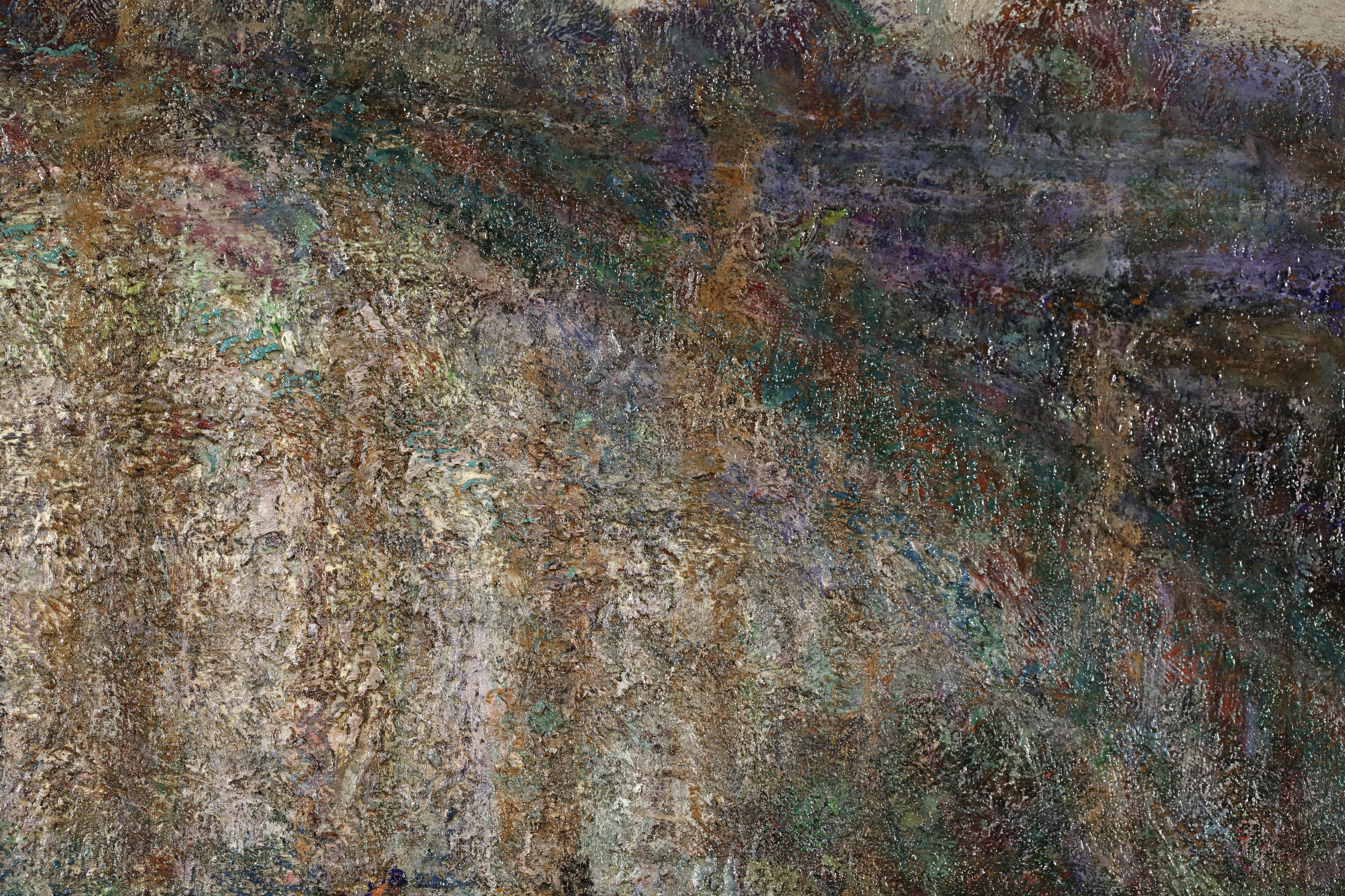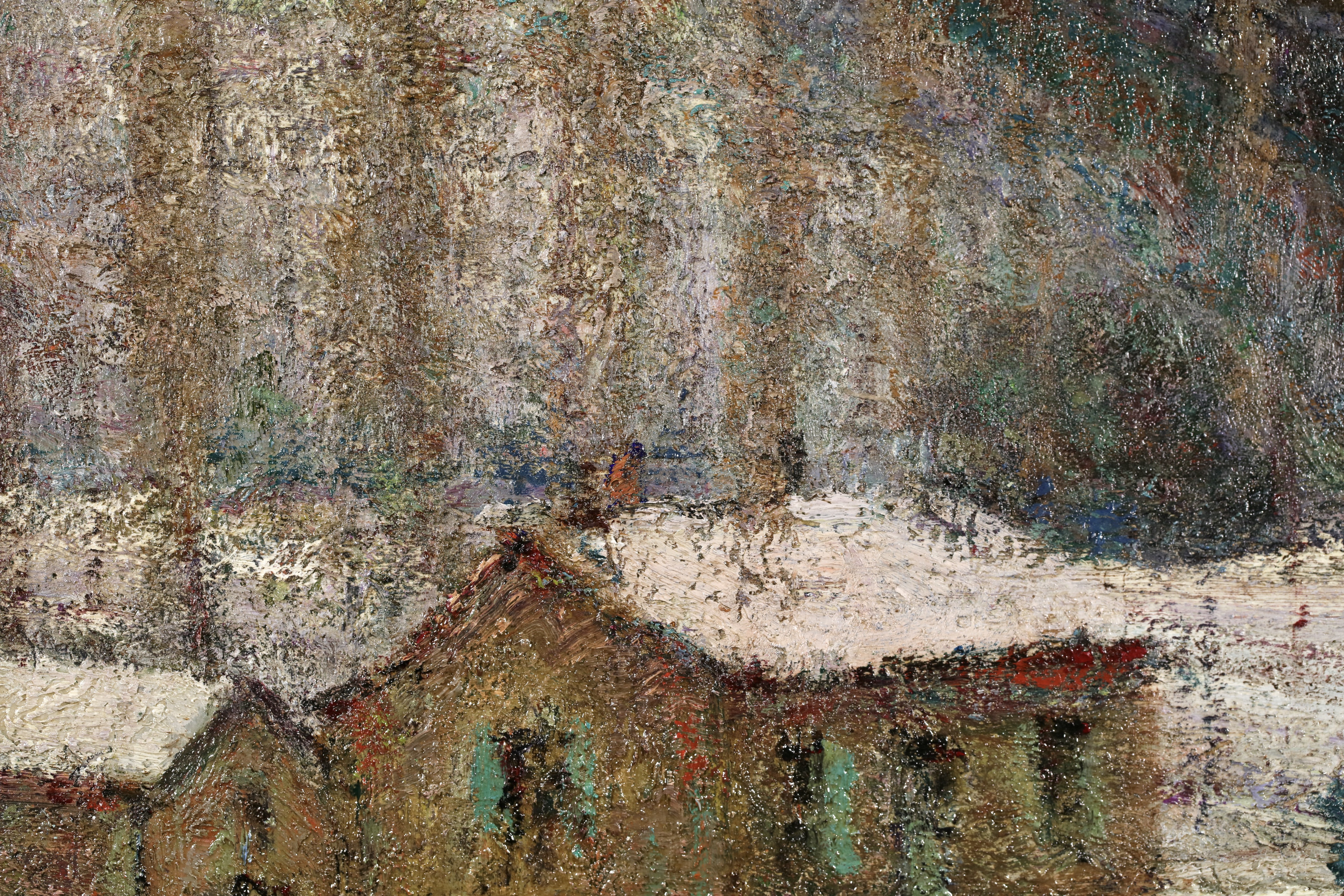 Charreton was a landscape artist in the Lyons tradition with a love of sensual impasto. In his works he seeks to capture fleeting, momentary effects, like those achieved by the Impressionists: effects at different times of day and in different seasons, such as dusk and snow. As a young man he painted the environs of Bourgoin, but his marriage in 1893 took him to Auvergne where he painted the characteristic landscapes of the region. Landscapes of Auvergne make up approximately two-thirds of his output. What became known as the School of Murols, named after a village in Auvergne, was principally formed around him between 1910 and 1925. Skilled in capturing minute changes in the weather, he was also adept at capturing the spirit of new places. Beside his native Dauphiné and his adopted Auvergne, he was also charmed by the landscapes of the Île-de-France and Paris - Montmartre, the Jardin du Luxembourg and the Parc Montsouris - and also Provence, Creuse and Brittany. However, no trace has been found of his trips abroad. It would be a misjudgment to think that he only painted pretty picture-postcard scenes in the regions he visited; on the contrary, he would seek out the intimist qualities of a place, choosing perhaps a quiet hamlet, with a humble bridge over an anonymous stretch of water, or an ordinary tree outside a tumbledown house. He would paint blazing autumn landscapes, with a sumptuous colour palette, but also favoured snowy scenes, their exact chromatic opposite. At the start of his career he would paint dusky scenes and contre-jours in halftones and misty sunsets. As his artistic development progressed, he attached more and more importance to light and colour. In this respect his work follows on from that of Ravier and, like Guillaumin, it is almost a precursor to Fauvism, or alternatively can be regarded as complicit with it, like the work of Maurice Marinot. His brushwork evolved in tandem with his use of colour, which became ever more vibrant; for example his fondness for purple hues and later his striking colour contrasts. His brushwork became more conspicuous and he would suppress the insignificant details in order to bring out the forms that made up the general composition. Among art historians he is not ranked alongside the innovators who succeeded the Impressionists, like Gauguin, Seurat, Van Gogh or Cézanne. Older than Matisse, who was himself already by far the eldest of the Fauves, Charreton stopped short of what he considered to be their excesses. He placed himself at the crossroads between two centuries: the end of the century of Impressionism and the start of the leaps made by Fauvism. His life and the major themes in his work are evidence of this, but he decided to be a regional painter; as such, his talent and qualities are clearer than they may otherwise have been if he had chosen a more ambitious career. Beside his painting, he also wrote a play in three acts entitled The Montrouge Well ( Le Puits de Montrouge), which was performed in Bourgoin in December 1883.