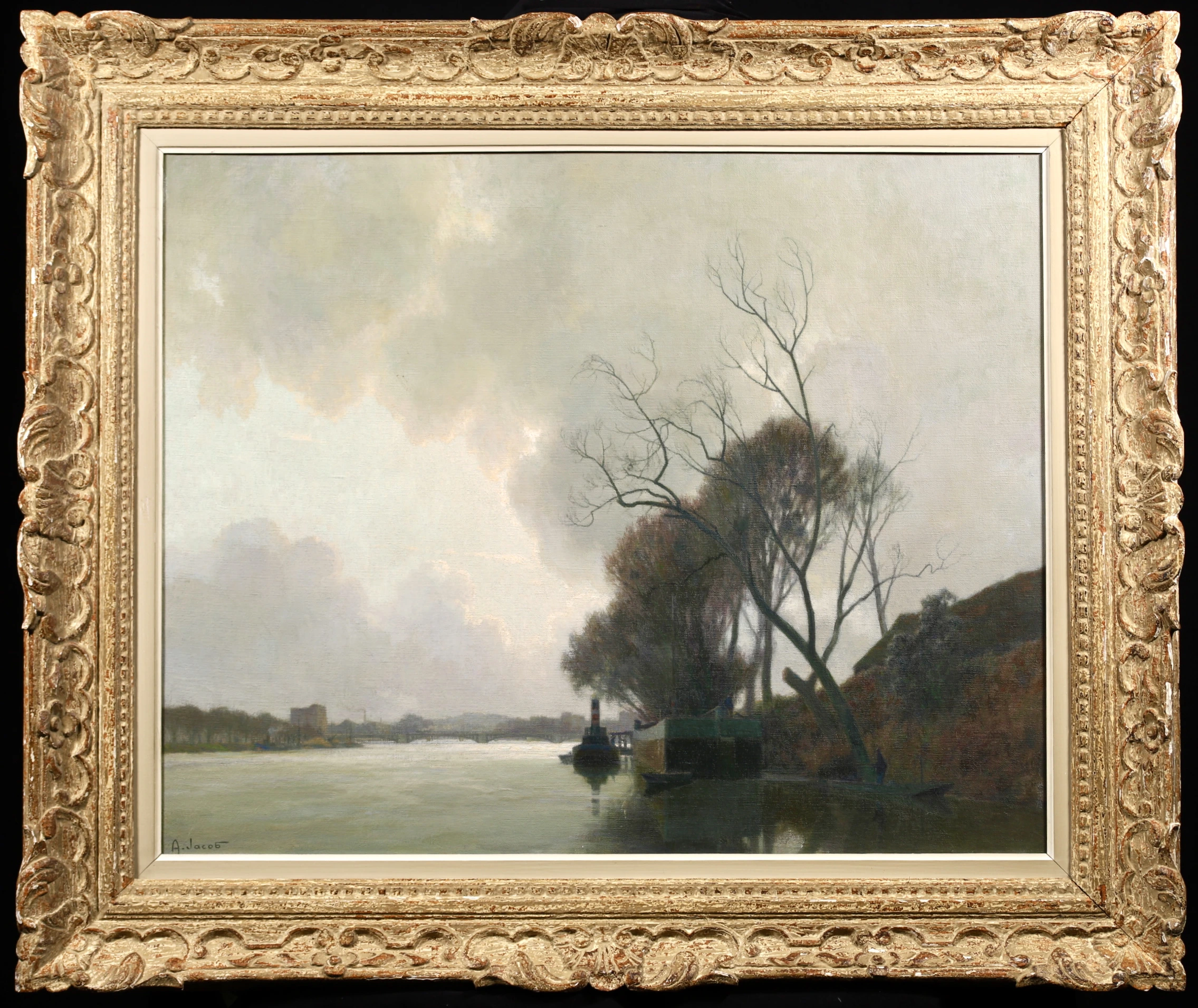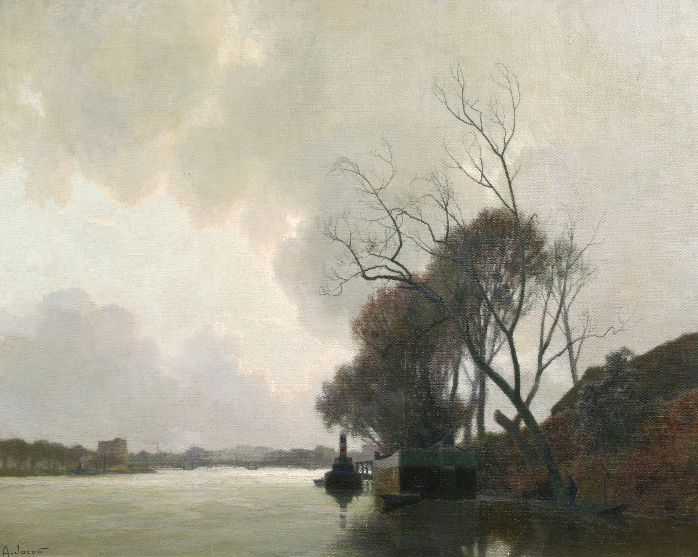 Jacob was a pupil of Eugène Claude. He was noted for his effects evoking the light of dawn and dusk. From 1899, he exhibited in Paris at the Salon des Artistes Français, of which he became a member in 1902. He received an honourable mention in 1908, a gold medal hors concours in 1914 and a gold medal at the Exposition Internationale in 1937. He exhibited there until 1950. He also showed at the Salon d'Hiver, the Salon des Aquarellistes, as well as in private galleries.