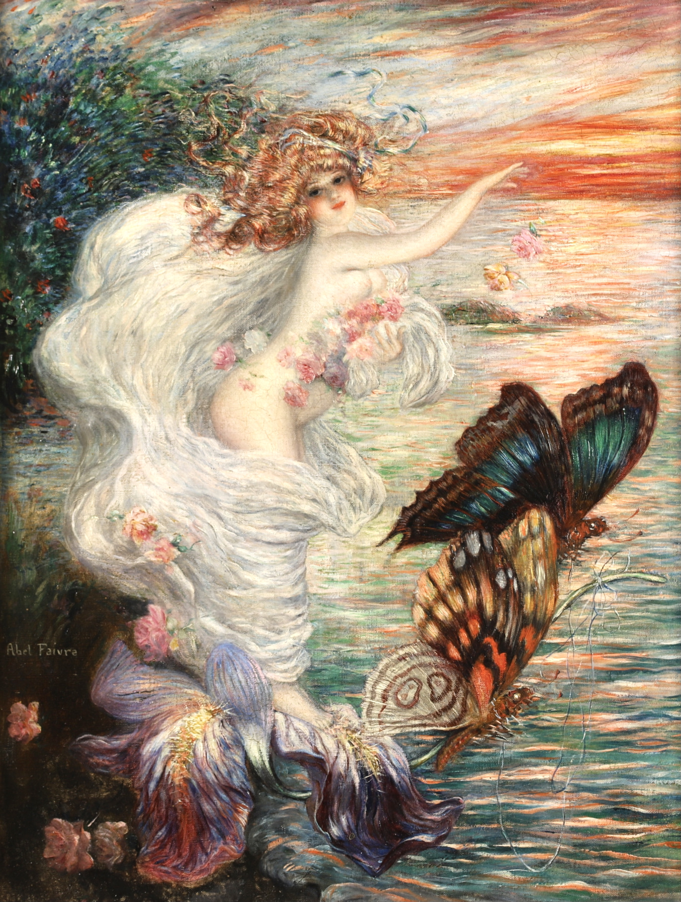 Abel Faivre was a pupil of Jean-Baptiste Poncet at the École des Beaux-Arts, Lyons, which he entered in 1886, and then of Benjamin-Constant and Jules Lefebvre in Paris. He also received advice from Renoir. He exhibited regularly at the Salon de Lyons, in 1899 with Return from Wagram, winning the Salon medal in 1897, and at the Salon de Paris from 1982, with Woman Musing in 1898, The Virgin with Children in 1899, Woman with a Fan in 1901, Child with a Book in 1906, and Portrait of Maurice Donnay in 1907. At this salon he won a third-class medal in 1894, and he was awarded an honourable mention at the Exposition Universelle of 1900 and the Légion d'Honneur in 1906.