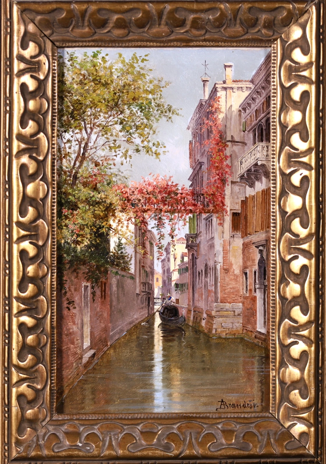 In 1876 and 1877 she exhibited three landscapes of Venice at the Promotrice Veneta, which sold to foreign collectors. In November 1877 Brandeis showed the large painting Palazzo Cavalli a Venezia at the exhibition of the Hungarian Fine Arts Society in Budapest. In both Florence and Budapest, Brandeis showed her work under the name “Antonio Brandeis”. The biographer De Gubernatis offers the following explanation for the change of name: “her first pictures received praise and criticism; she took the criticism, but when she was praised as a woman she was annoyed, and therefore exhibited under the name Antonio Brandeis.”