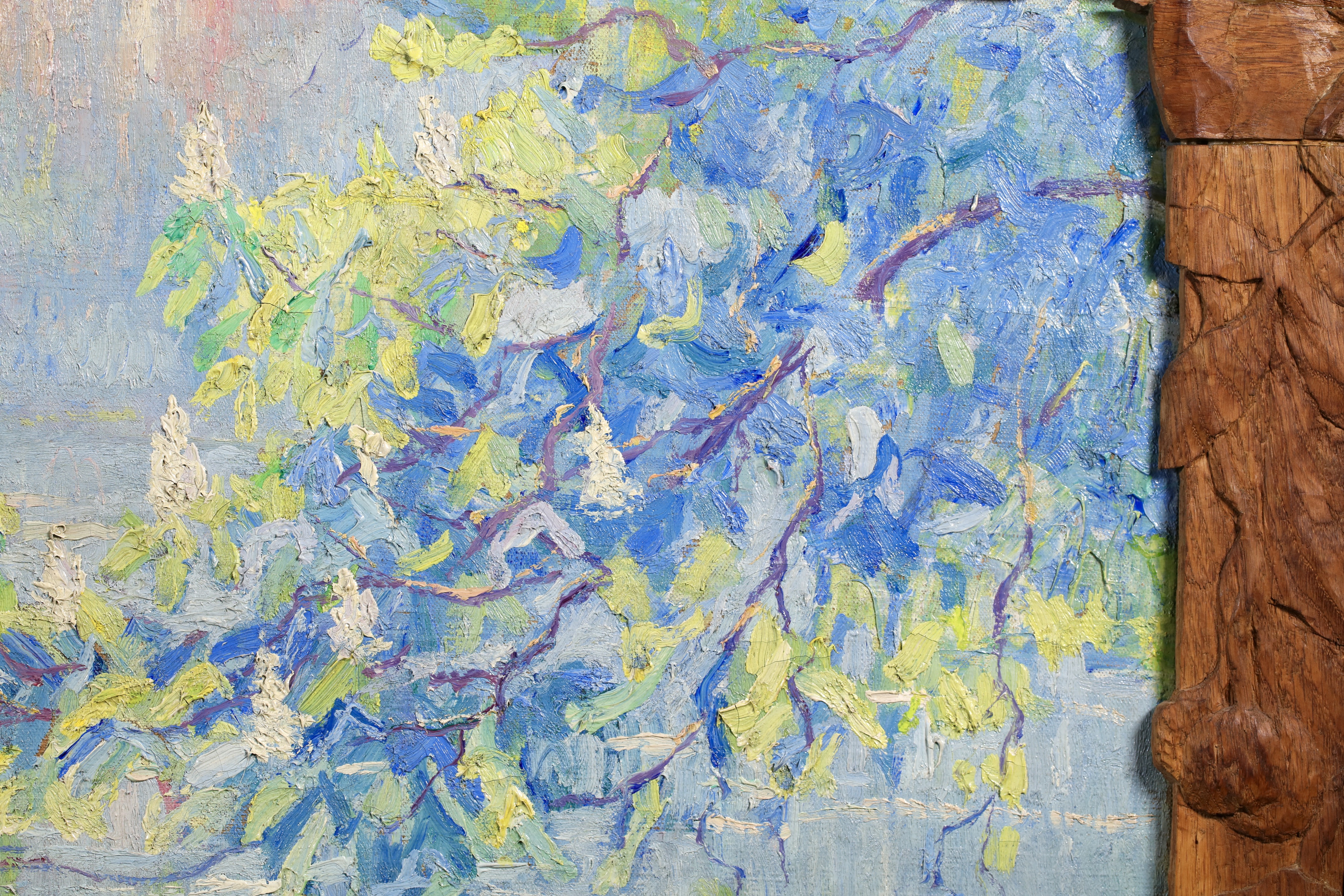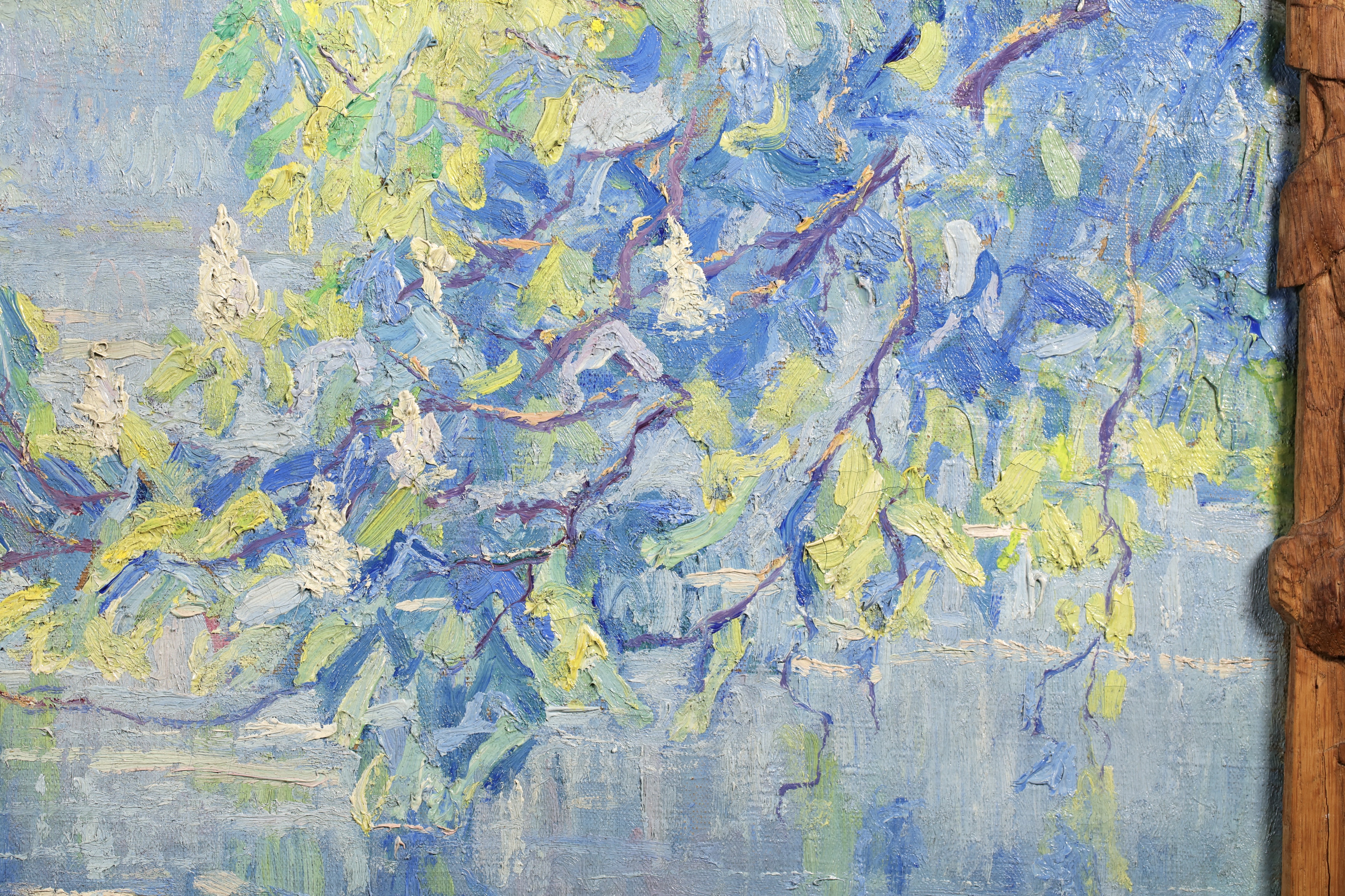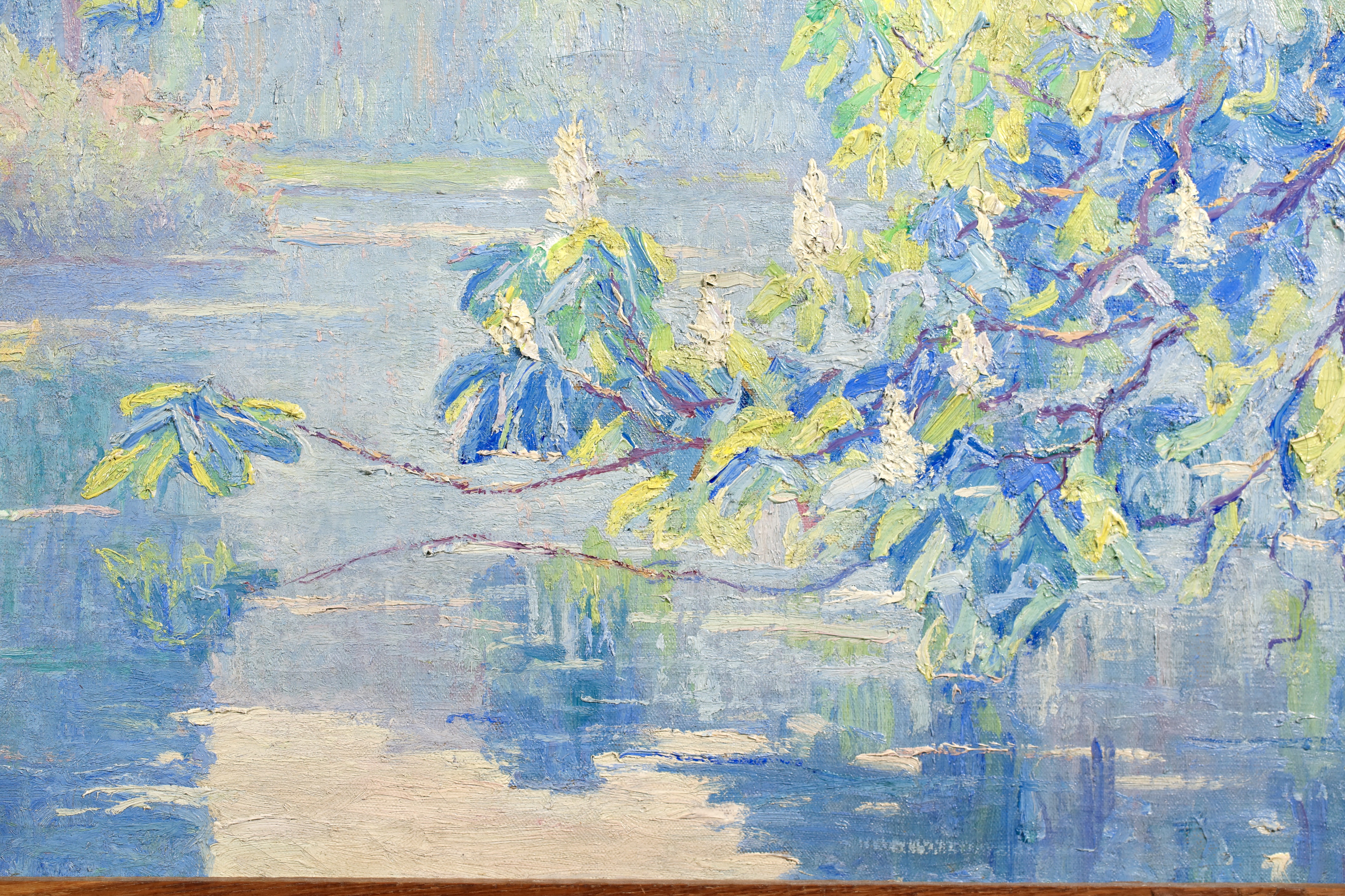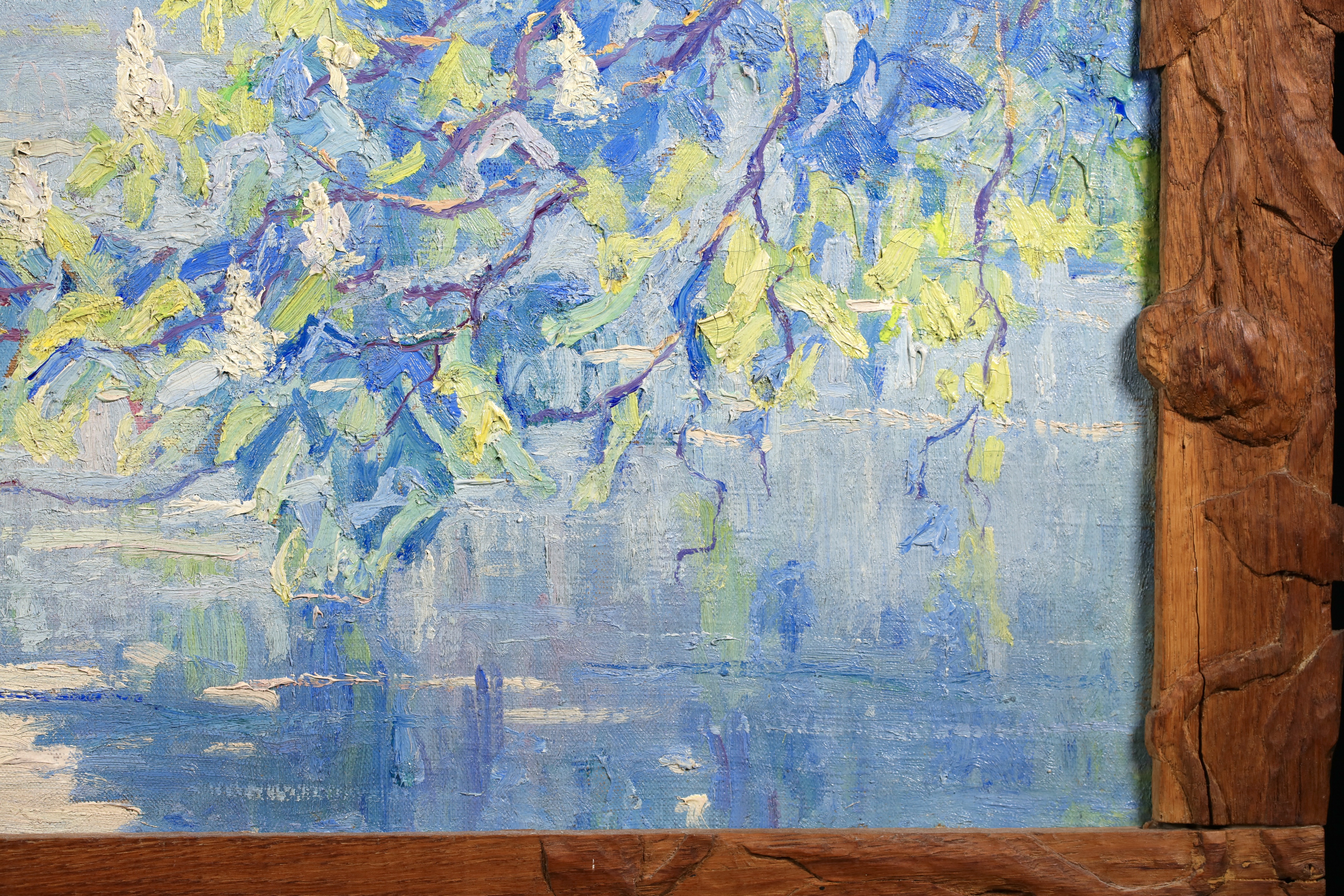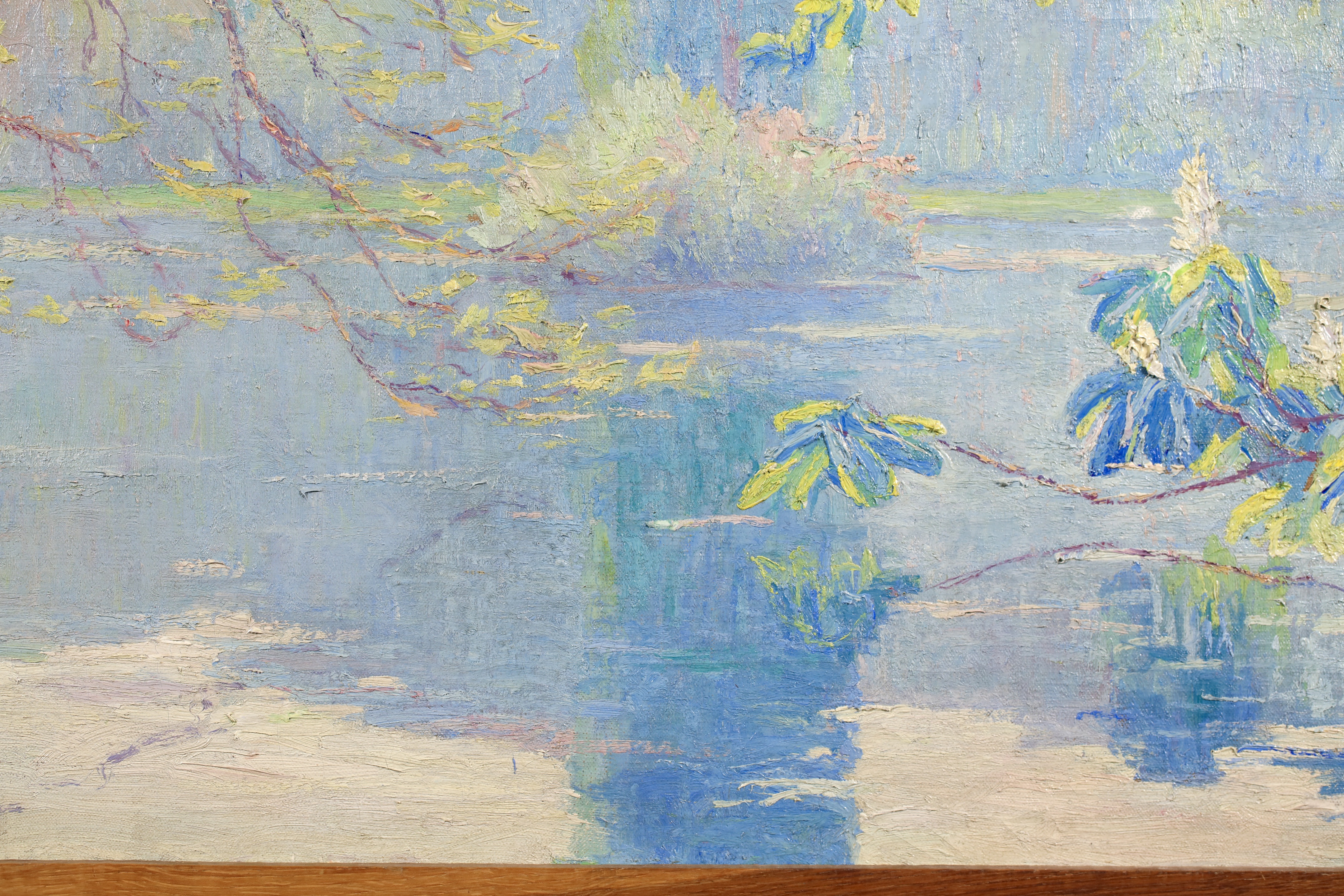 Literature: This work is housed in its original hand carved oak frame which was made by Menneret specifically for this work. Menneret was a sculptor as well as a painter. The frame is signed with the artists initials in the lower left corner.