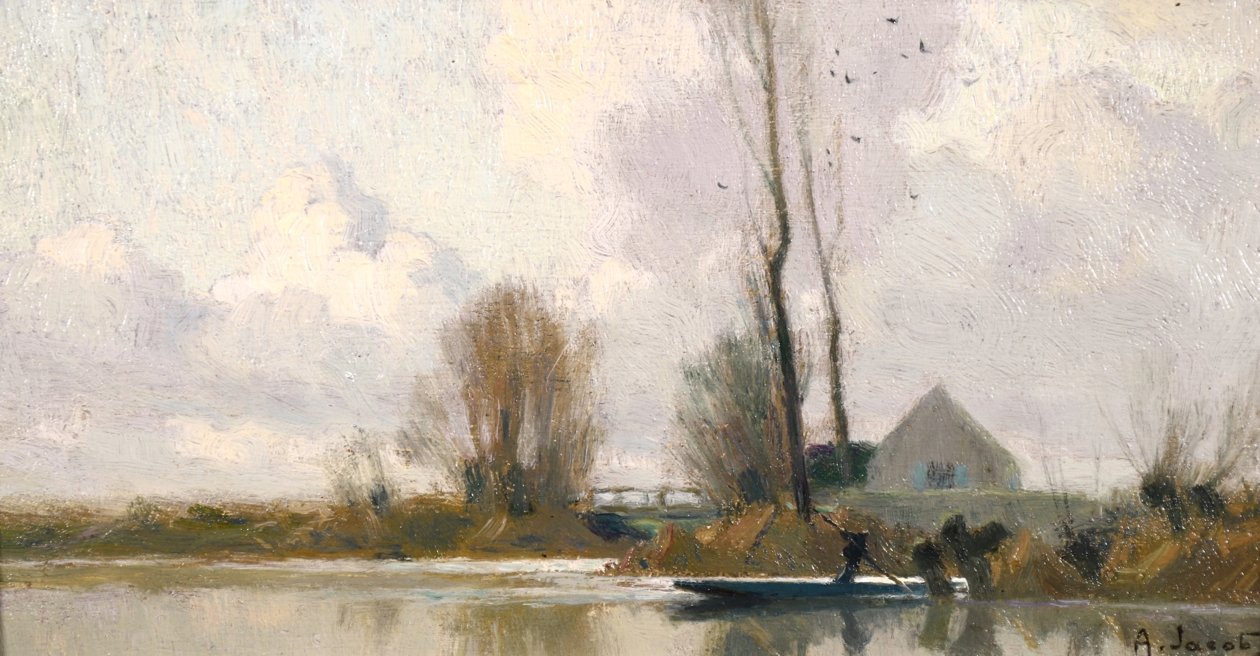 Jacob was a pupil of Eugène Claude. He was noted for his effects evoking the light of dawn and dusk. From 1899, he exhibited in Paris at the Salon des Artistes Français, of which he became a member in 1902. He received an honourable mention in 1908, a gold medal hors concours in 1914 and a gold medal at the Exposition Internationale in 1937. He exhibited there until 1950. He also showed at the Salon d'Hiver, the Salon des Aquarellistes, as well as in private galleries.