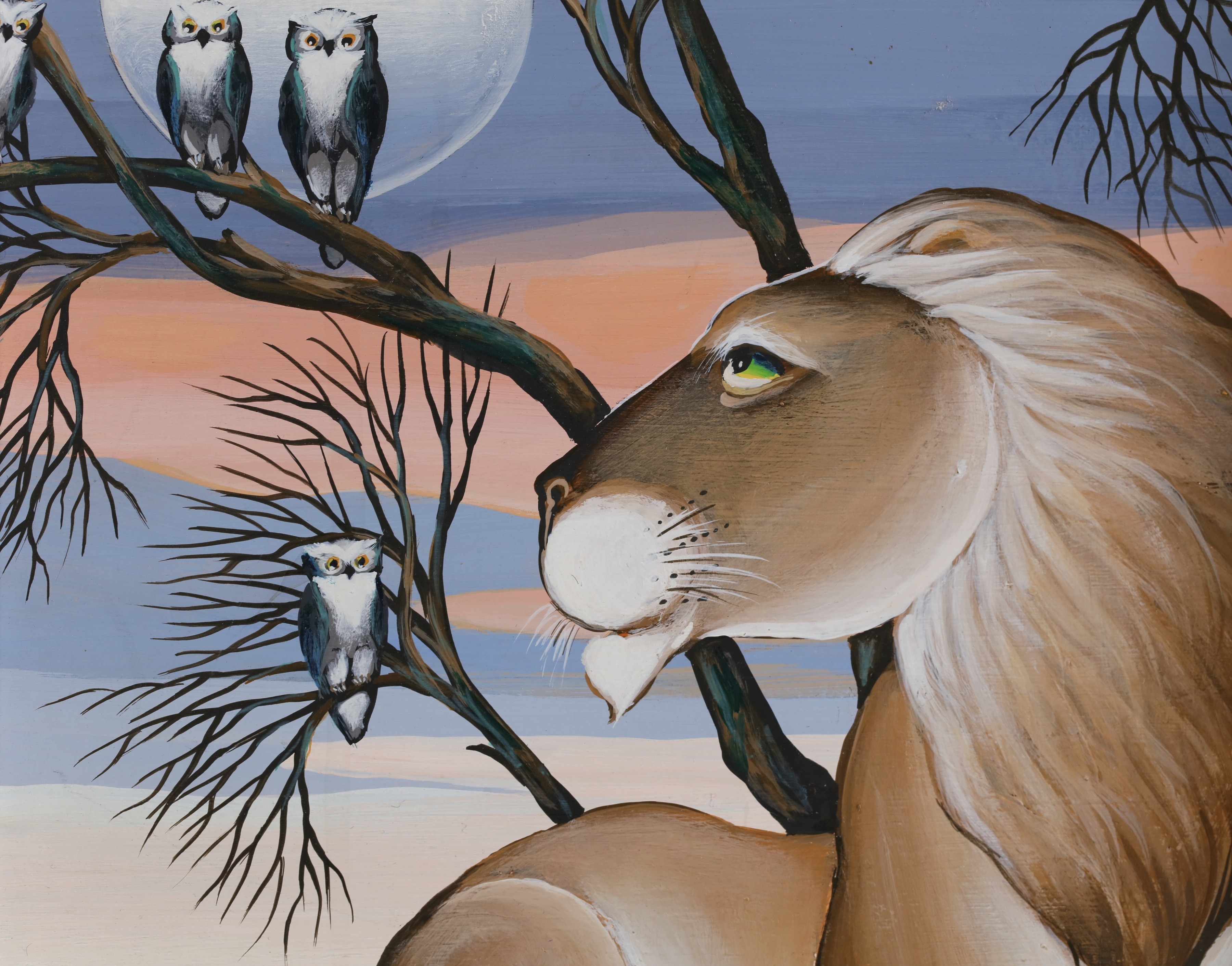 In 1977, the publication of his book “Jungle Fables”, for which he both wrote the text and executed the paintings, was a collection of rhymes on “Vice and Virtue” that gave a new dimension to his animals, making them more anthropomorphic and philosophical. Ringling Bros., Barnum & Bailey commissioned him to do the poster and the program for the circus that year. By 1981, Novoa’s paintings had changed again. His show, “The Grand Tour” sent his felines prowling the major cities of the world.