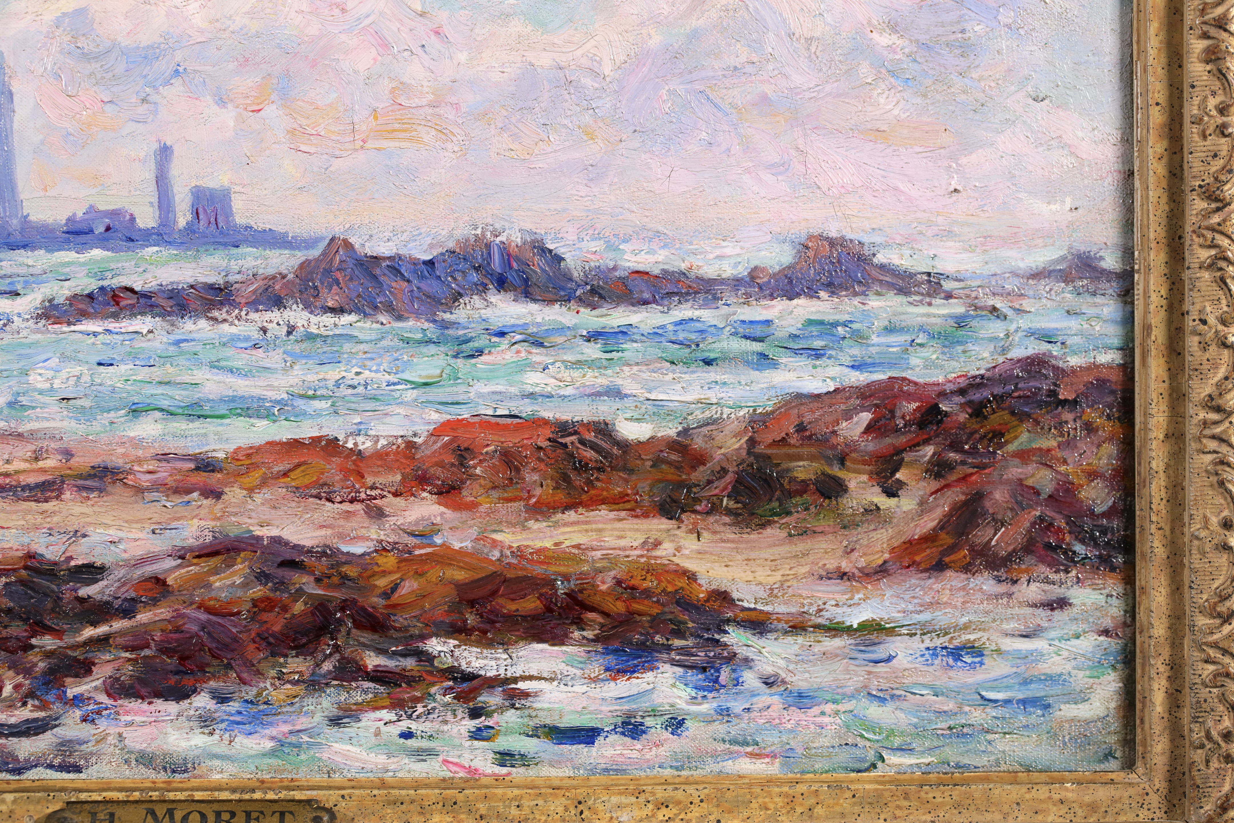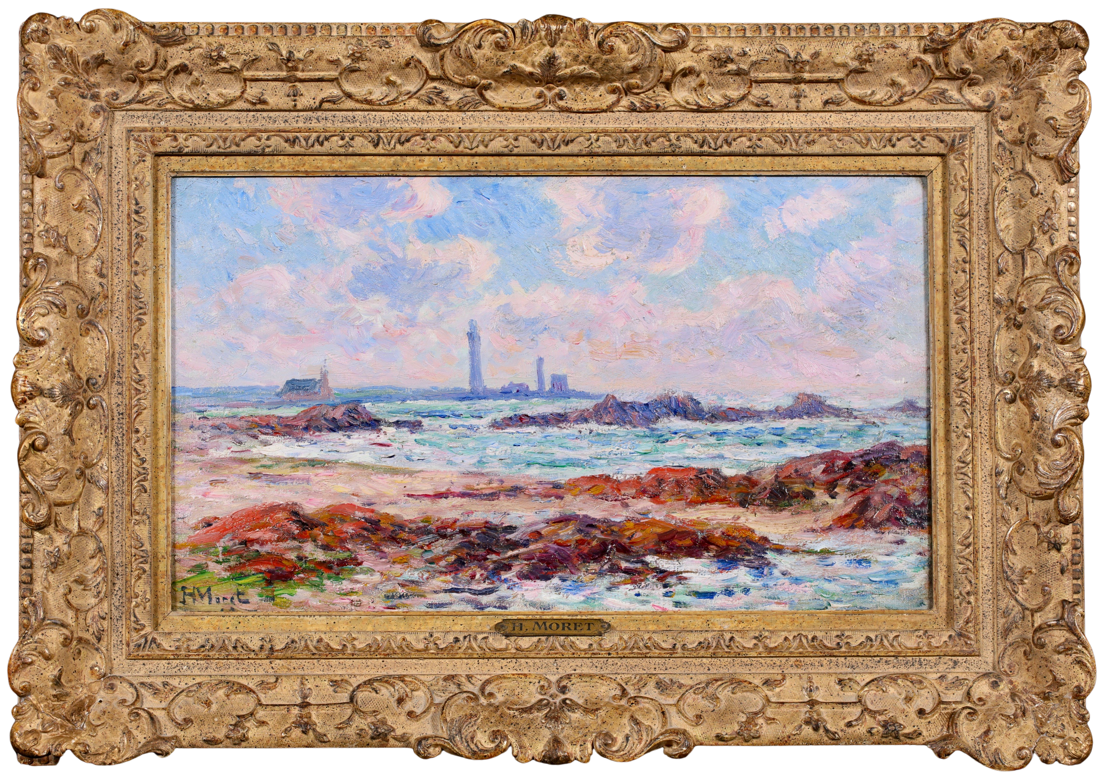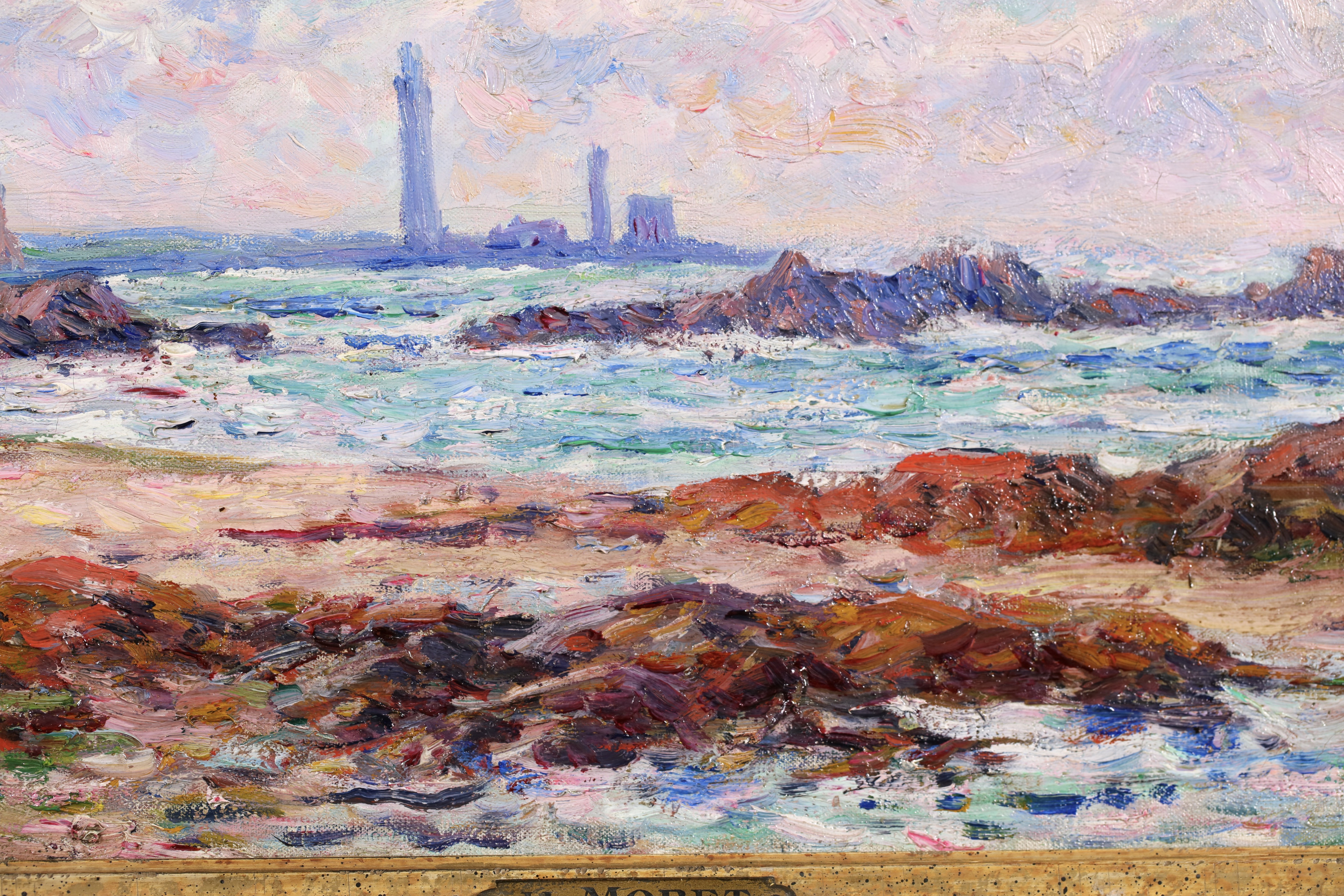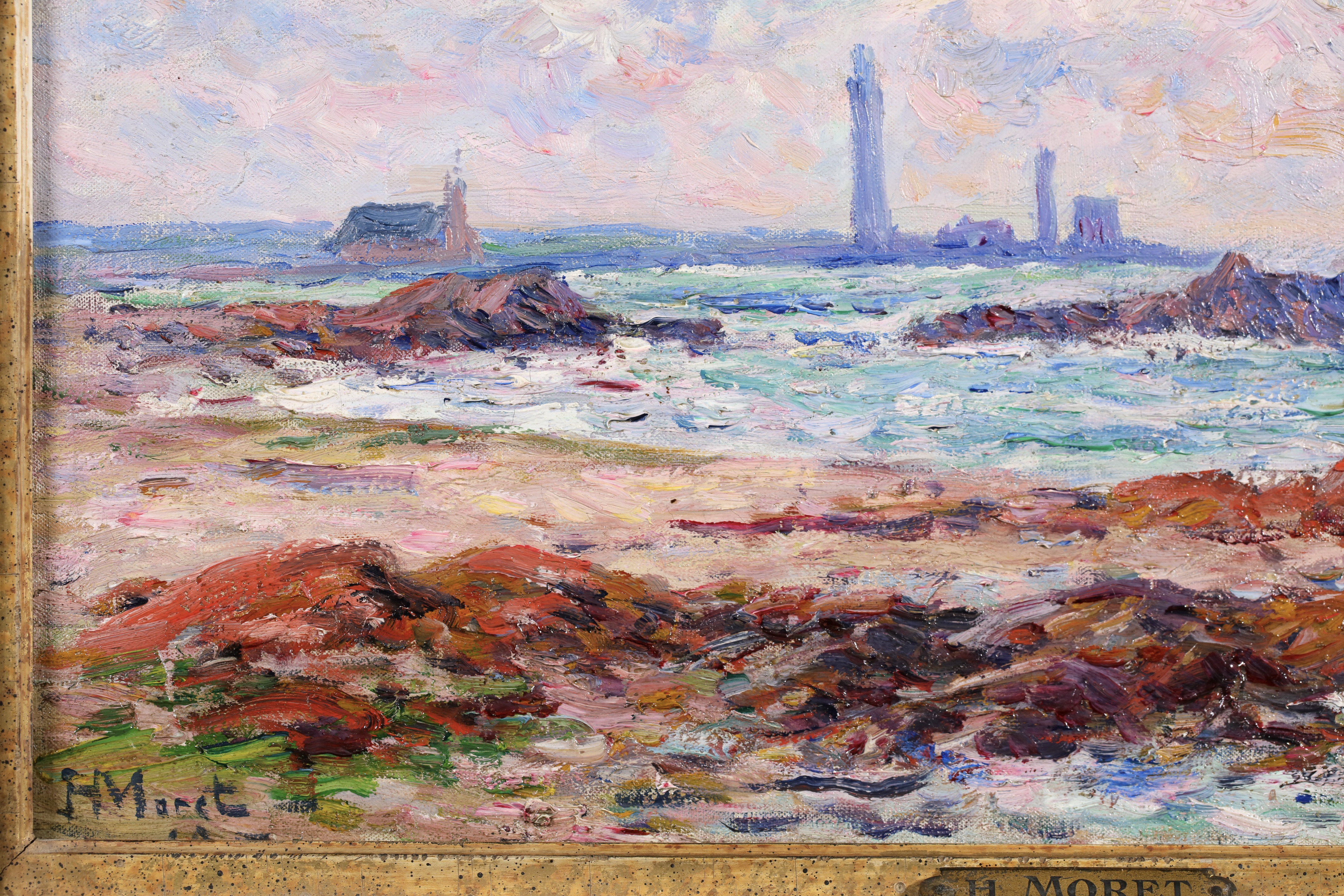 =Henry Moret lived and worked mostly in Brittany, interpreting the Breton landscape in an Impressionist style. He worked at first in Paris with Carolles and J.P. Laurens, but smitten by free art after beginning at the Salon in 1880, he abandoned academicism to live and paint as he wished, in the open air. He formed part of the group of young artists around Gauguin at Pont-Aven. Later, he travelled along the coast of Morbihan, from Ouessant to Belle-Île and from Belle-Île to Groix, observing local types, seaside people, peasants, and sardine fishermen, making numerous sketches and studies. He settled at Doëlan and concentrated primarily on maritime themes, portraying the sea in all its aspects and the human activities revolving around it.