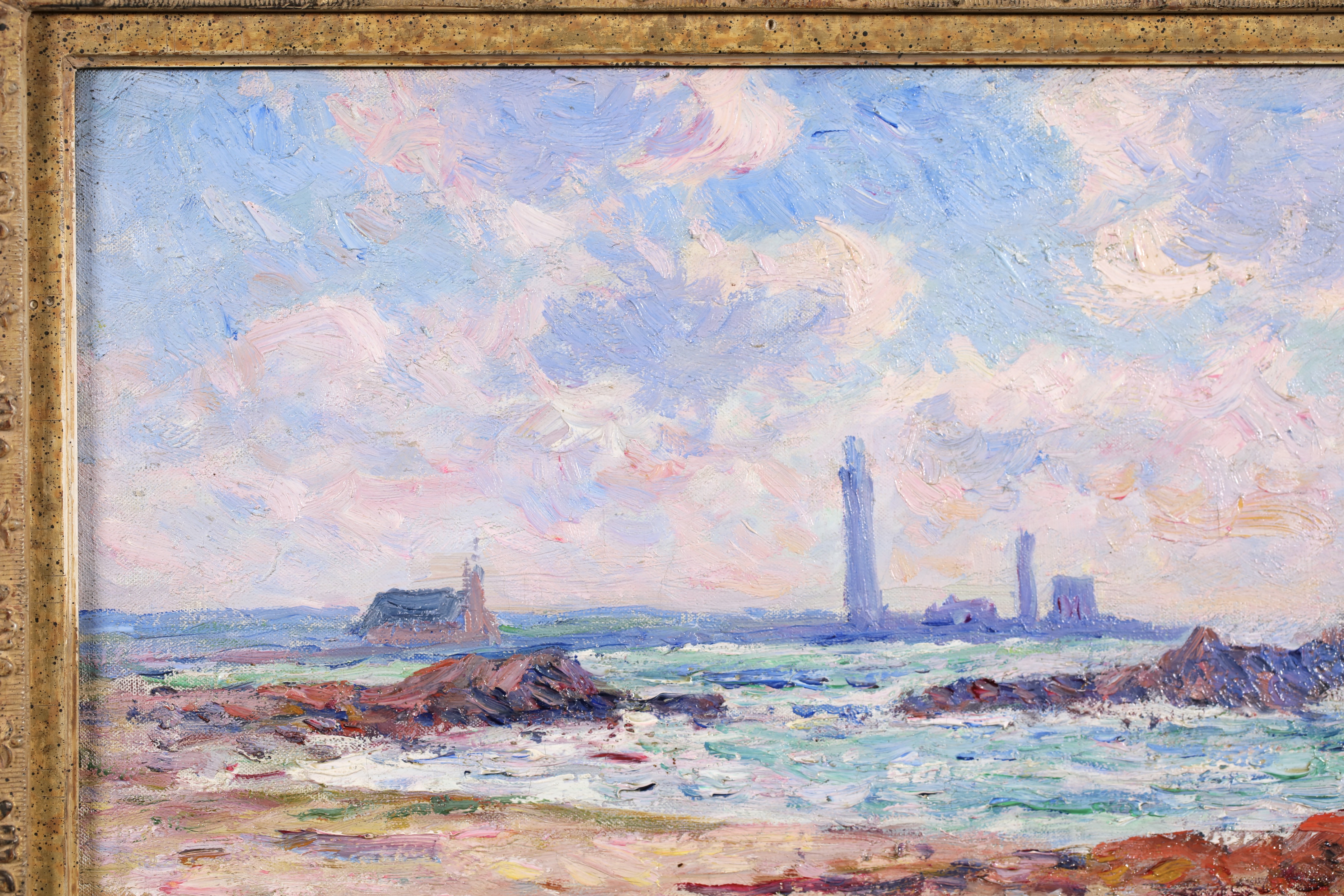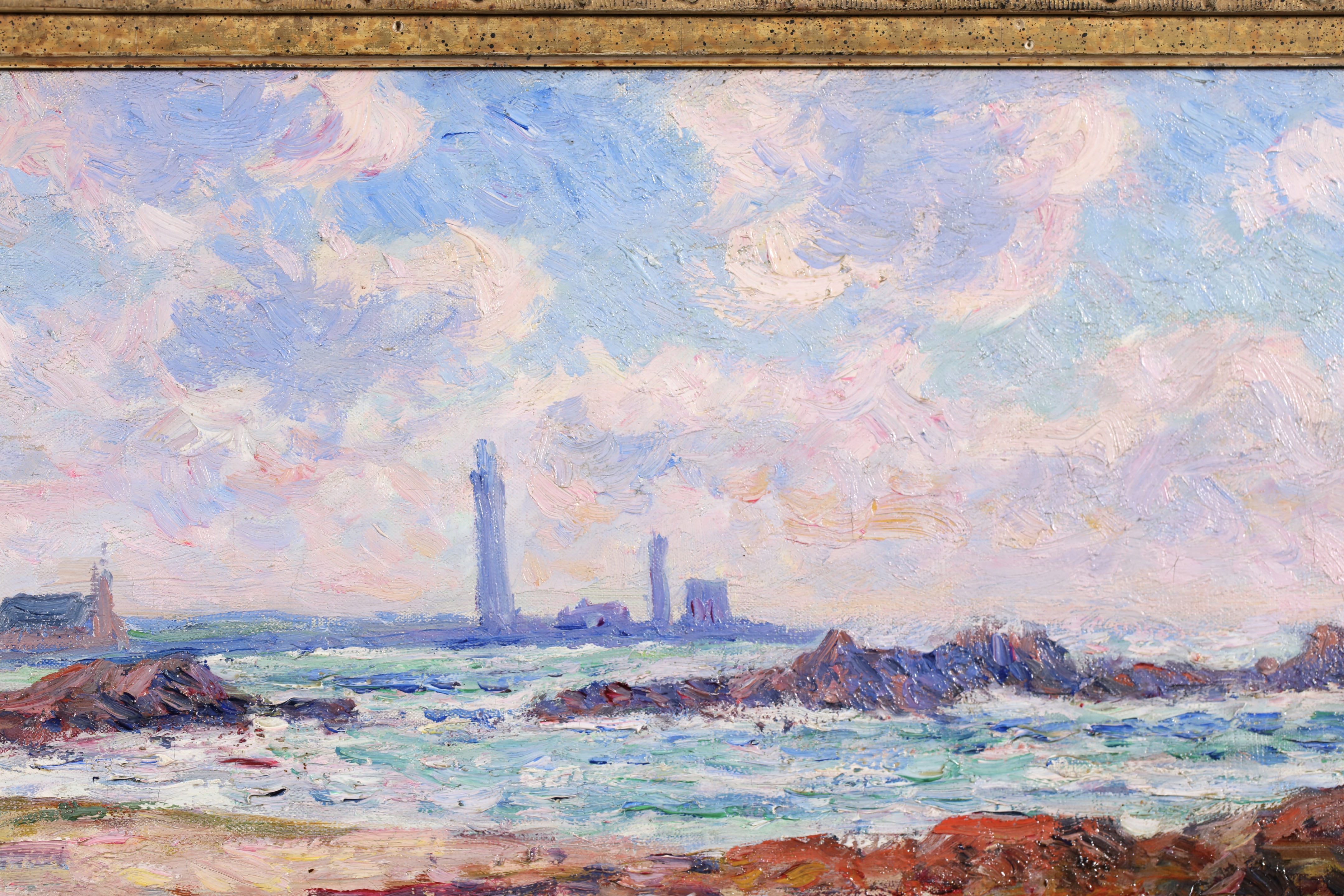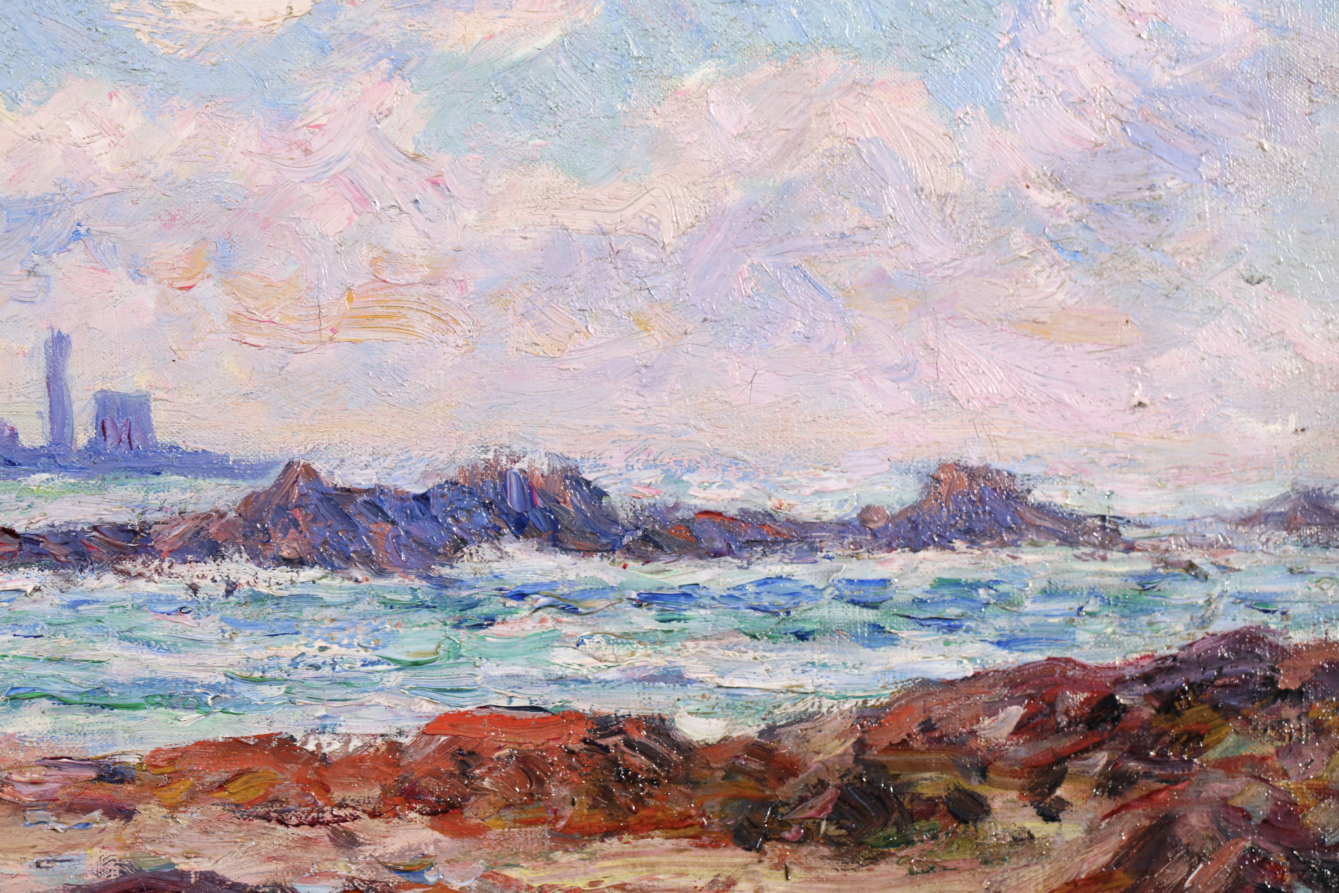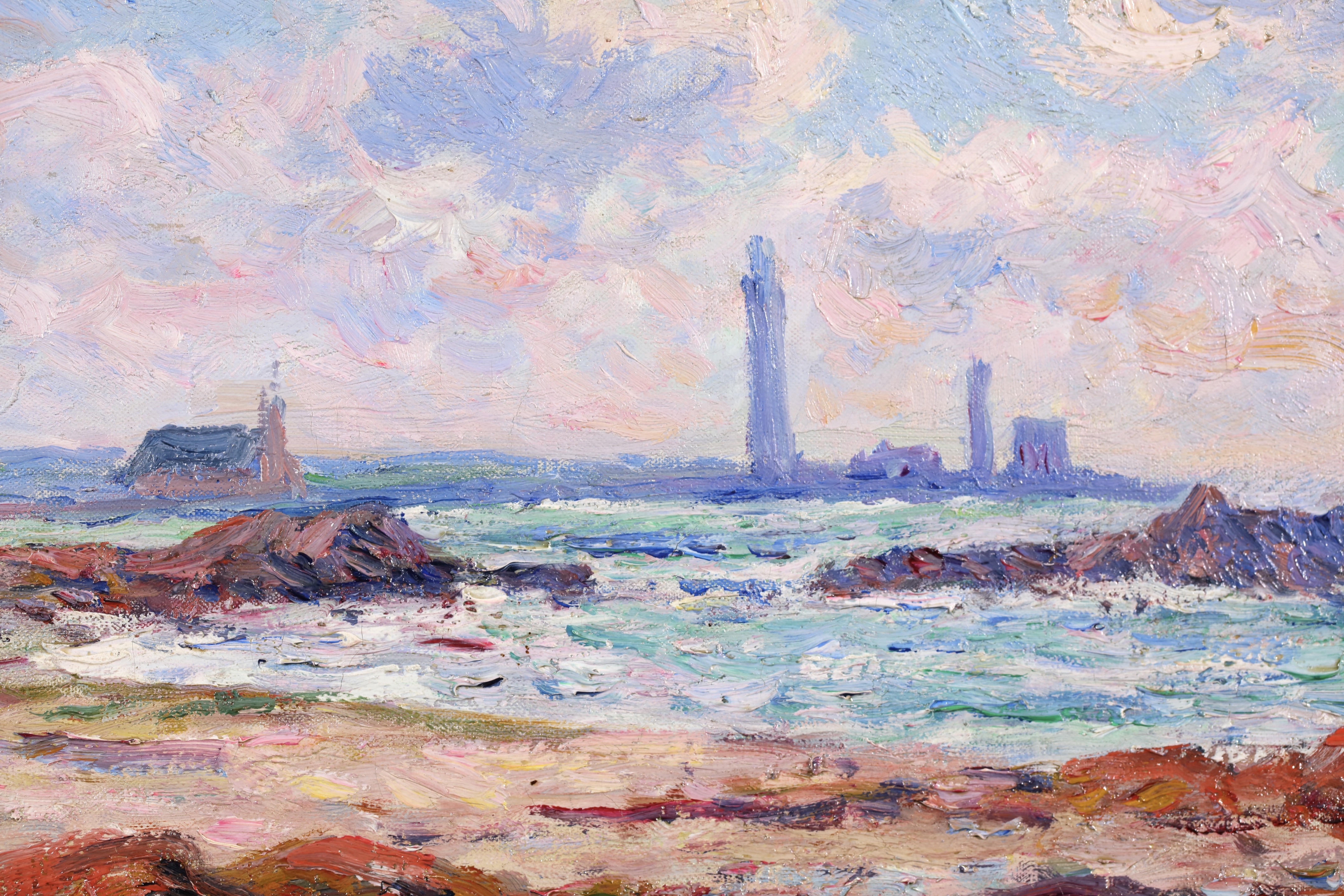 =Henry Moret lived and worked mostly in Brittany, interpreting the Breton landscape in an Impressionist style. He worked at first in Paris with Carolles and J.P. Laurens, but smitten by free art after beginning at the Salon in 1880, he abandoned academicism to live and paint as he wished, in the open air. He formed part of the group of young artists around Gauguin at Pont-Aven. Later, he travelled along the coast of Morbihan, from Ouessant to Belle-Île and from Belle-Île to Groix, observing local types, seaside people, peasants, and sardine fishermen, making numerous sketches and studies. He settled at Doëlan and concentrated primarily on maritime themes, portraying the sea in all its aspects and the human activities revolving around it.