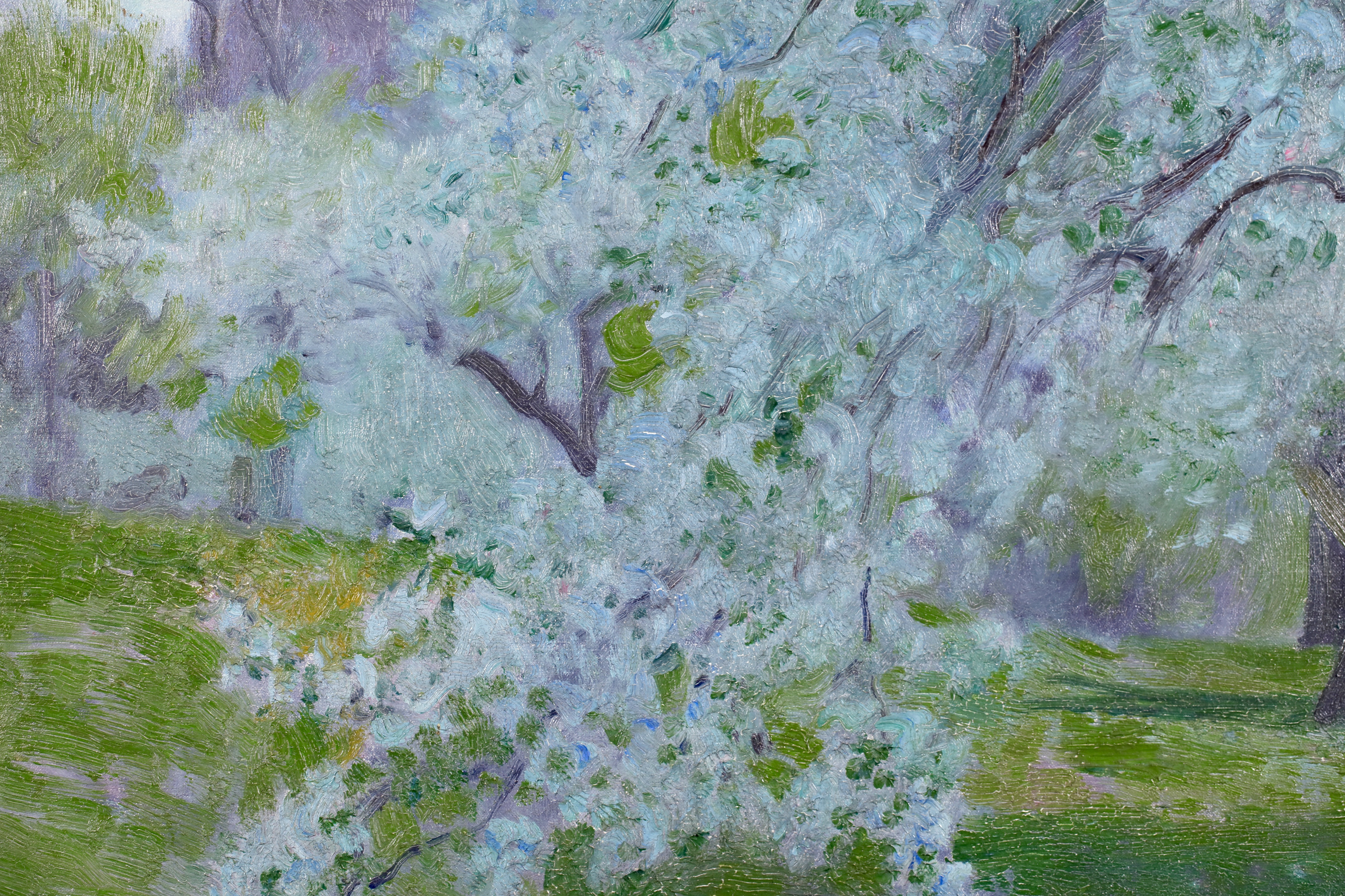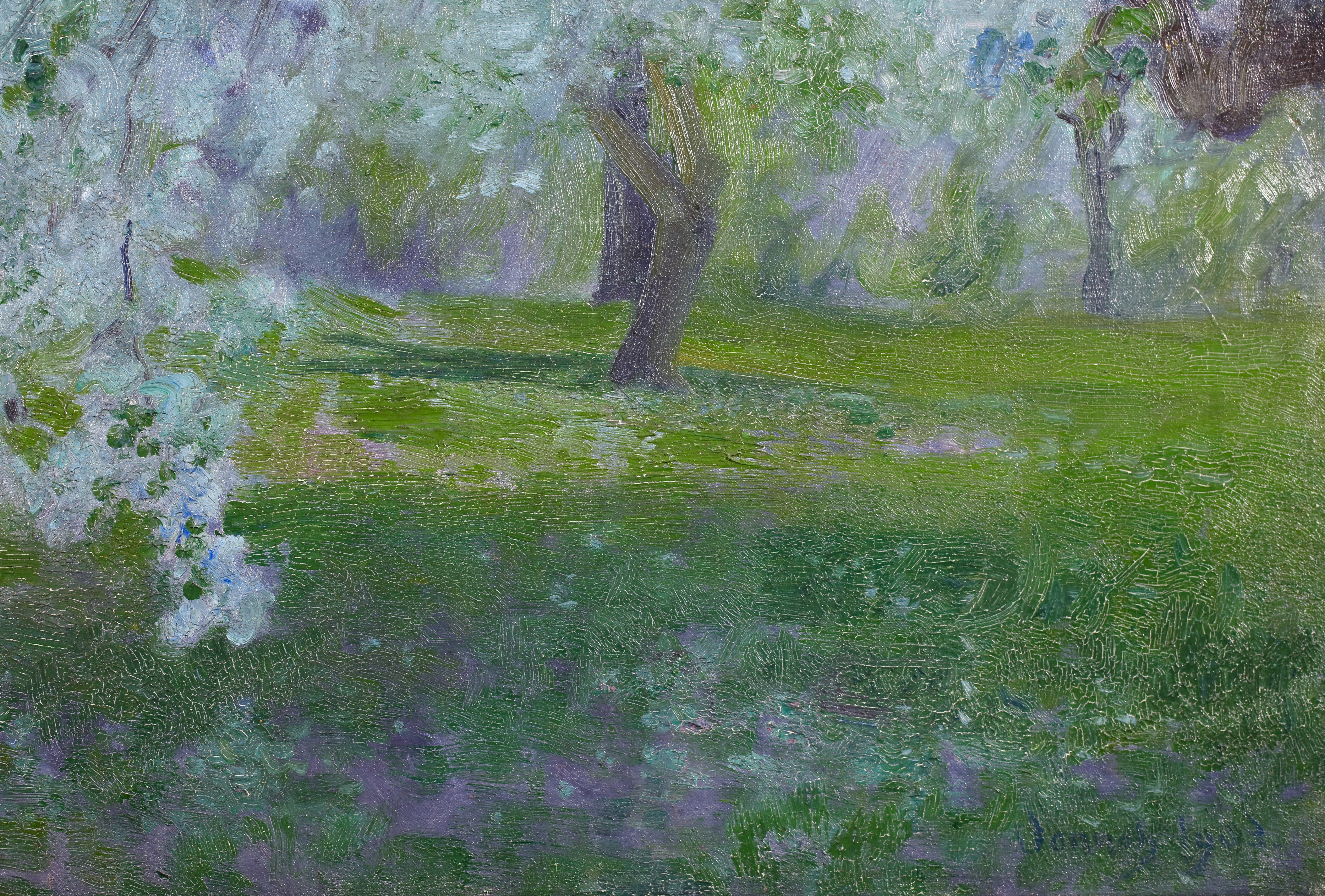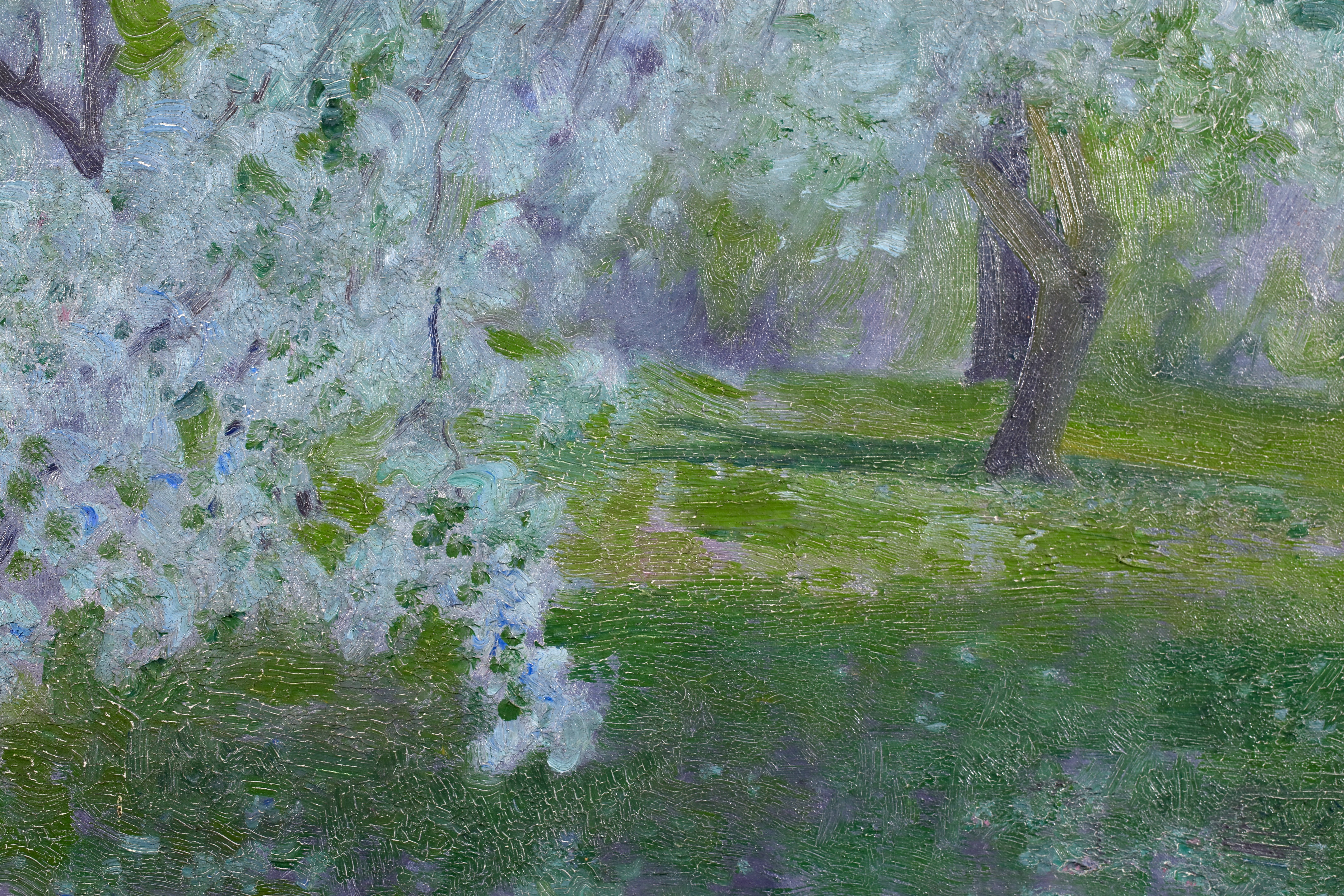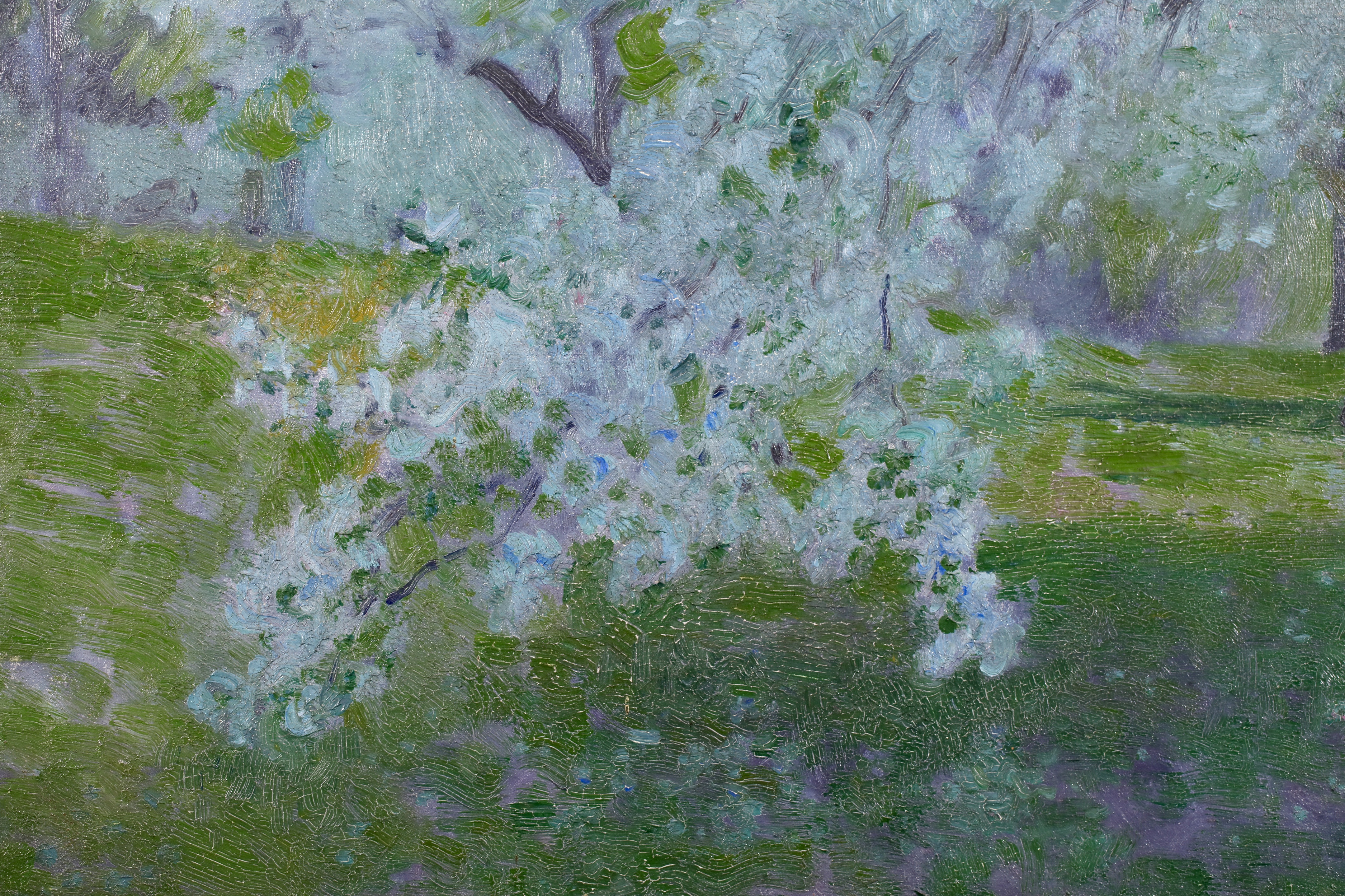 Robert William Vonnoh studied at the Massachusetts Normal Art Club in Boston and, from 1880 onward, in Paris with Gustave Boulanger and Jules Lefebvre at the Académie Julian. He returned to Boston in 1883, began teaching at the Museum of Fine Arts School in Boston in 1885, and at the Pennsylvania Academy of the Fine Arts, Philadelphia, in 1891. In 1887, he began visiting Grèz-sur-Loing (France) frequently, sometimes for prolonged periods. Vonnoh painted flower beds, figures and landscapes with a highly colourful palette. He emphasized Impressionism in his teaching, and Robert Henri and William Glackens were among his students.